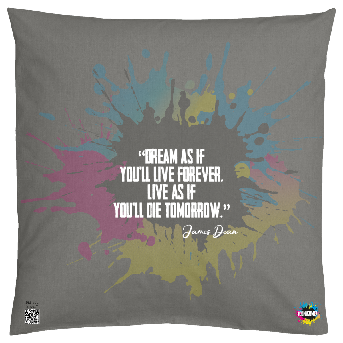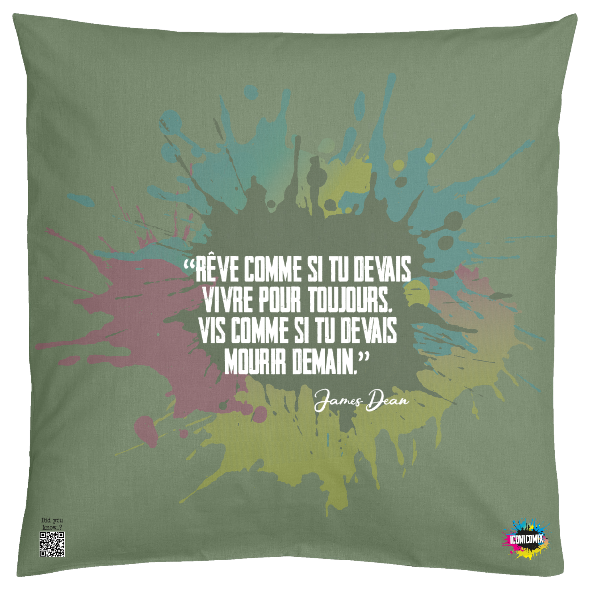 Chacun de nos visuels comporte également un code QR qui vous redirige vers le site web iconicomix.com, la page officielle de l'icône choisie. Une passerelle numérique qui vous dévoile son histoire, ses slogans et son univers.