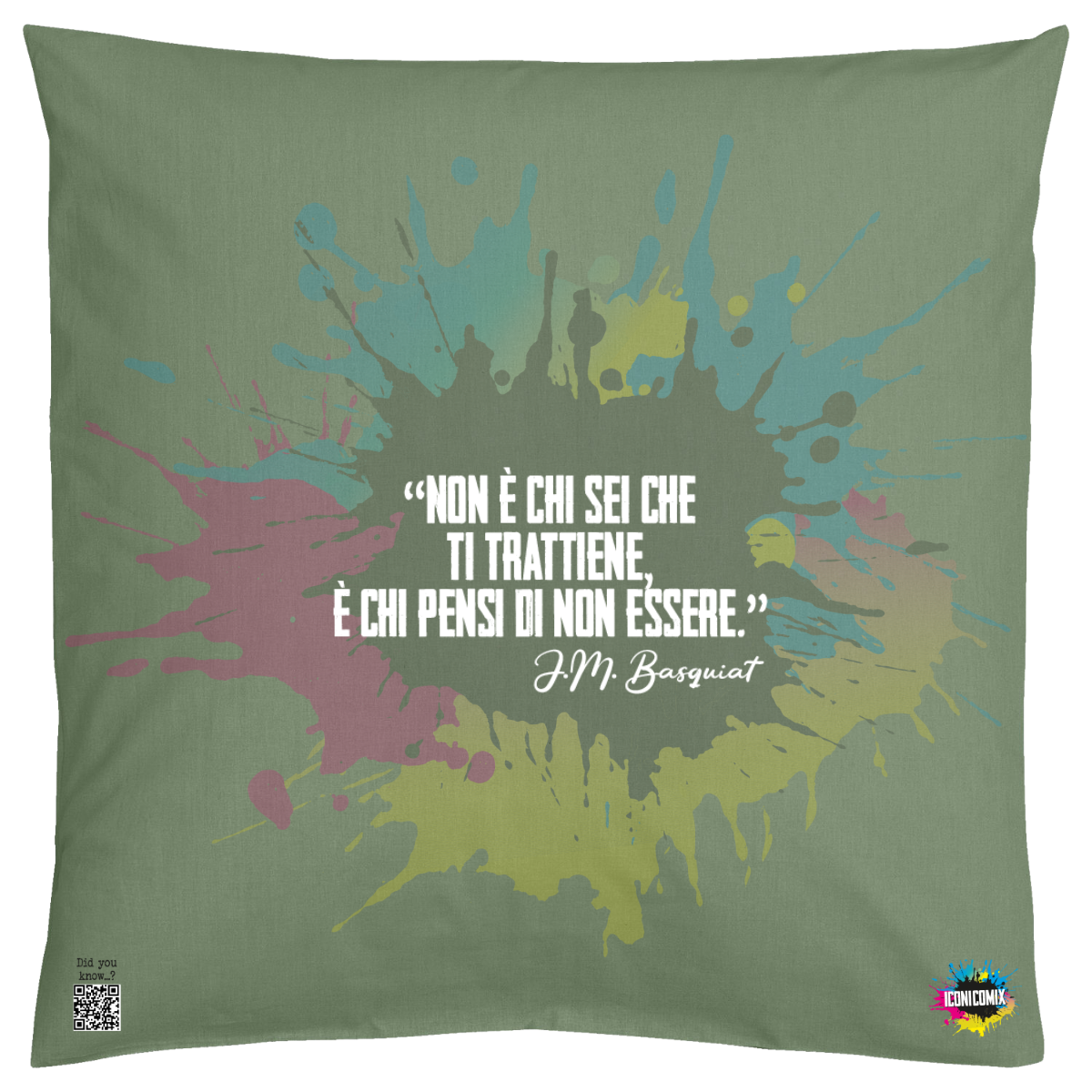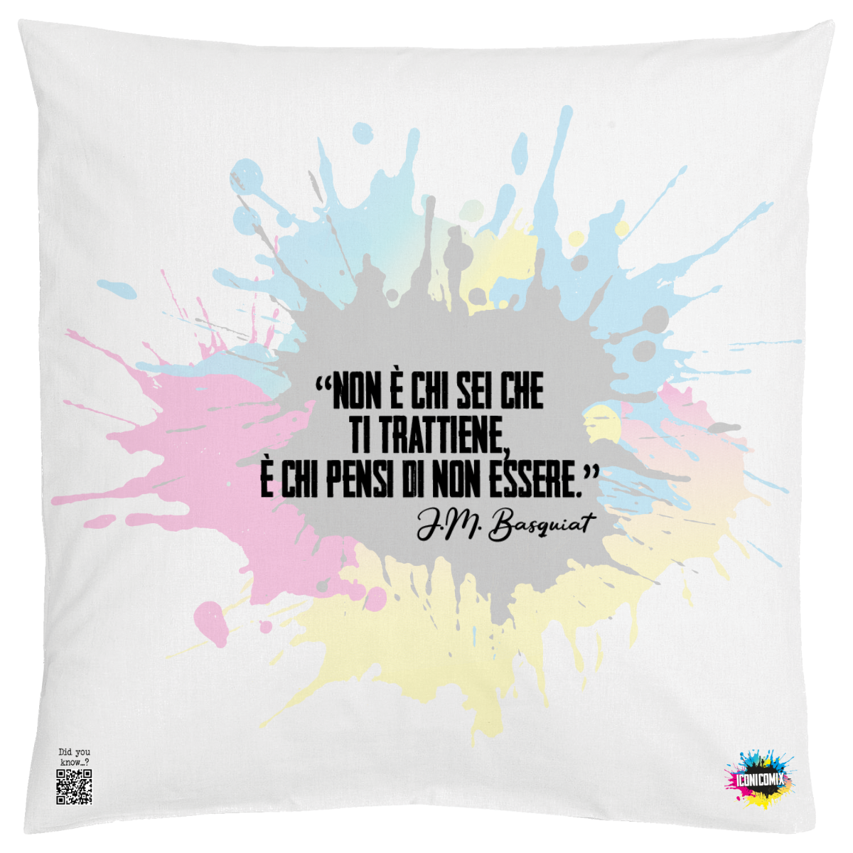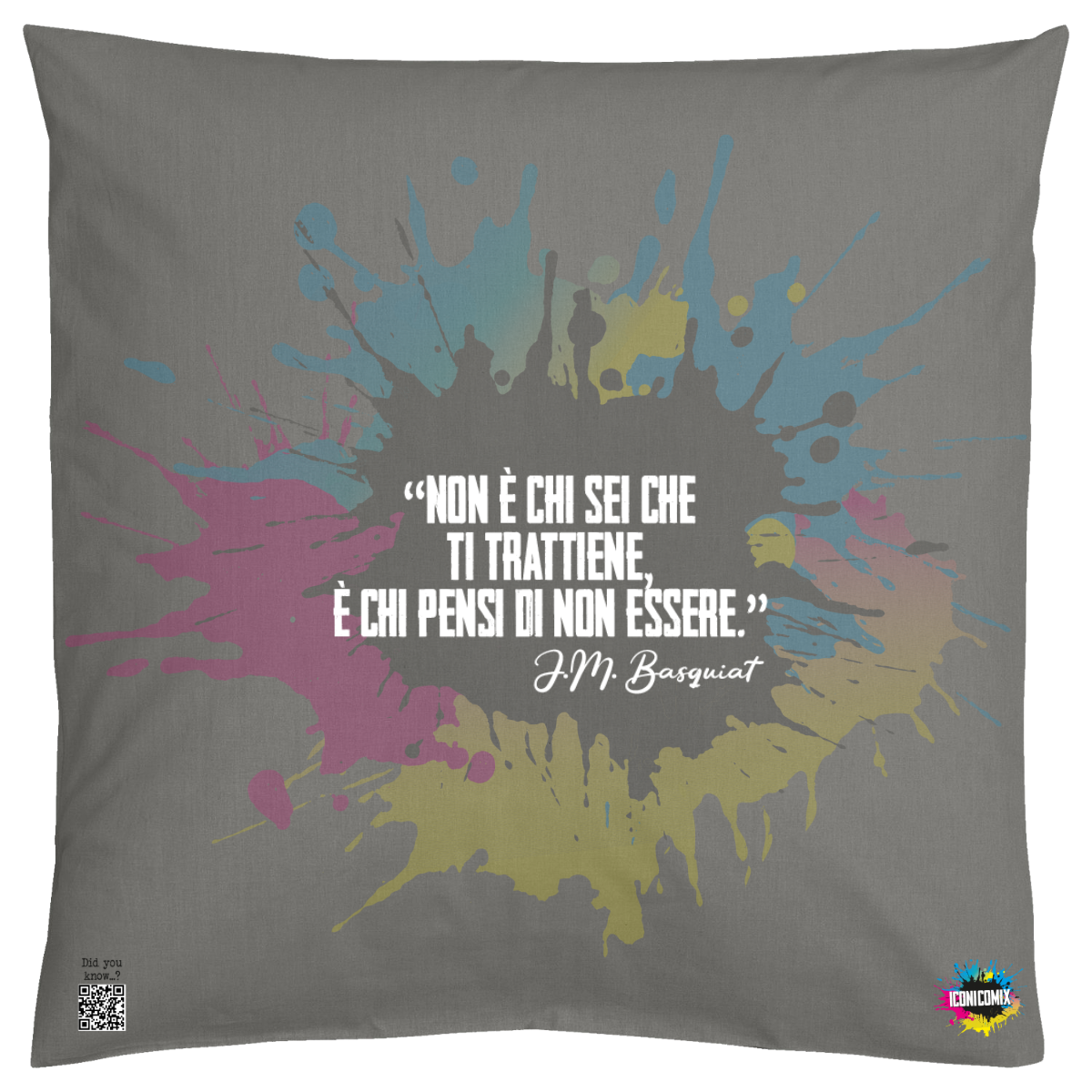In ogni nostra grafica è presente anche un QR code che reindirizza al sito iconicomix.com, alla pagina ufficiale dell’icona che hai scelto. Una porta digitale che racconta la sua storia, le sue frasi e il suo mondo.