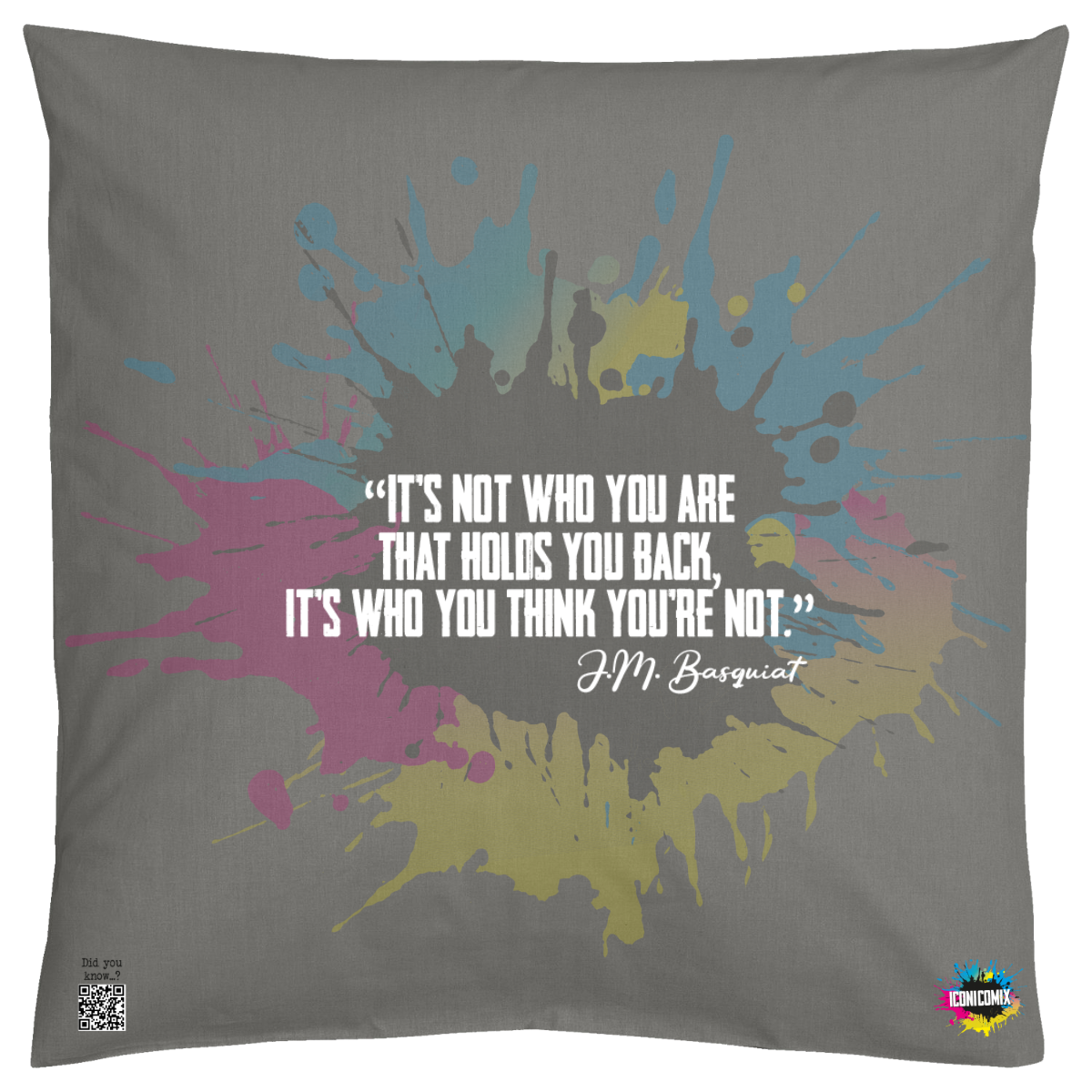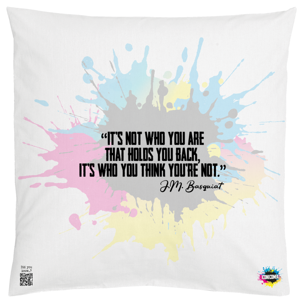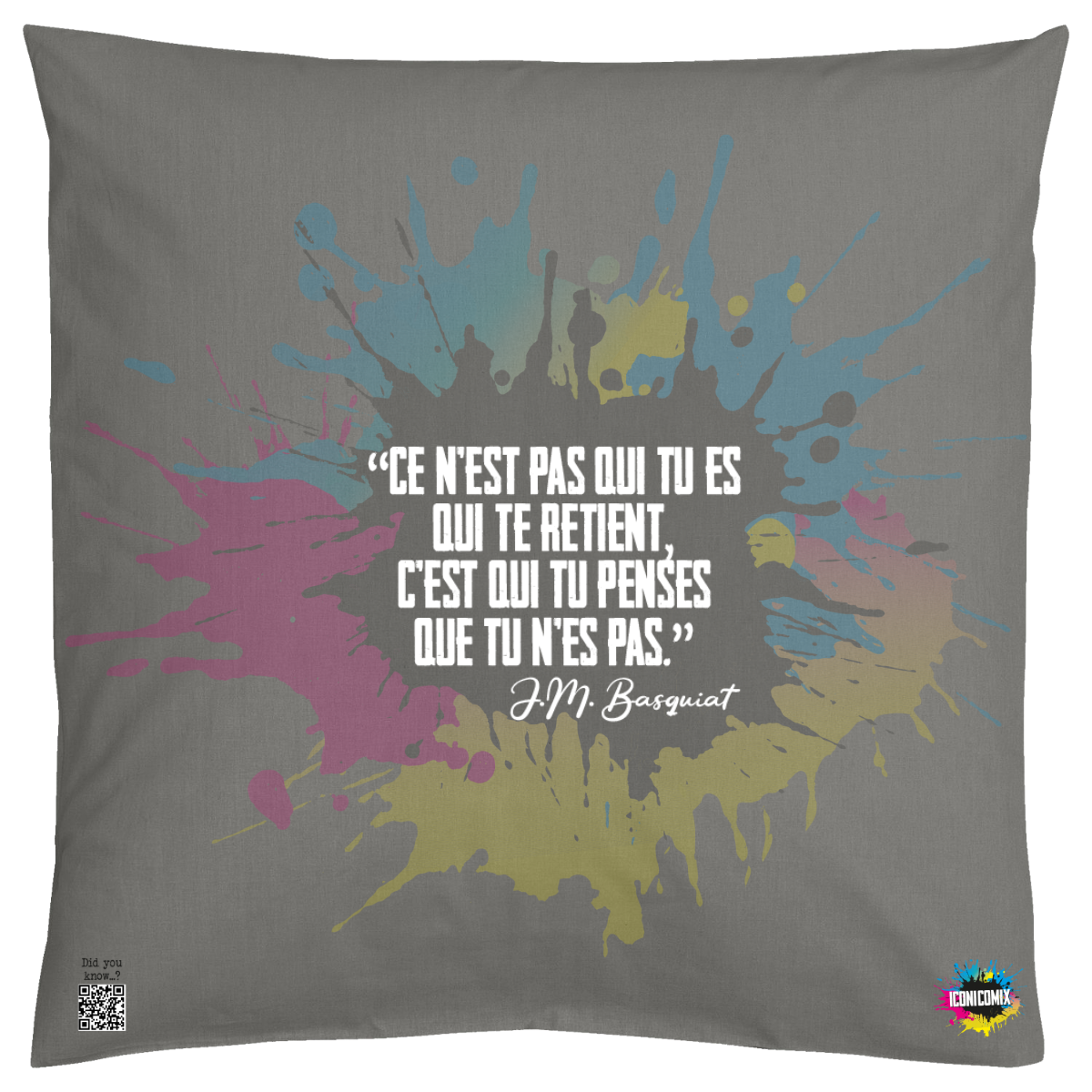 In ogni nostra grafica è presente anche un QR code che reindirizza al sito iconicomix.com, alla pagina ufficiale dell’icona che hai scelto. Una porta digitale che racconta la sua storia, le sue frasi e il suo mondo.