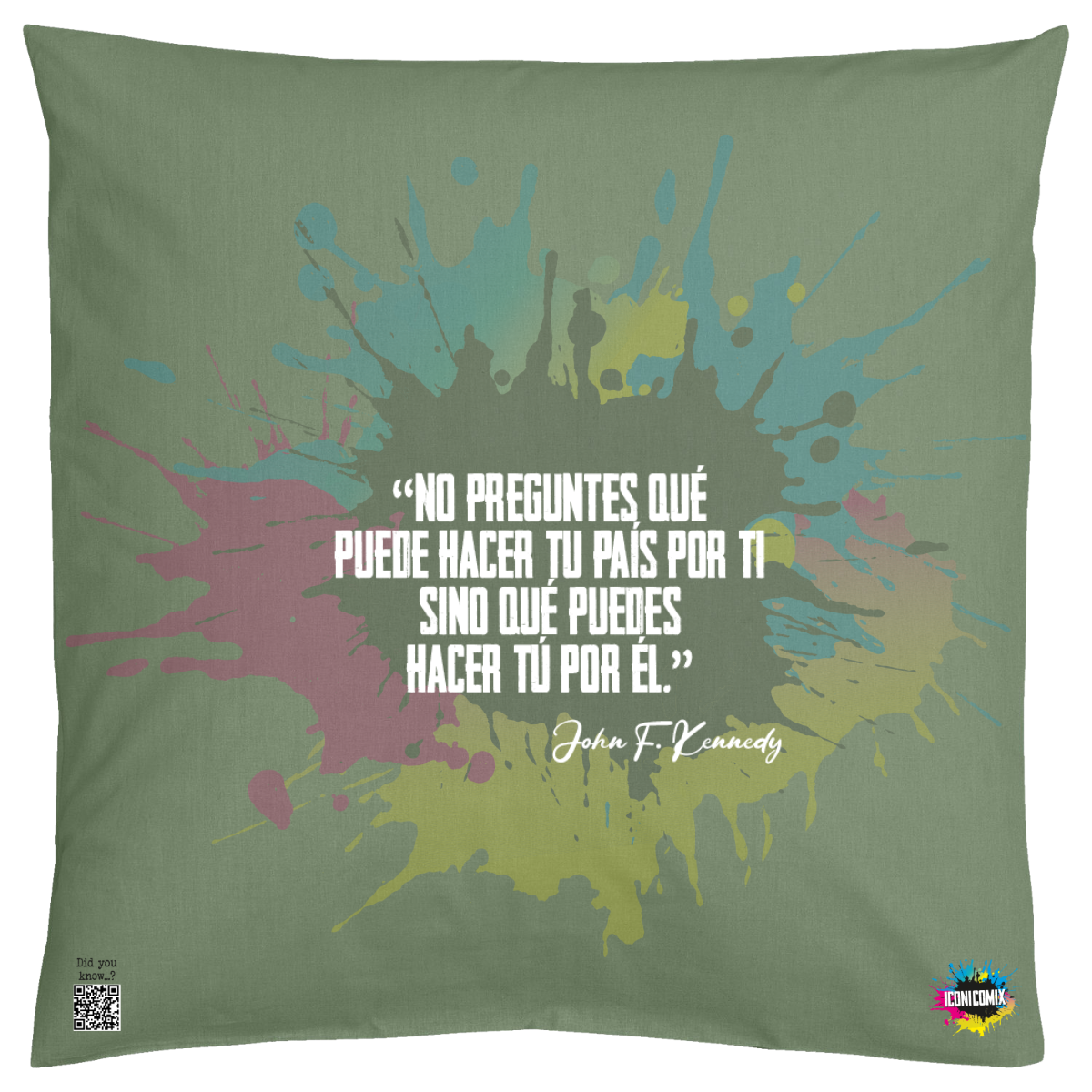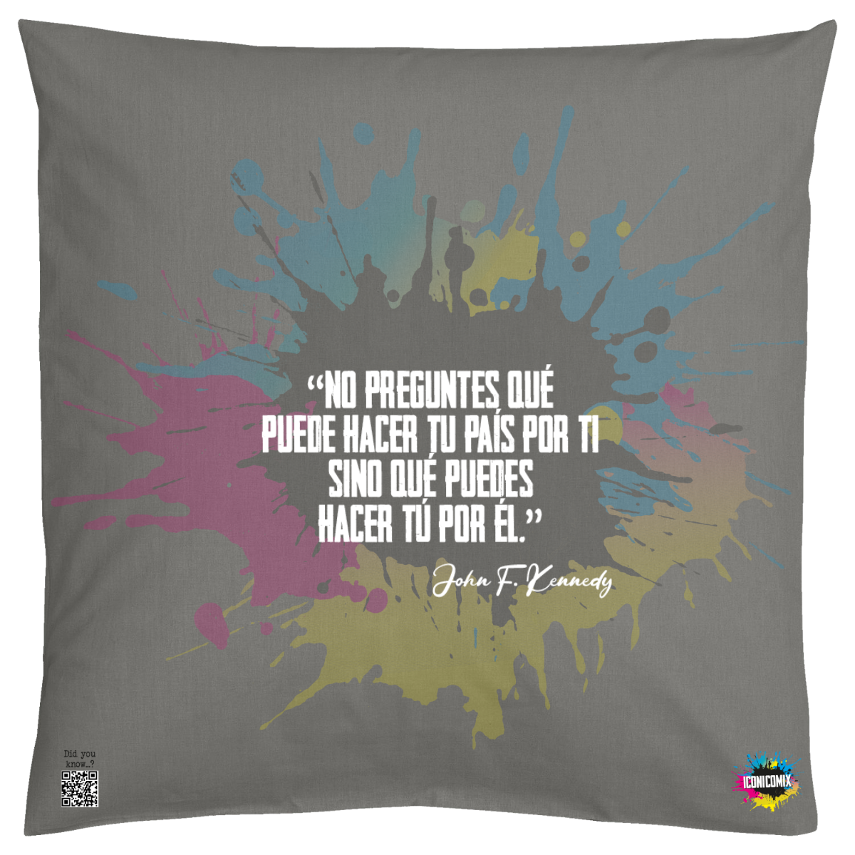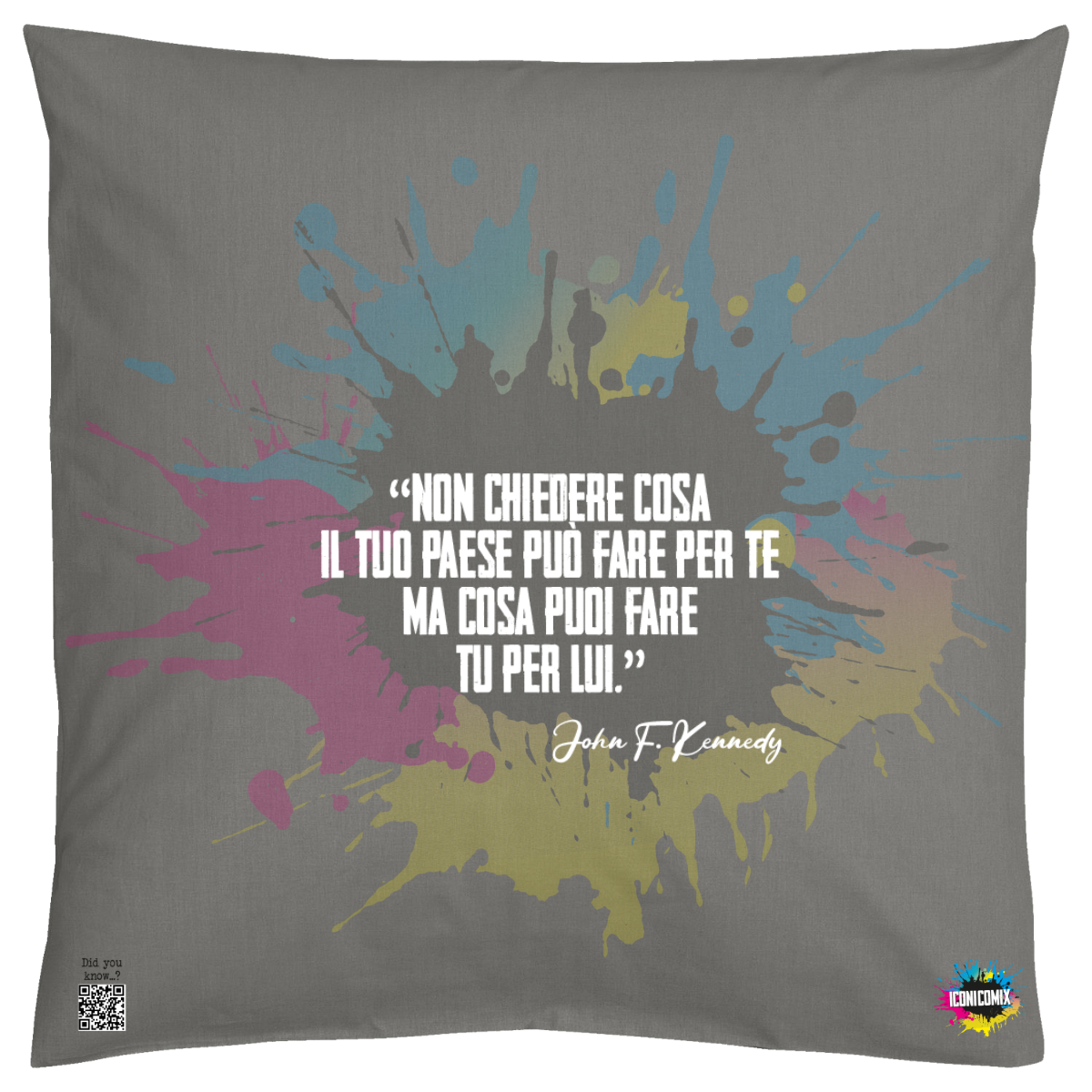 In ogni nostra grafica è presente anche un QR code che reindirizza al sito iconicomix.com, alla pagina ufficiale dell’icona che hai scelto. Una porta digitale che racconta la sua storia, le sue frasi e il suo mondo.