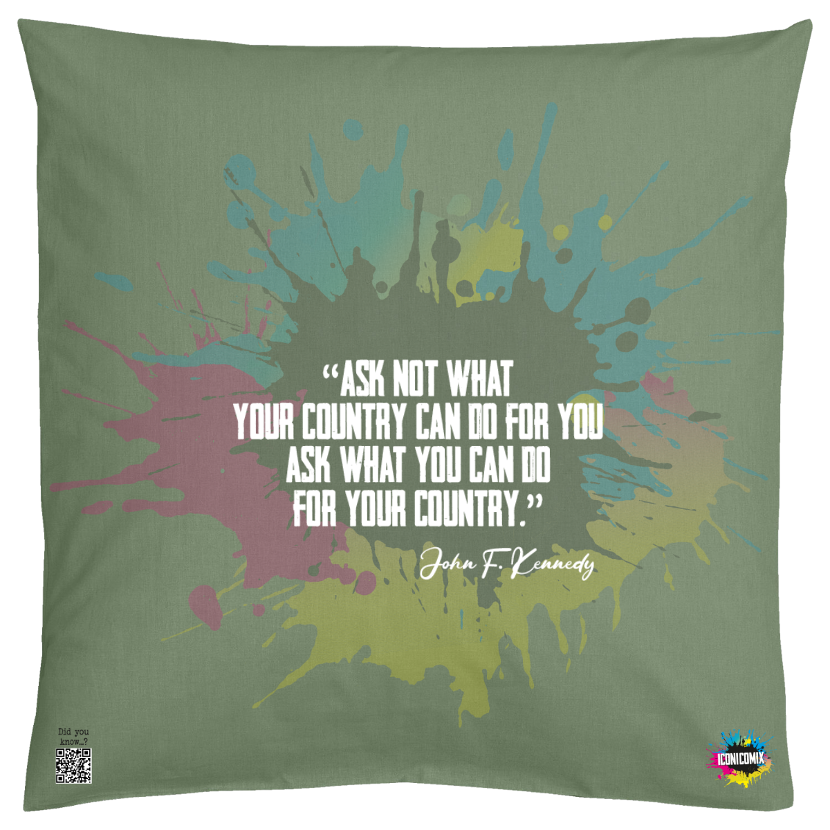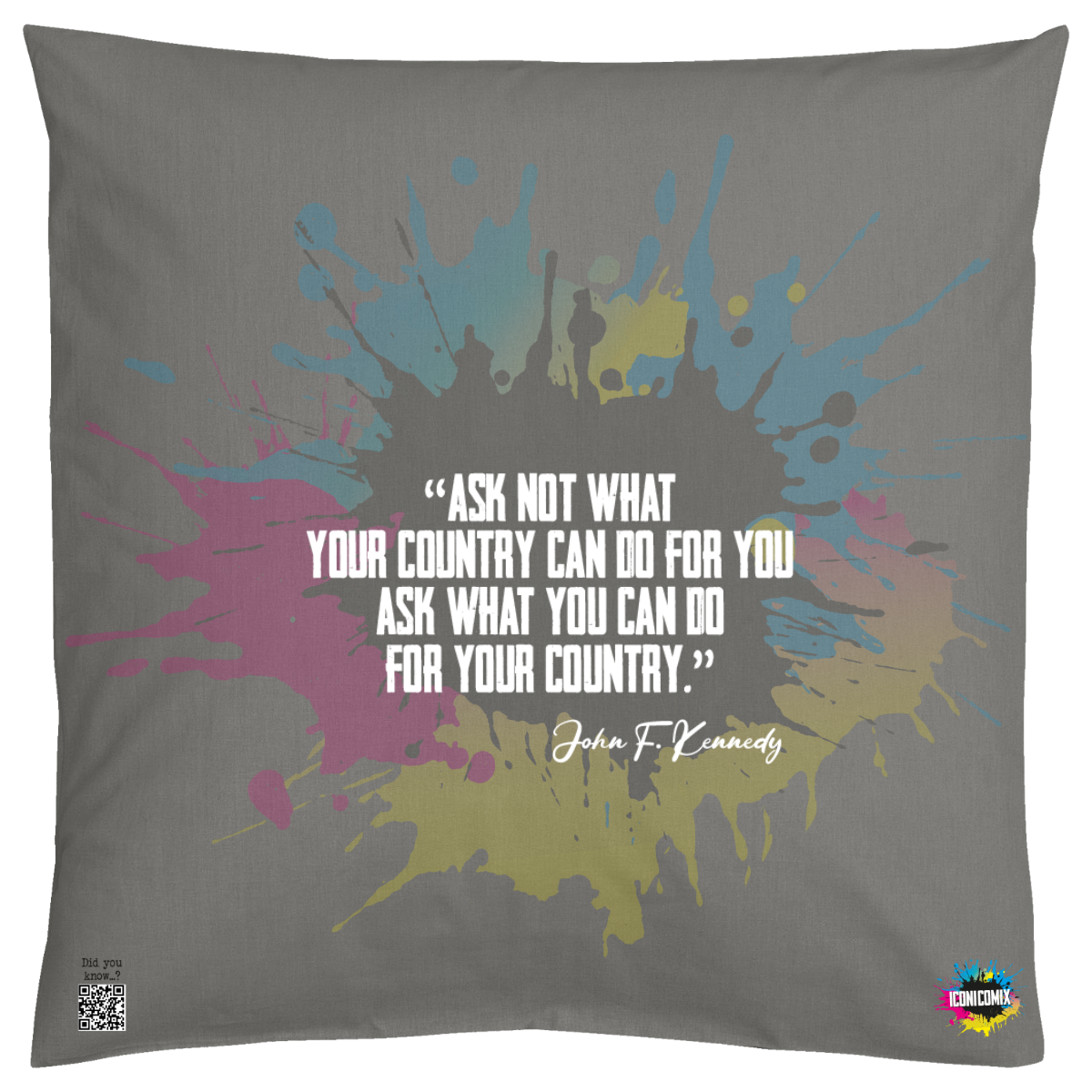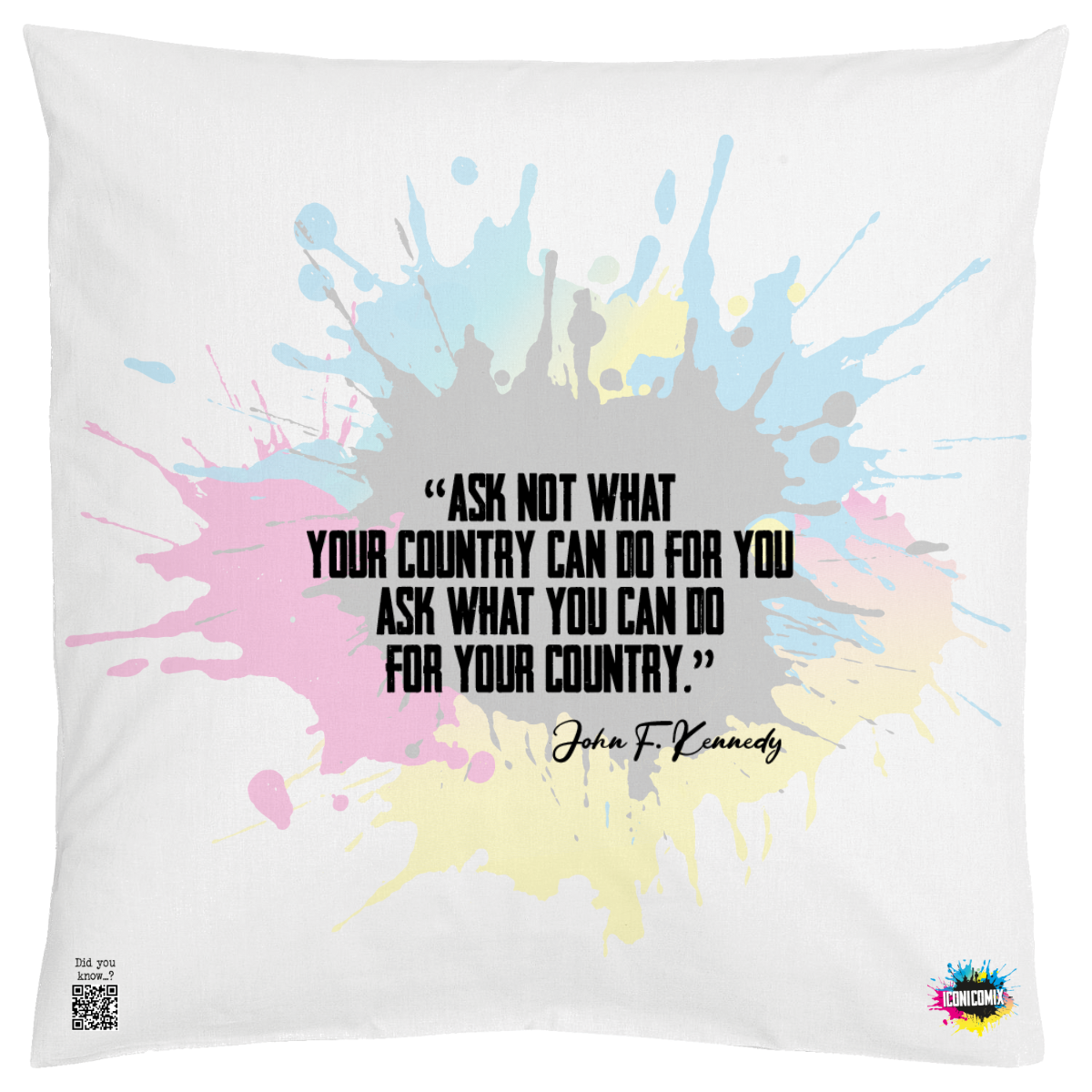 In ogni nostra grafica è presente anche un QR code che reindirizza al sito iconicomix.com, alla pagina ufficiale dell’icona che hai scelto. Una porta digitale che racconta la sua storia, le sue frasi e il suo mondo.