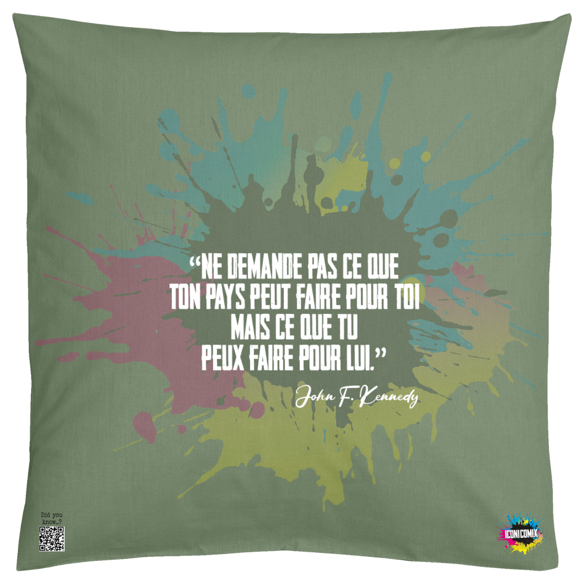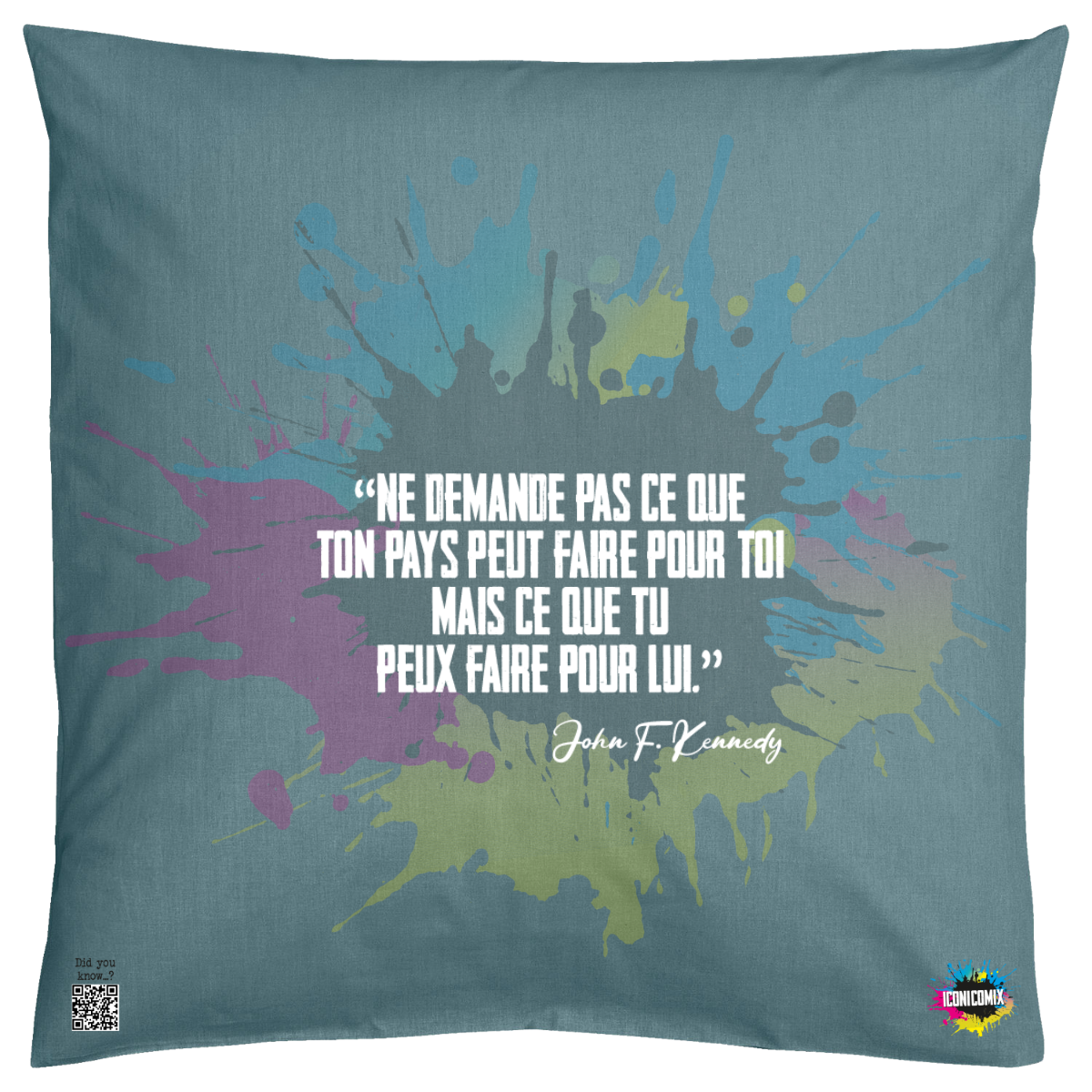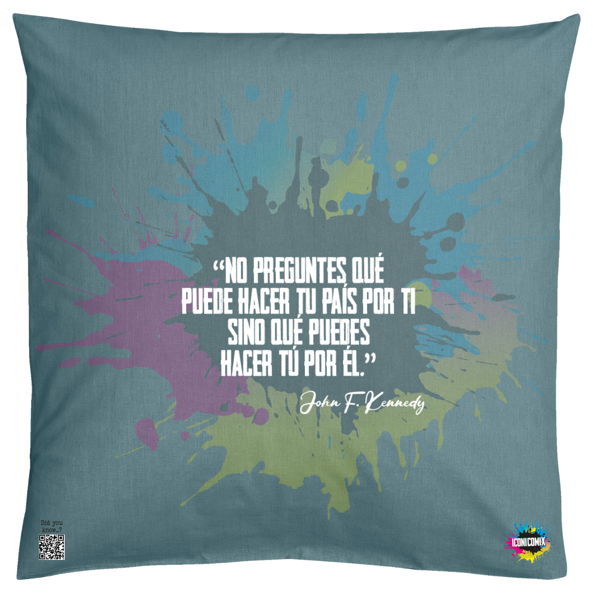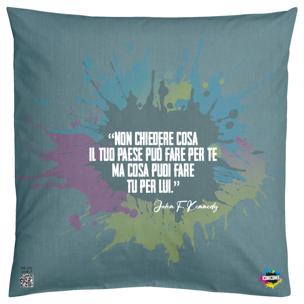 In ogni nostra grafica è presente anche un QR code che reindirizza al sito iconicomix.com, alla pagina ufficiale dell’icona che hai scelto. Una porta digitale che racconta la sua storia, le sue frasi e il suo mondo.