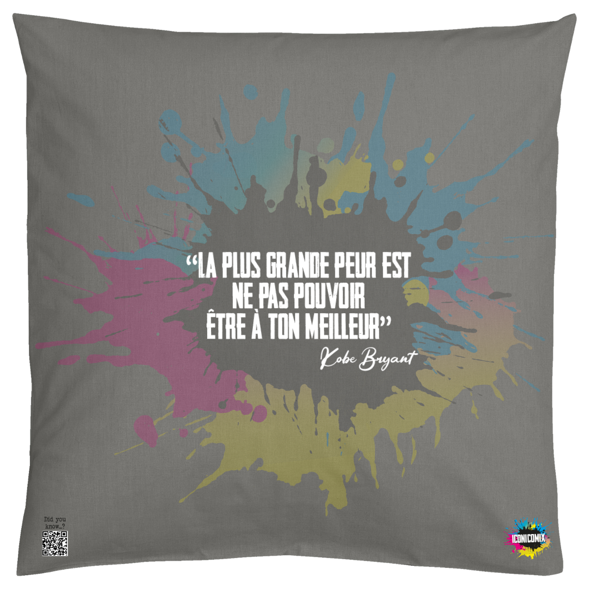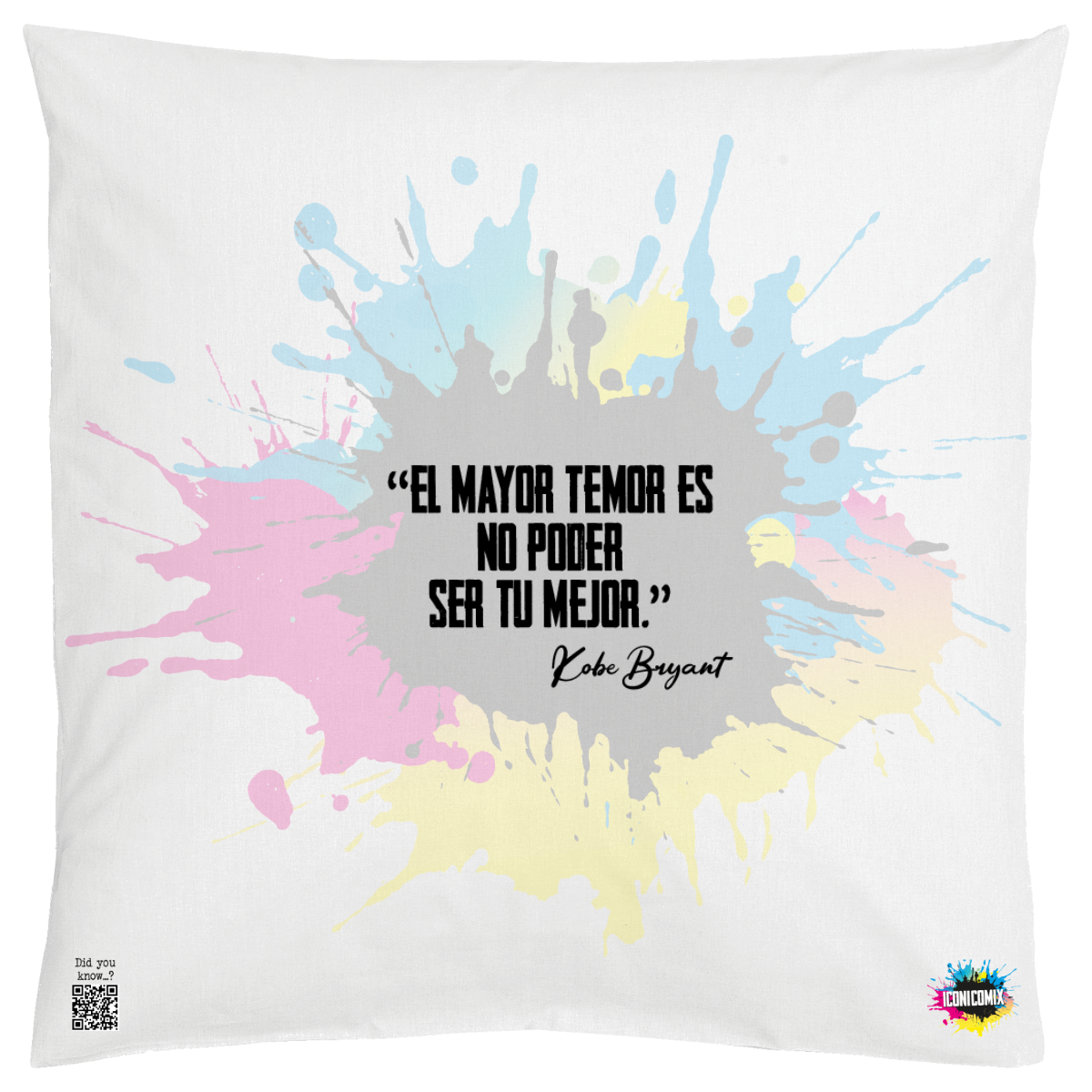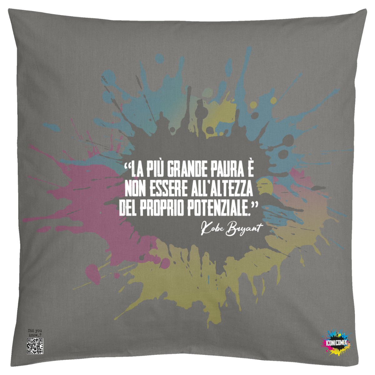 In ogni nostra grafica è presente anche un QR code che reindirizza al sito iconicomix.com, alla pagina ufficiale dell’icona che hai scelto. Una porta digitale che racconta la sua storia, le sue frasi e il suo mondo.