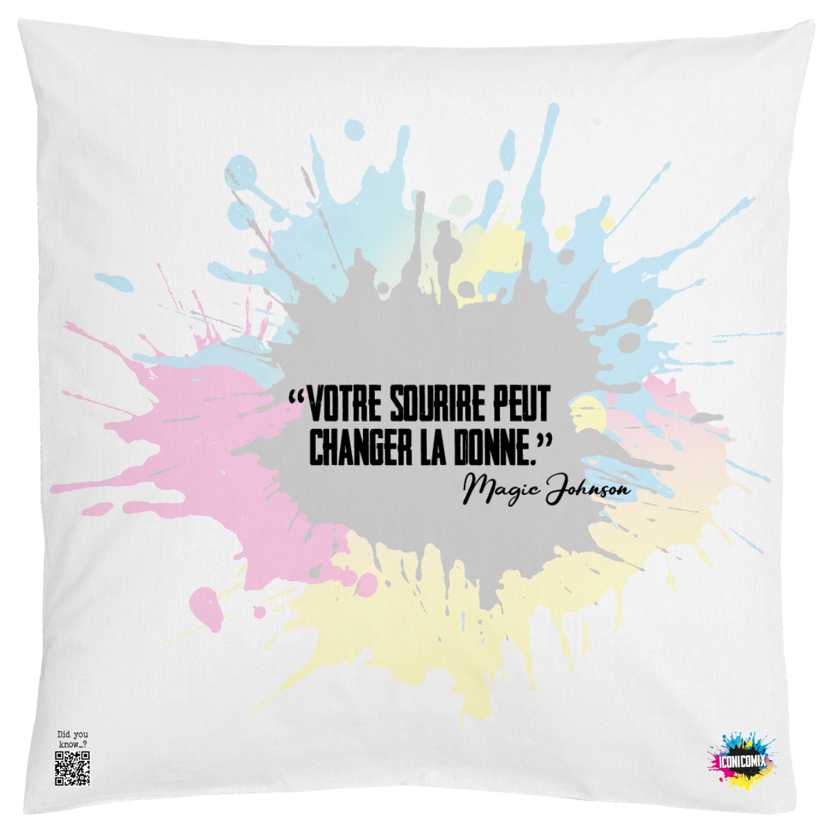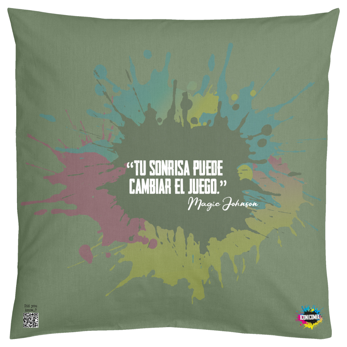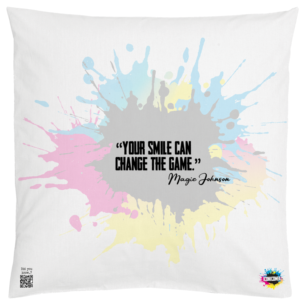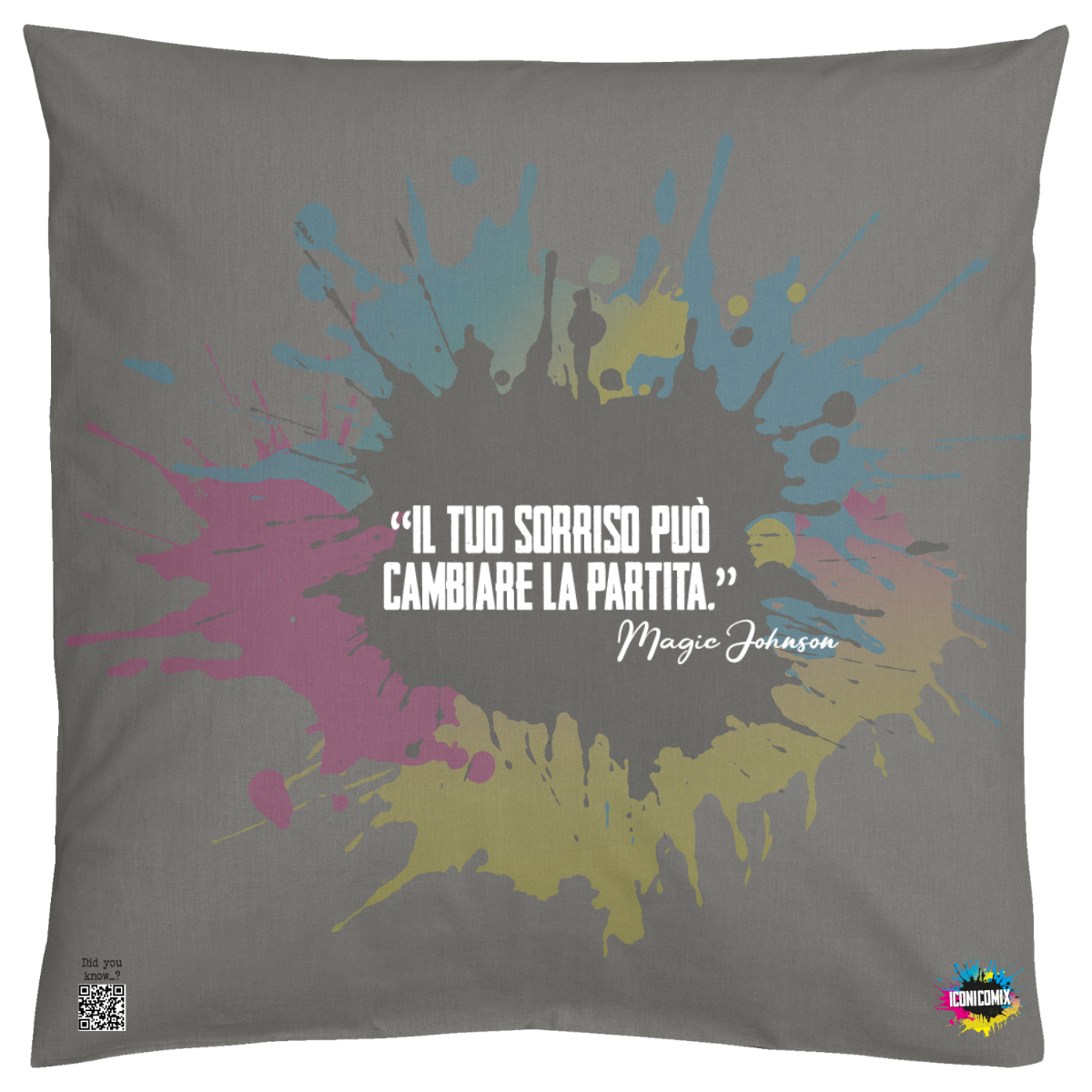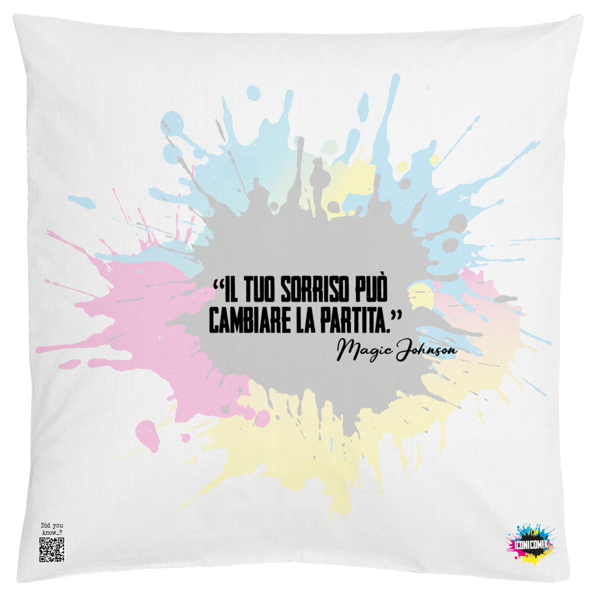 In ogni nostra grafica è presente anche un QR code che reindirizza al sito iconicomix.com, alla pagina ufficiale dell’icona che hai scelto. Una porta digitale che racconta la sua storia, le sue frasi e il suo mondo.