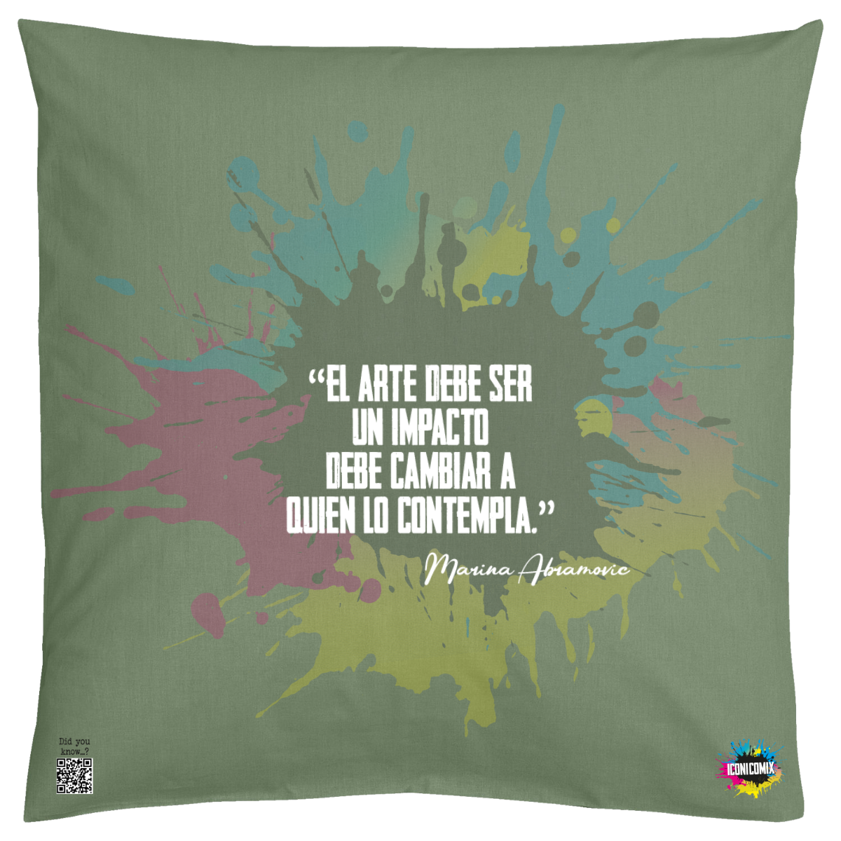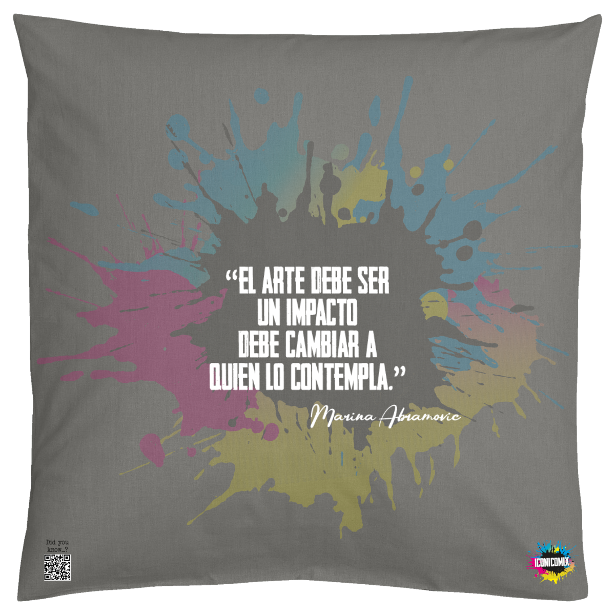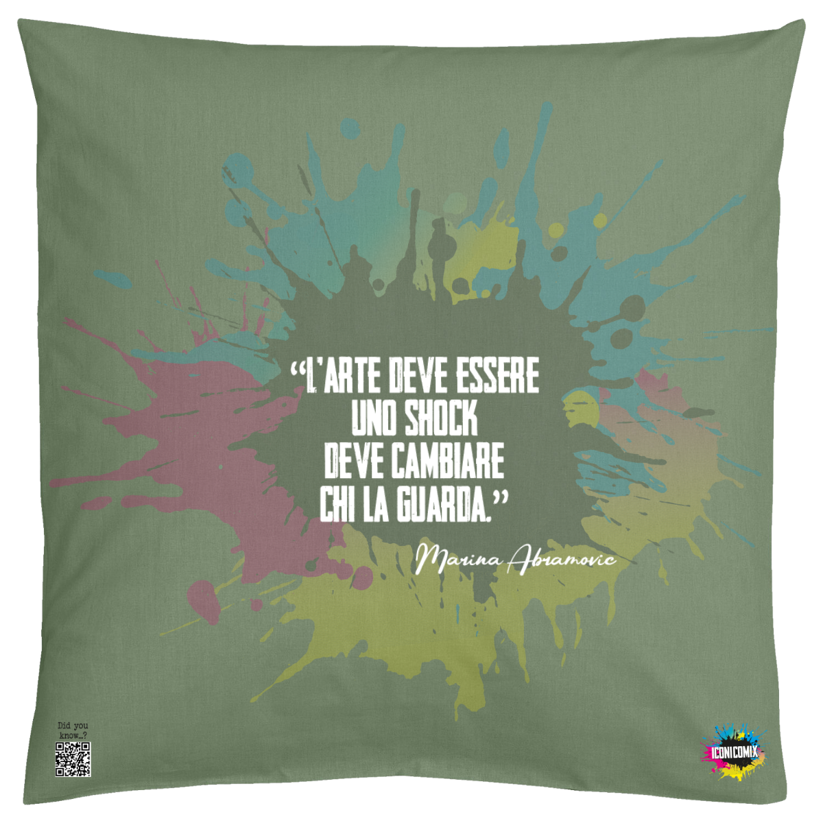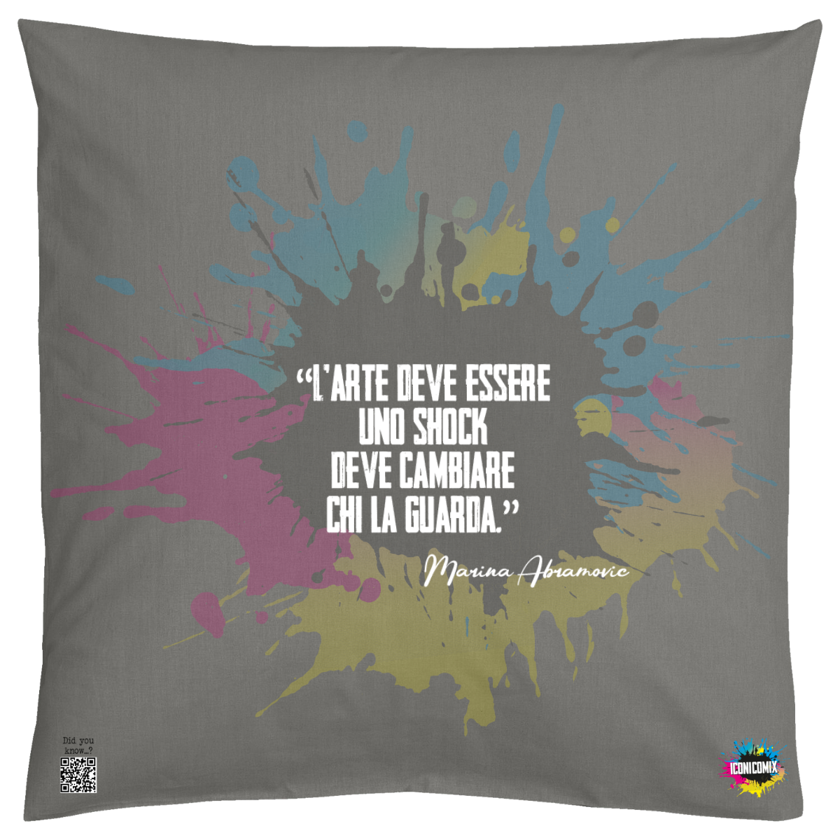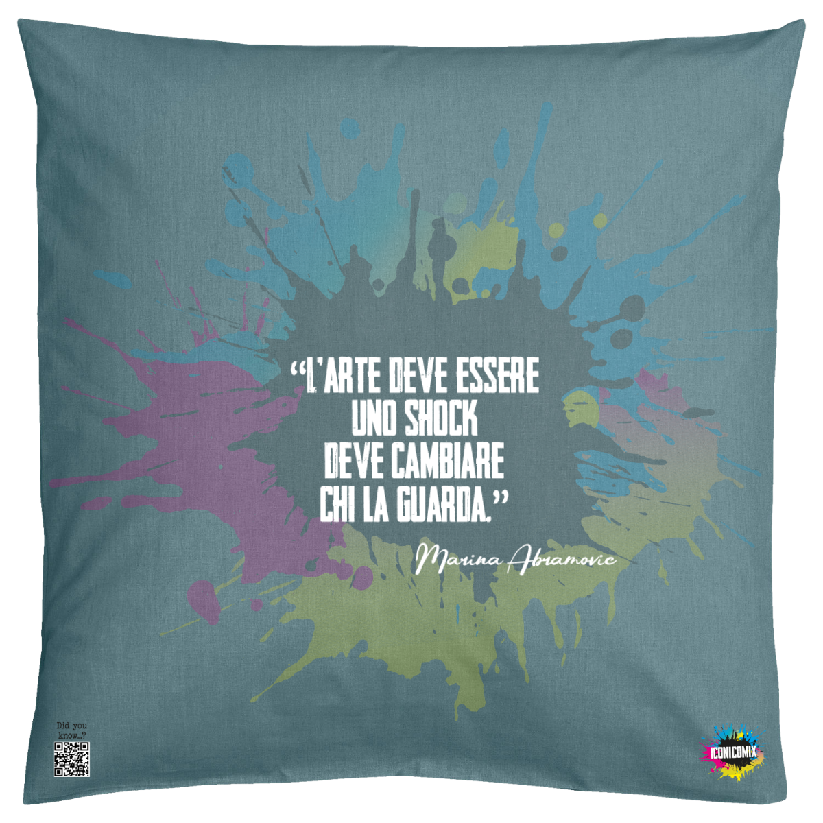 In ogni nostra grafica è presente anche un QR code che reindirizza al sito iconicomix.com, alla pagina ufficiale dell’icona che hai scelto. Una porta digitale che racconta la sua storia, le sue frasi e il suo mondo.