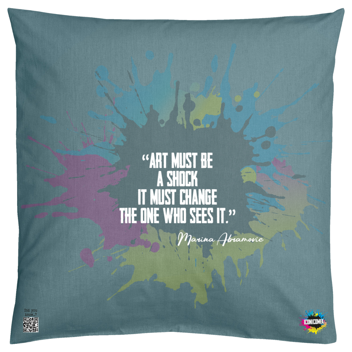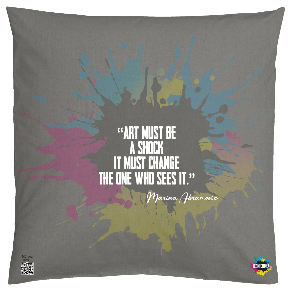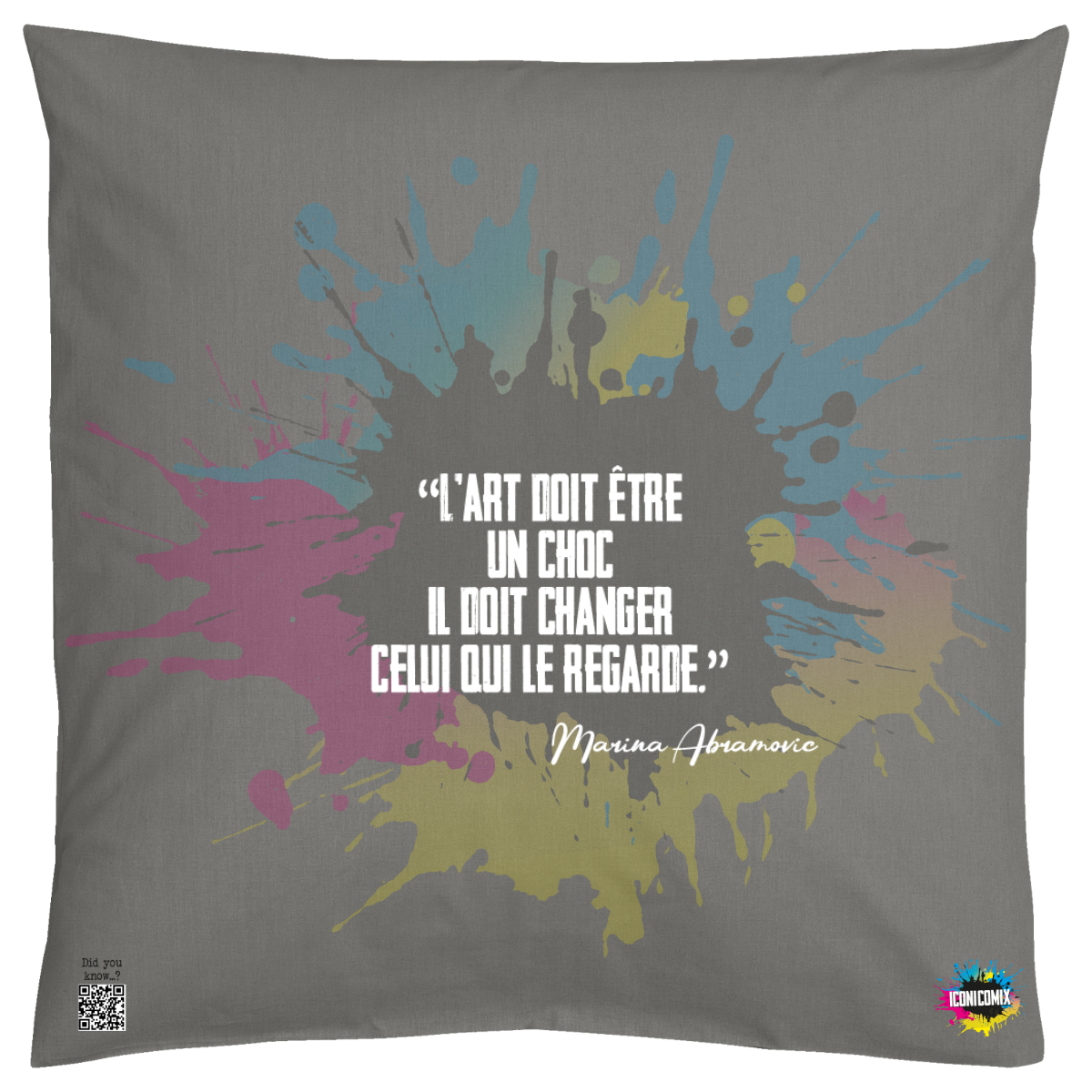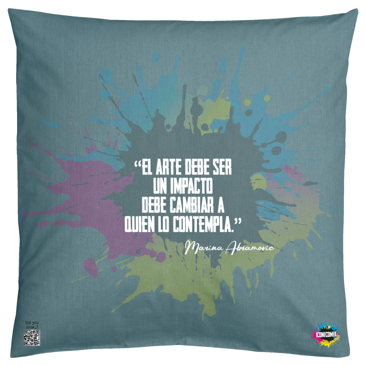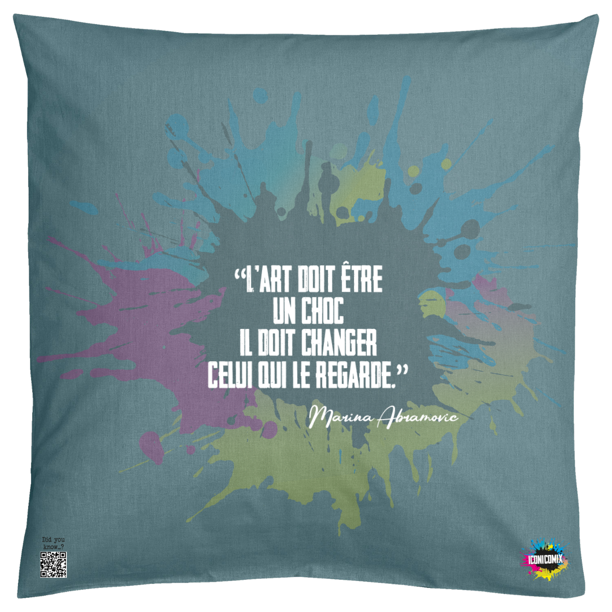 In ogni nostra grafica è presente anche un QR code che reindirizza al sito iconicomix.com, alla pagina ufficiale dell’icona che hai scelto. Una porta digitale che racconta la sua storia, le sue frasi e il suo mondo.