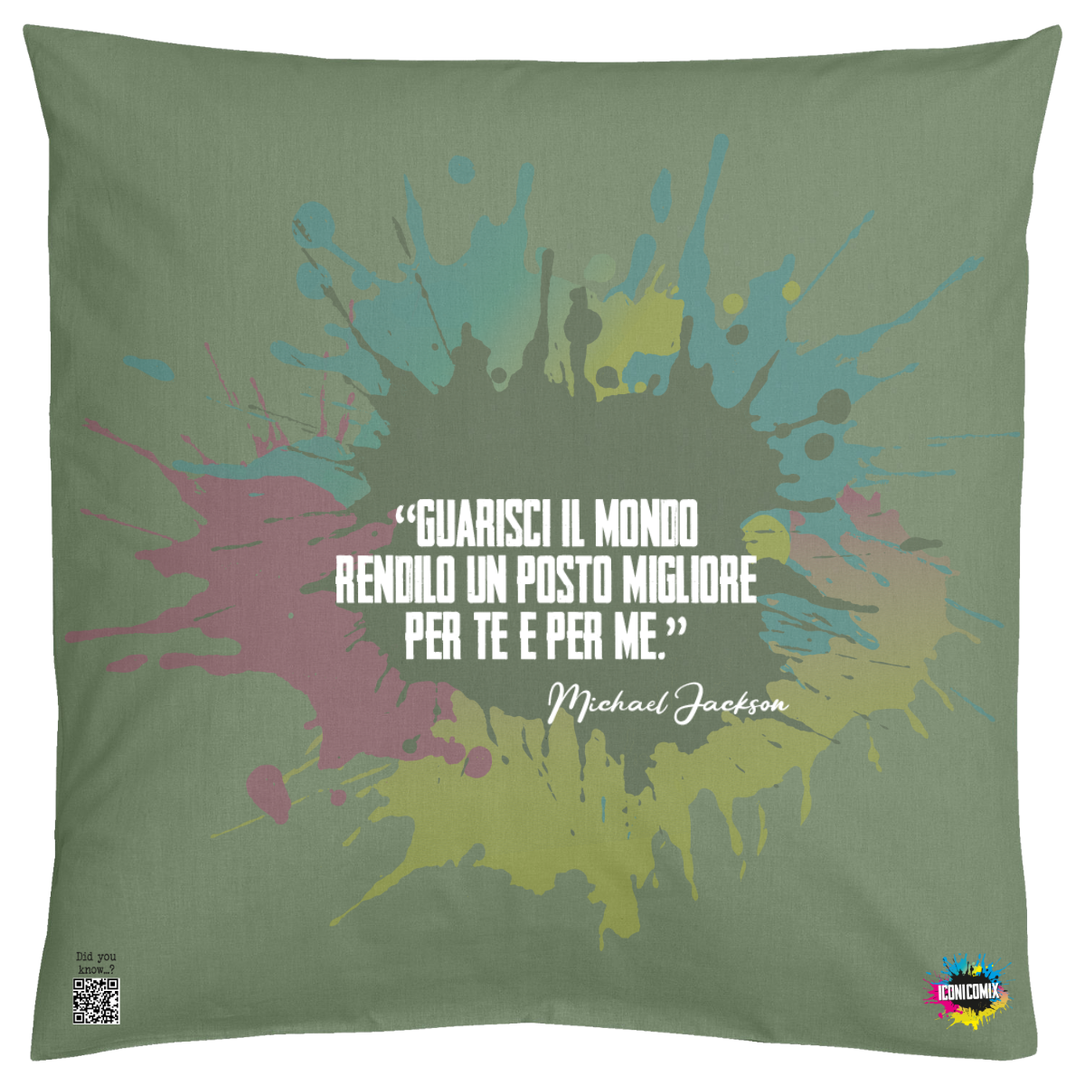 In ogni nostra grafica è presente anche un QR code che reindirizza al sito iconicomix.com, alla pagina ufficiale dell’icona che hai scelto. Una porta digitale che racconta la sua storia, le sue frasi e il suo mondo.
