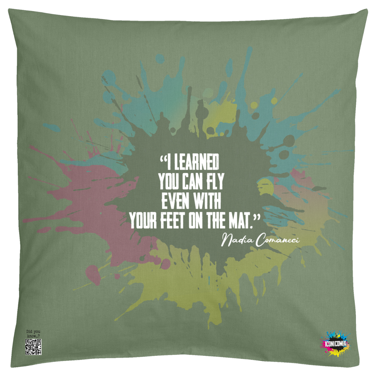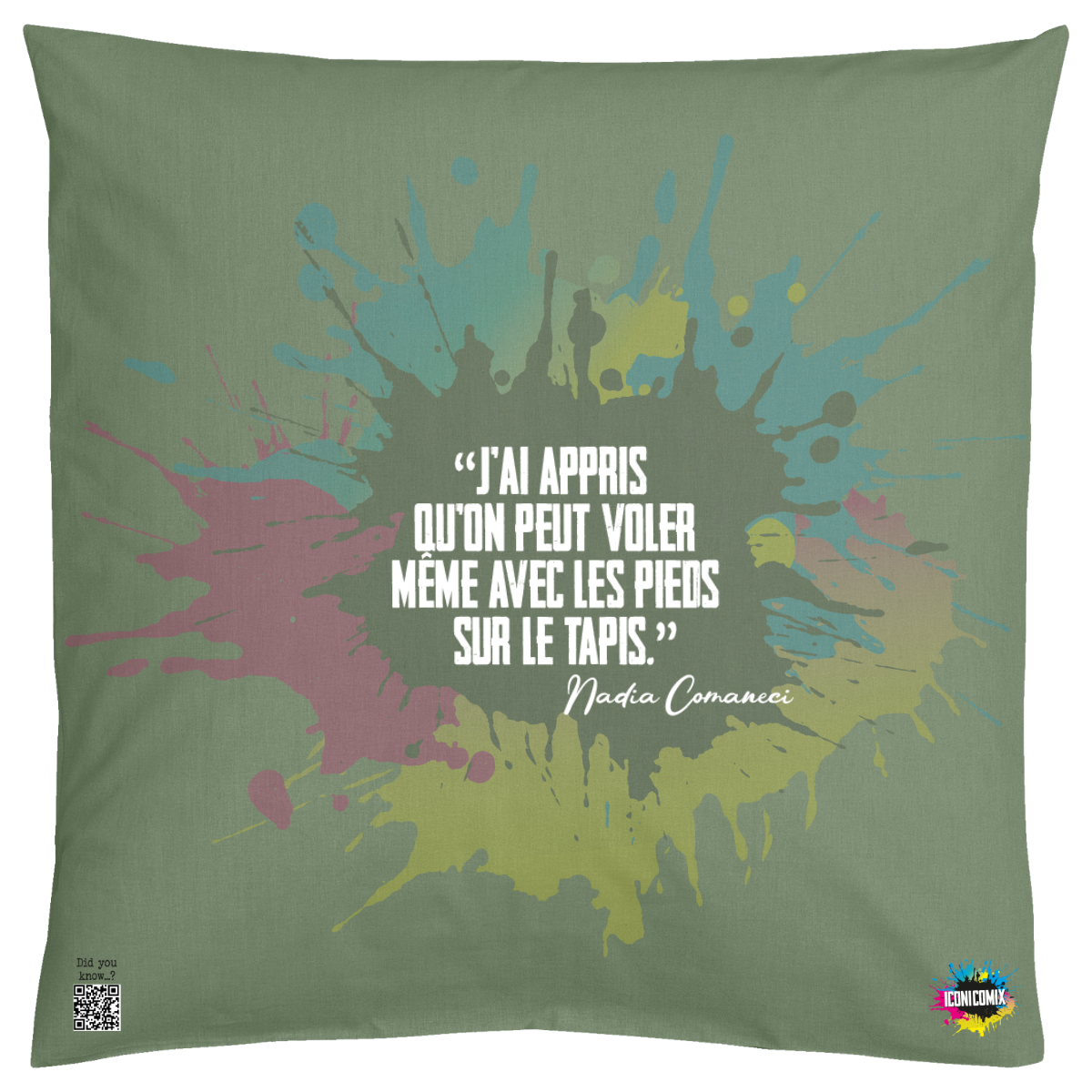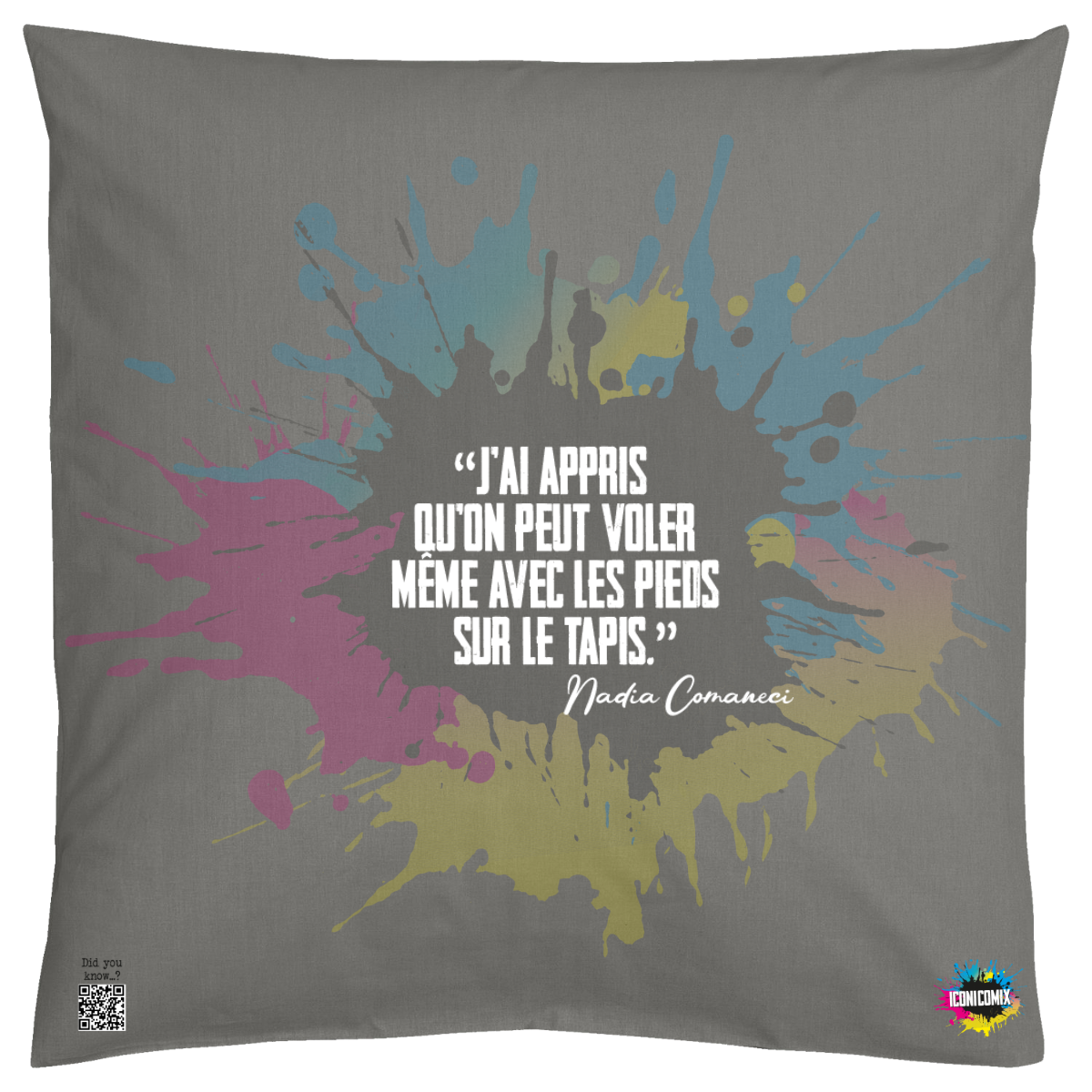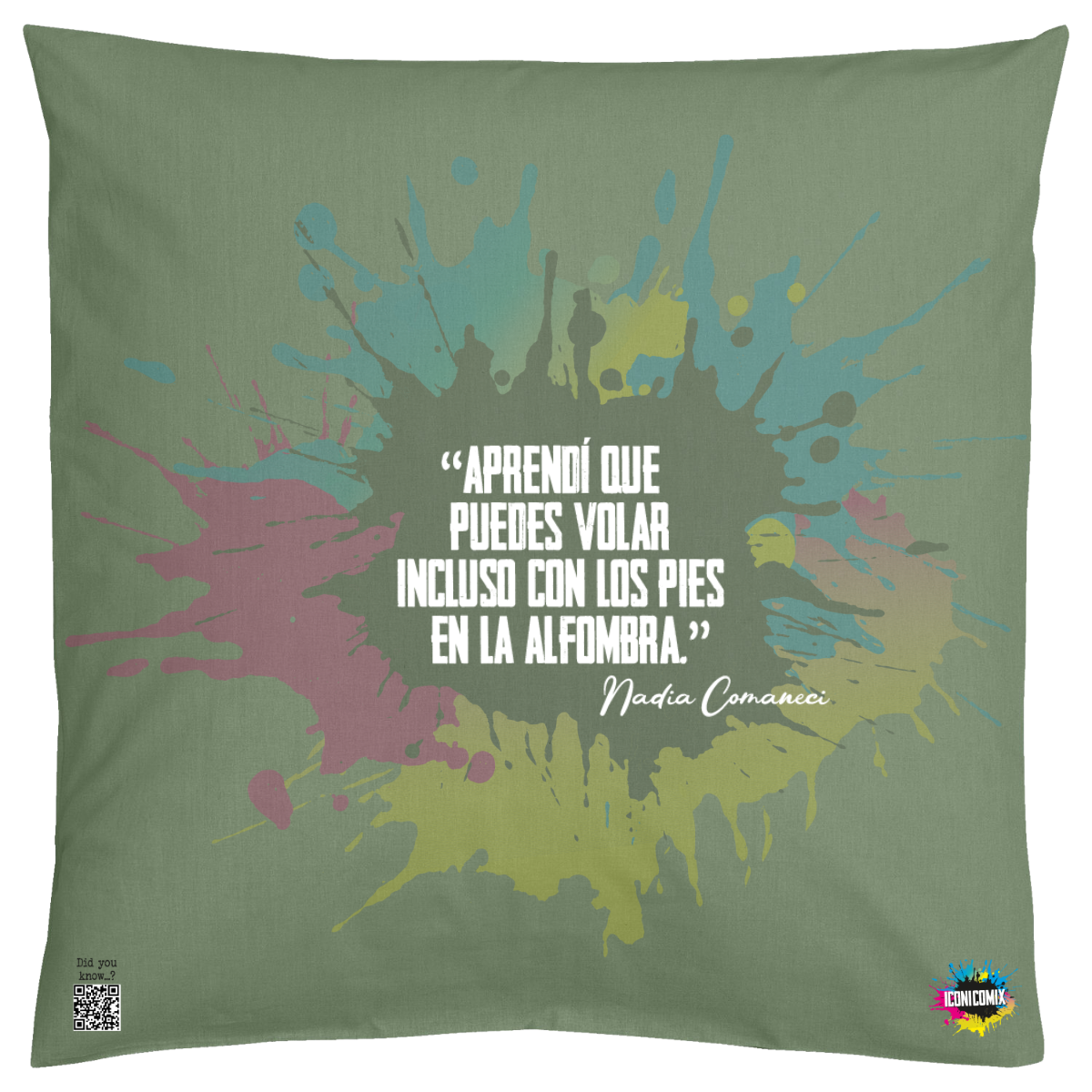 In ogni nostra grafica è presente anche un QR code che reindirizza al sito iconicomix.com, alla pagina ufficiale dell’icona che hai scelto. Una porta digitale che racconta la sua storia, le sue frasi e il suo mondo.