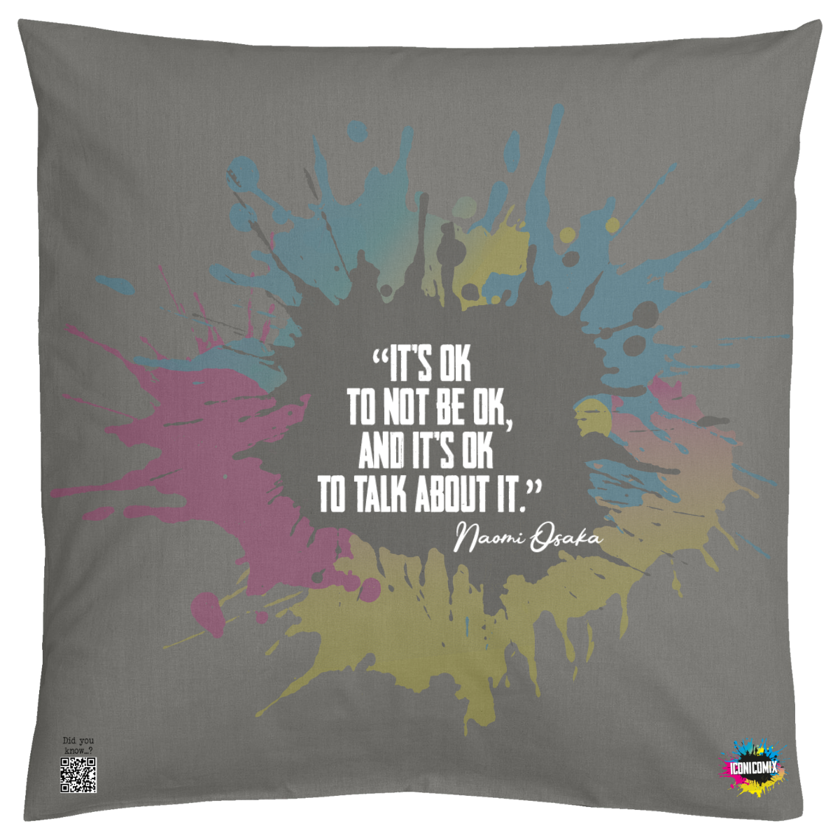 In ogni nostra grafica è presente anche un QR code che reindirizza al sito iconicomix.com, alla pagina ufficiale dell’icona che hai scelto. Una porta digitale che racconta la sua storia, le sue frasi e il suo mondo.