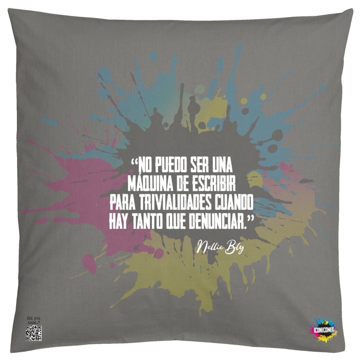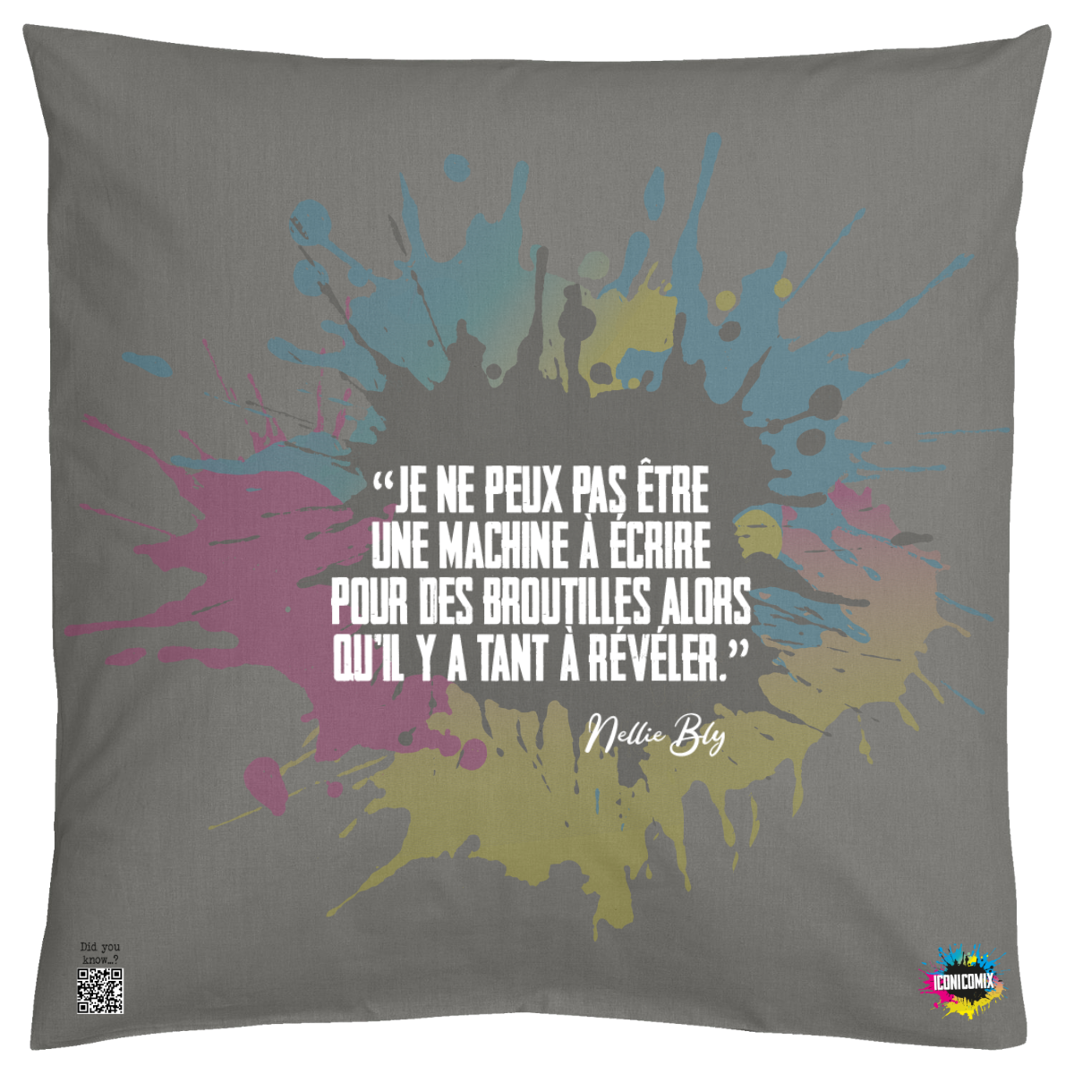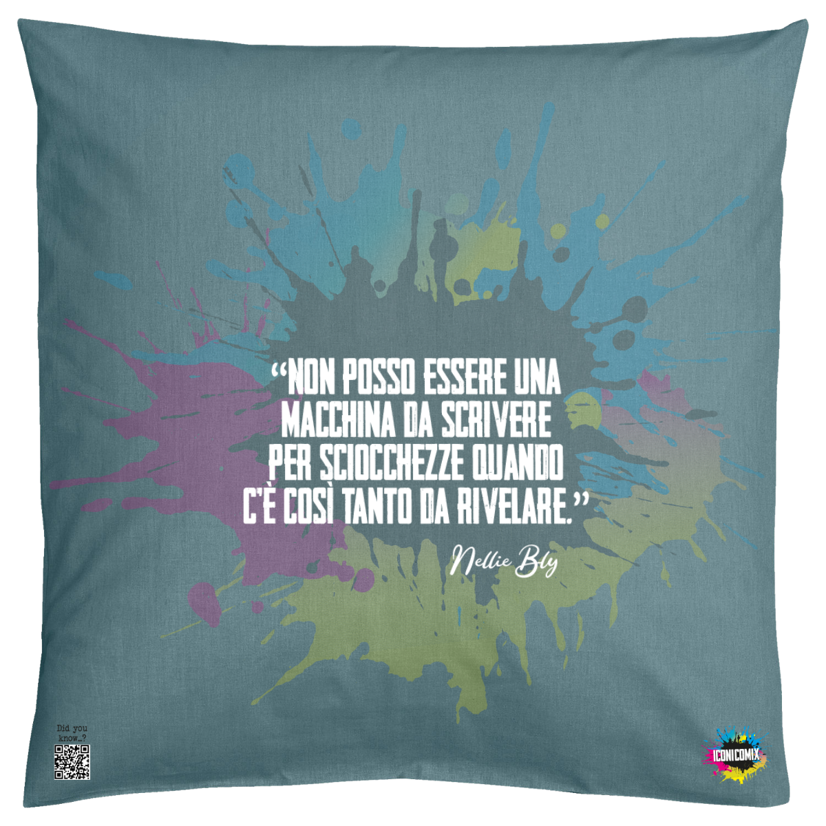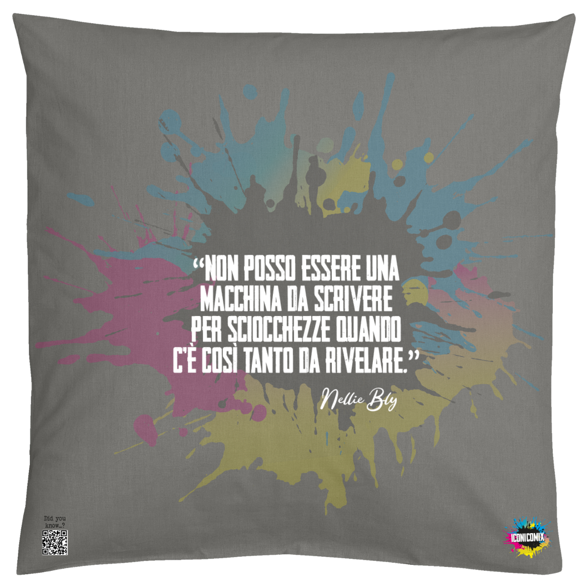 In ogni nostra grafica è presente anche un QR code che reindirizza al sito iconicomix.com, alla pagina ufficiale dell’icona che hai scelto. Una porta digitale che racconta la sua storia, le sue frasi e il suo mondo.