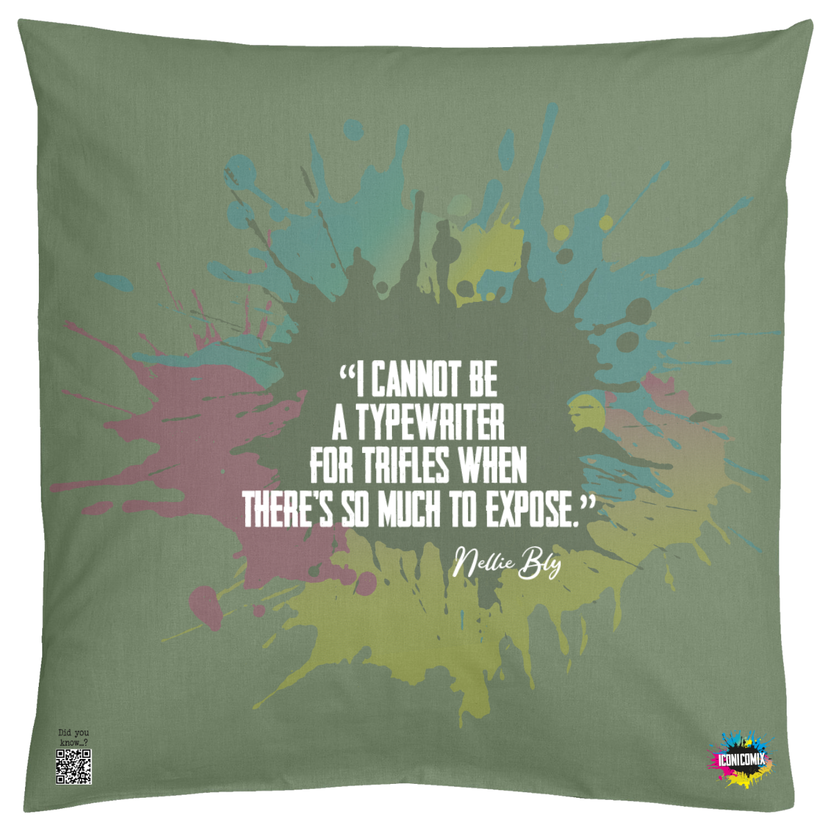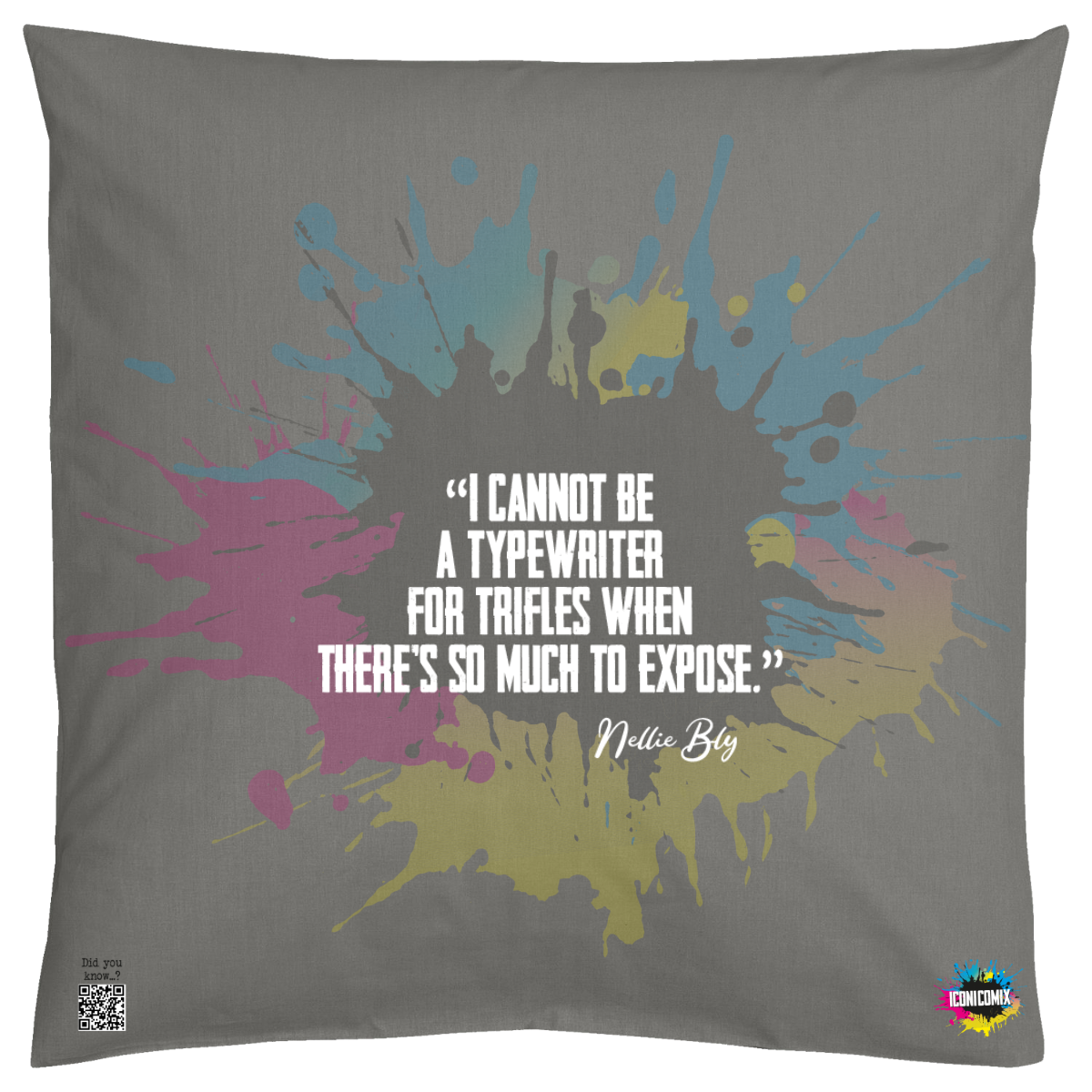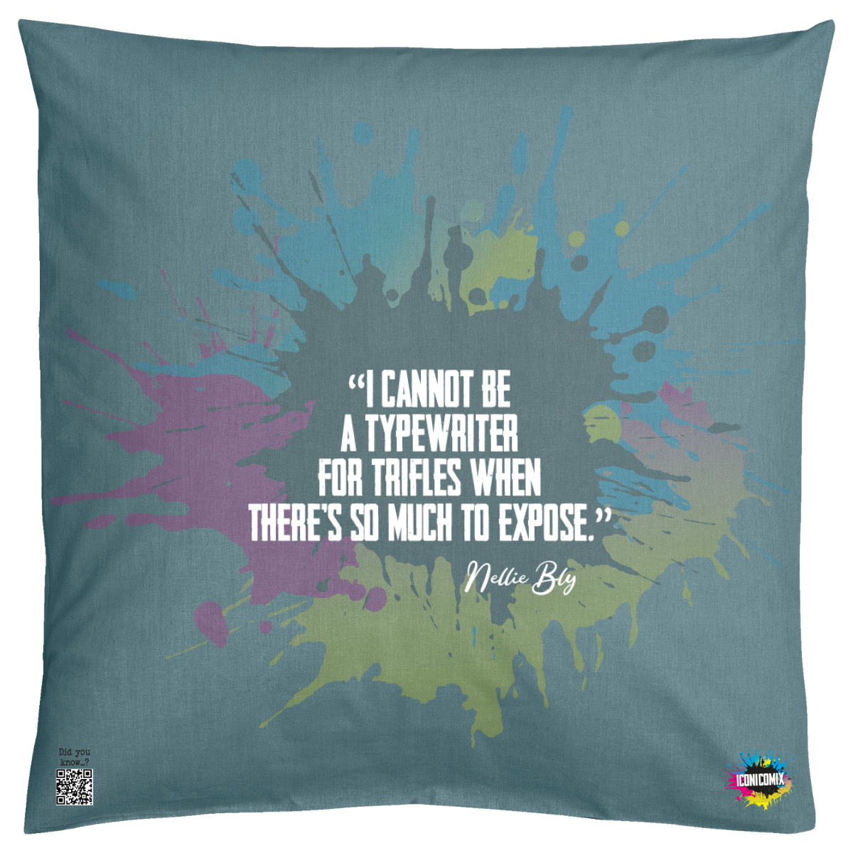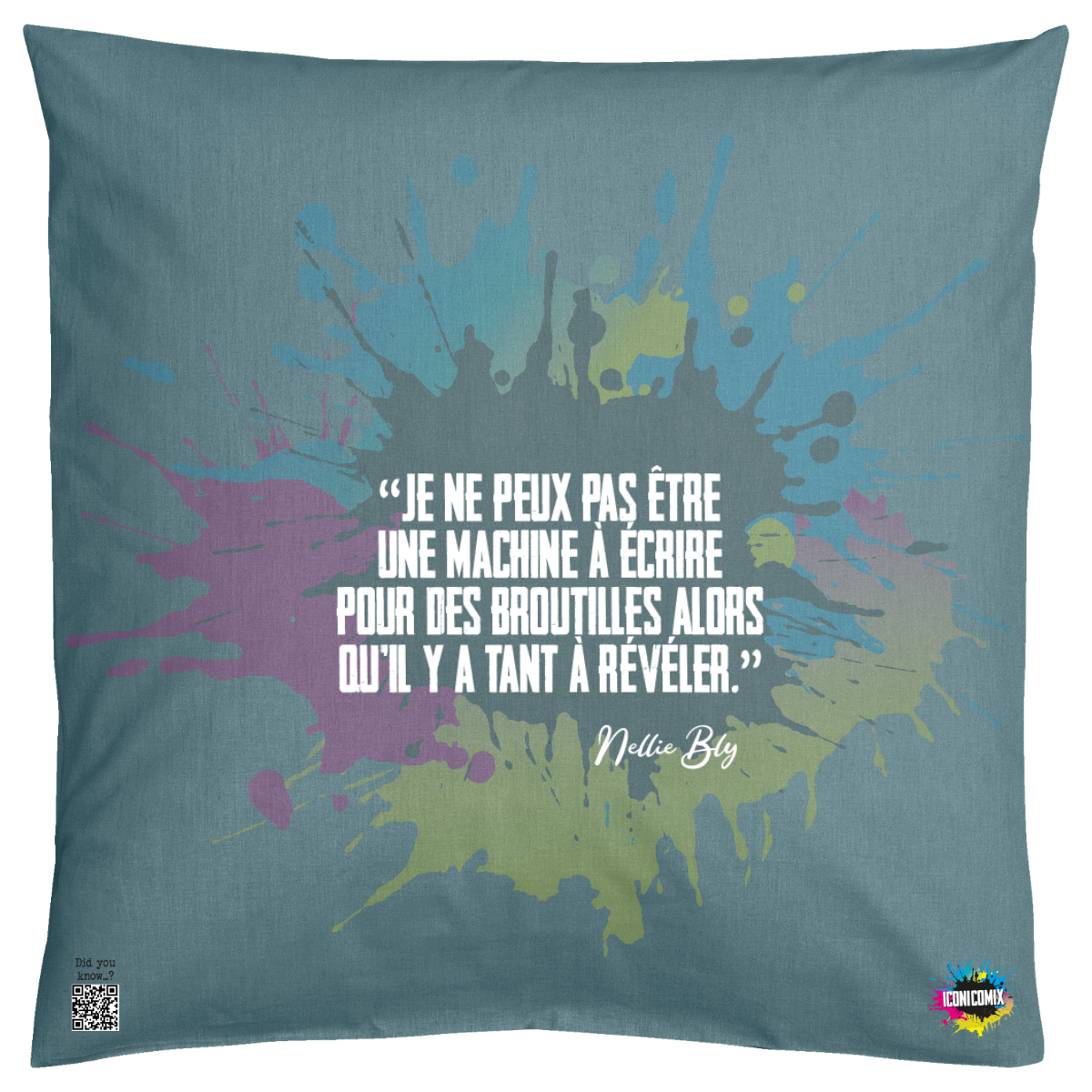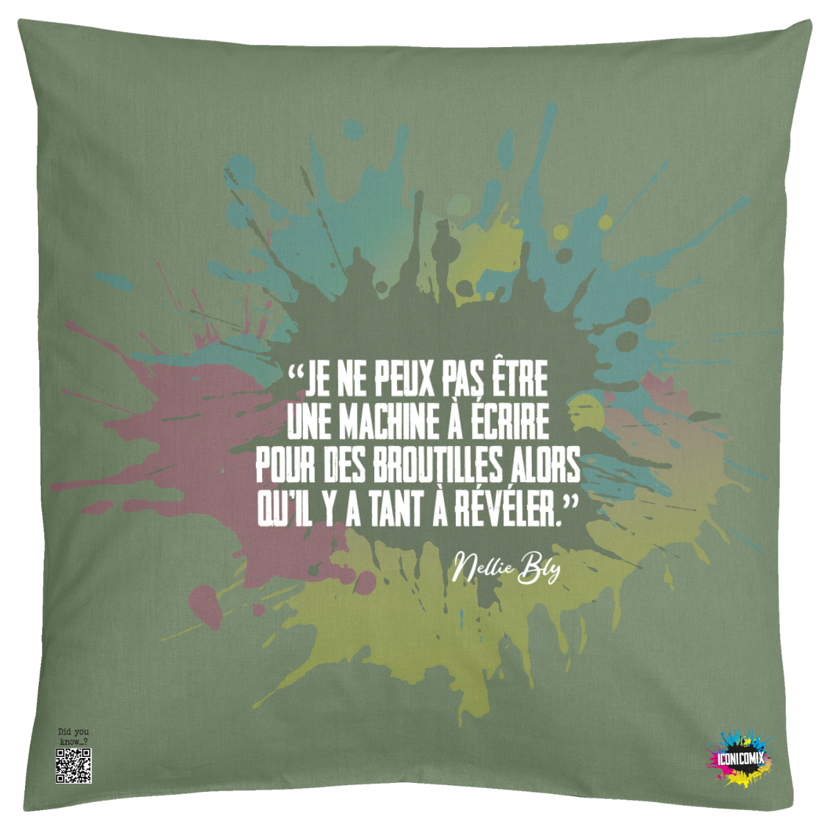 In ogni nostra grafica è presente anche un QR code che reindirizza al sito iconicomix.com, alla pagina ufficiale dell’icona che hai scelto. Una porta digitale che racconta la sua storia, le sue frasi e il suo mondo.