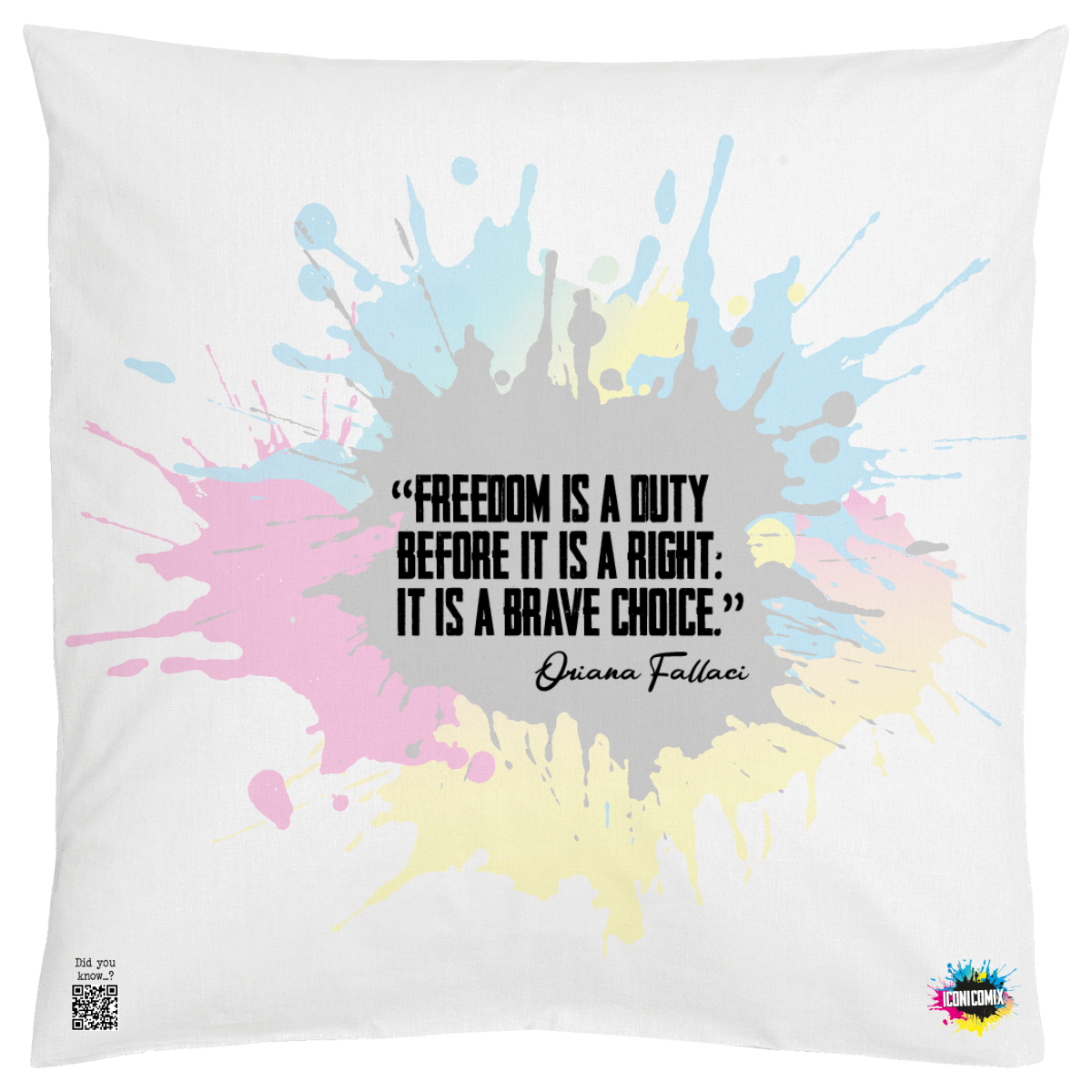 In ogni nostra grafica è presente anche un QR code che reindirizza al sito iconicomix.com, alla pagina ufficiale dell’icona che hai scelto. Una porta digitale che racconta la sua storia, le sue frasi e il suo mondo.