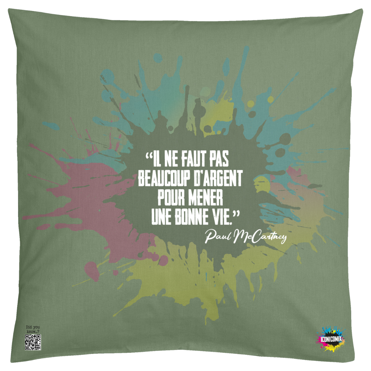 In ogni nostra grafica è presente anche un QR code che reindirizza al sito iconicomix.com, alla pagina ufficiale dell’icona che hai scelto. Una porta digitale che racconta la sua storia, le sue frasi e il suo mondo.