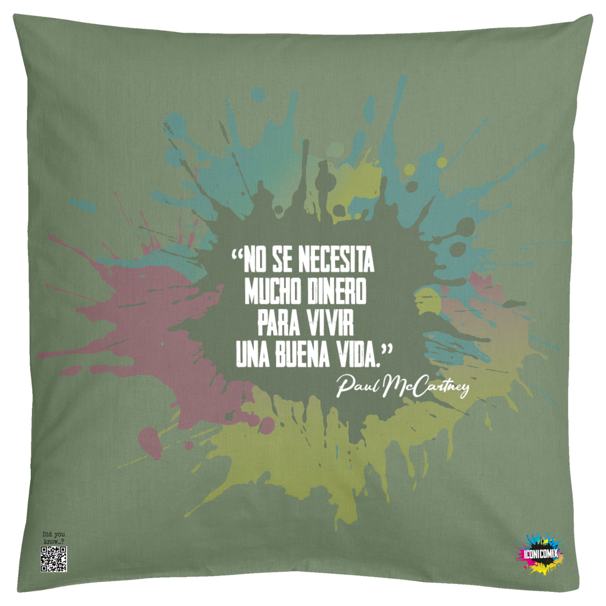 In ogni nostra grafica è presente anche un QR code che reindirizza al sito iconicomix.com, alla pagina ufficiale dell’icona che hai scelto. Una porta digitale che racconta la sua storia, le sue frasi e il suo mondo.