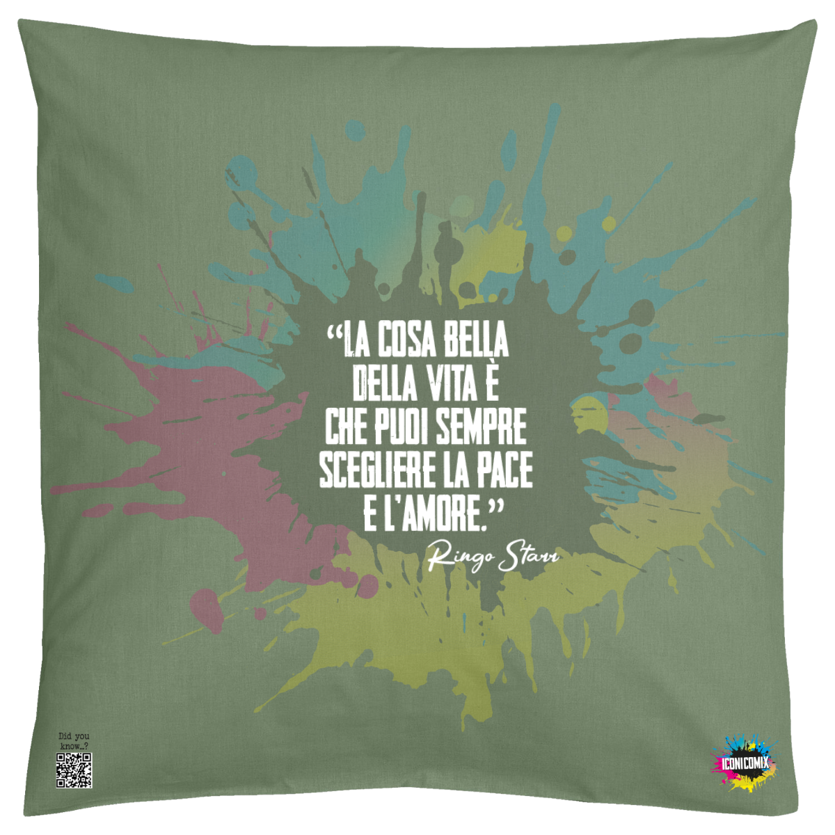 In ogni nostra grafica è presente anche un QR code che reindirizza al sito iconicomix.com, alla pagina ufficiale dell’icona che hai scelto. Una porta digitale che racconta la sua storia, le sue frasi e il suo mondo.