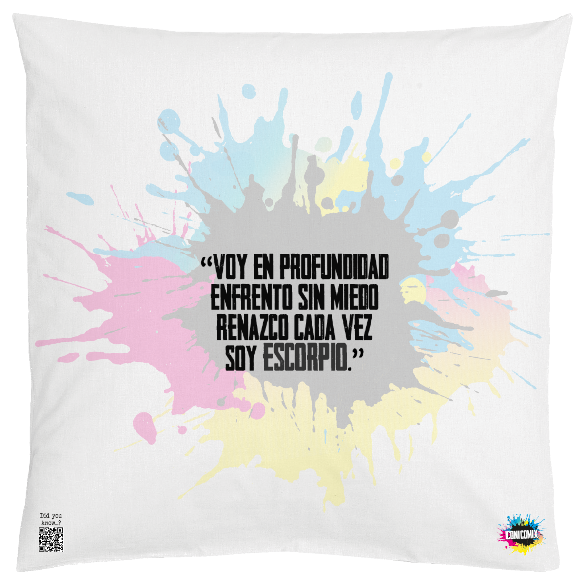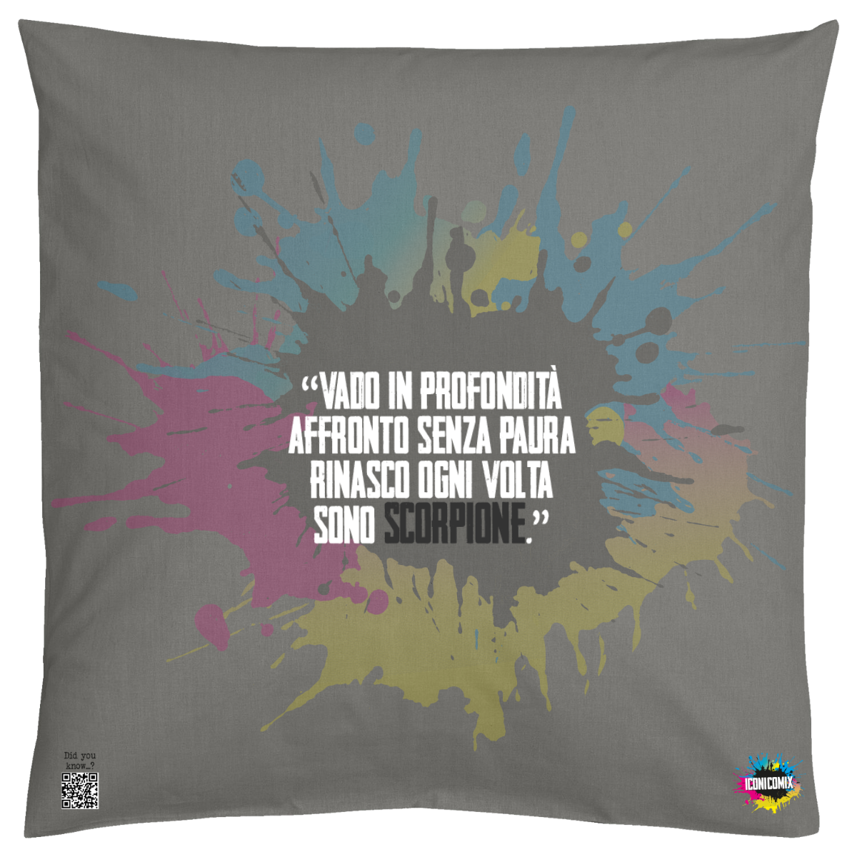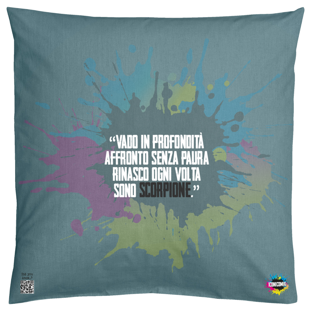 In ogni nostra grafica è presente anche un QR code che reindirizza al sito iconicomix.com, alla pagina ufficiale dell’icona che hai scelto. Una porta digitale che racconta la sua storia, le sue frasi e il suo mondo.