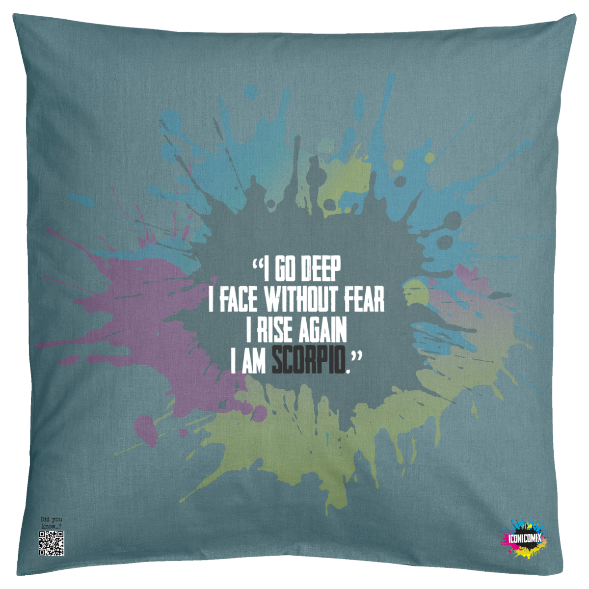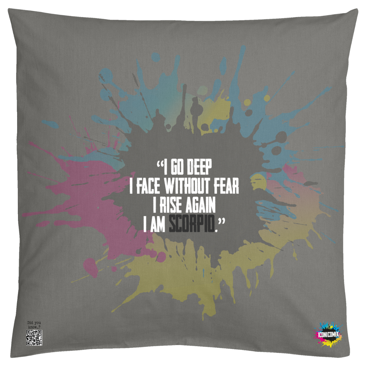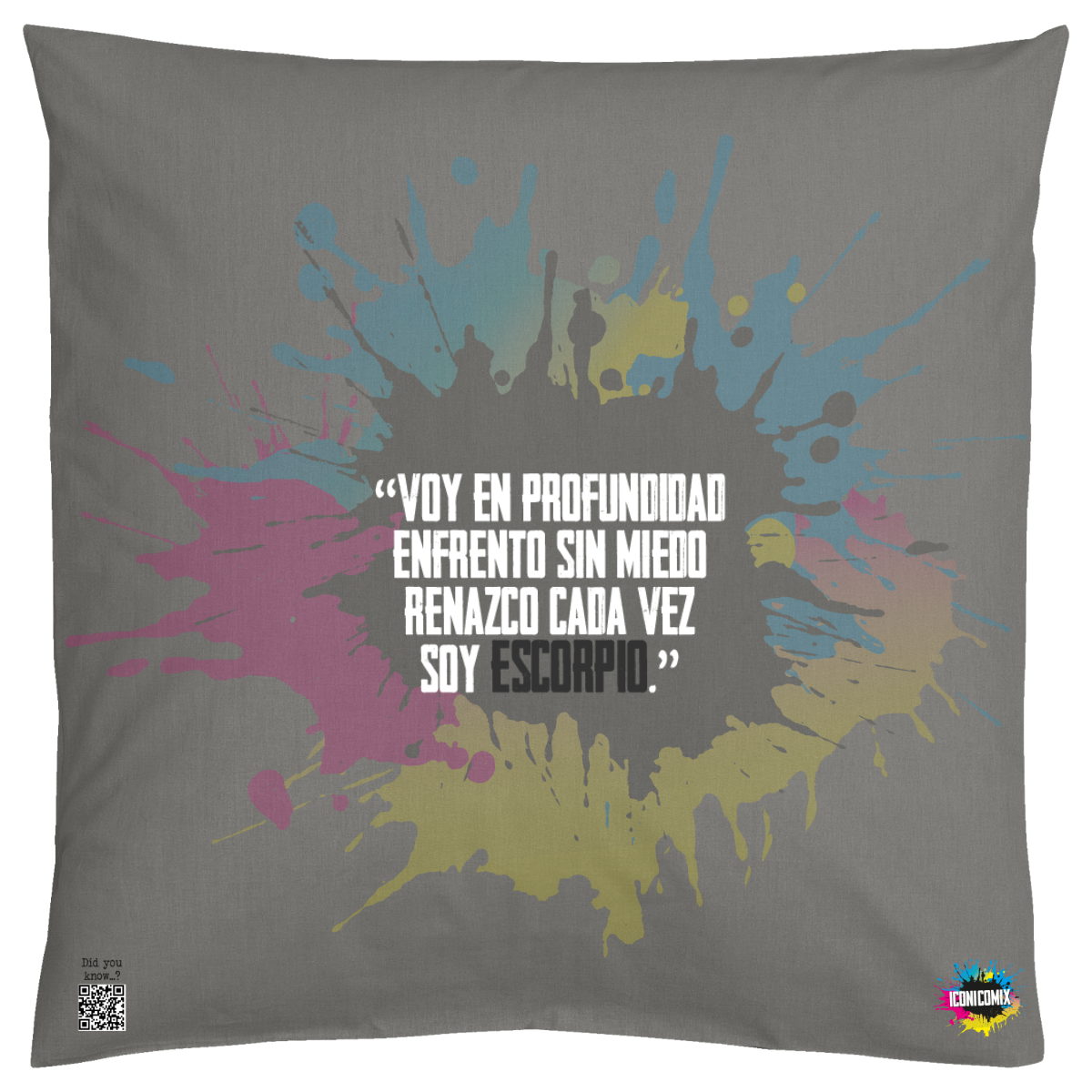 In ogni nostra grafica è presente anche un QR code che reindirizza al sito iconicomix.com, alla pagina ufficiale dell’icona che hai scelto. Una porta digitale che racconta la sua storia, le sue frasi e il suo mondo.