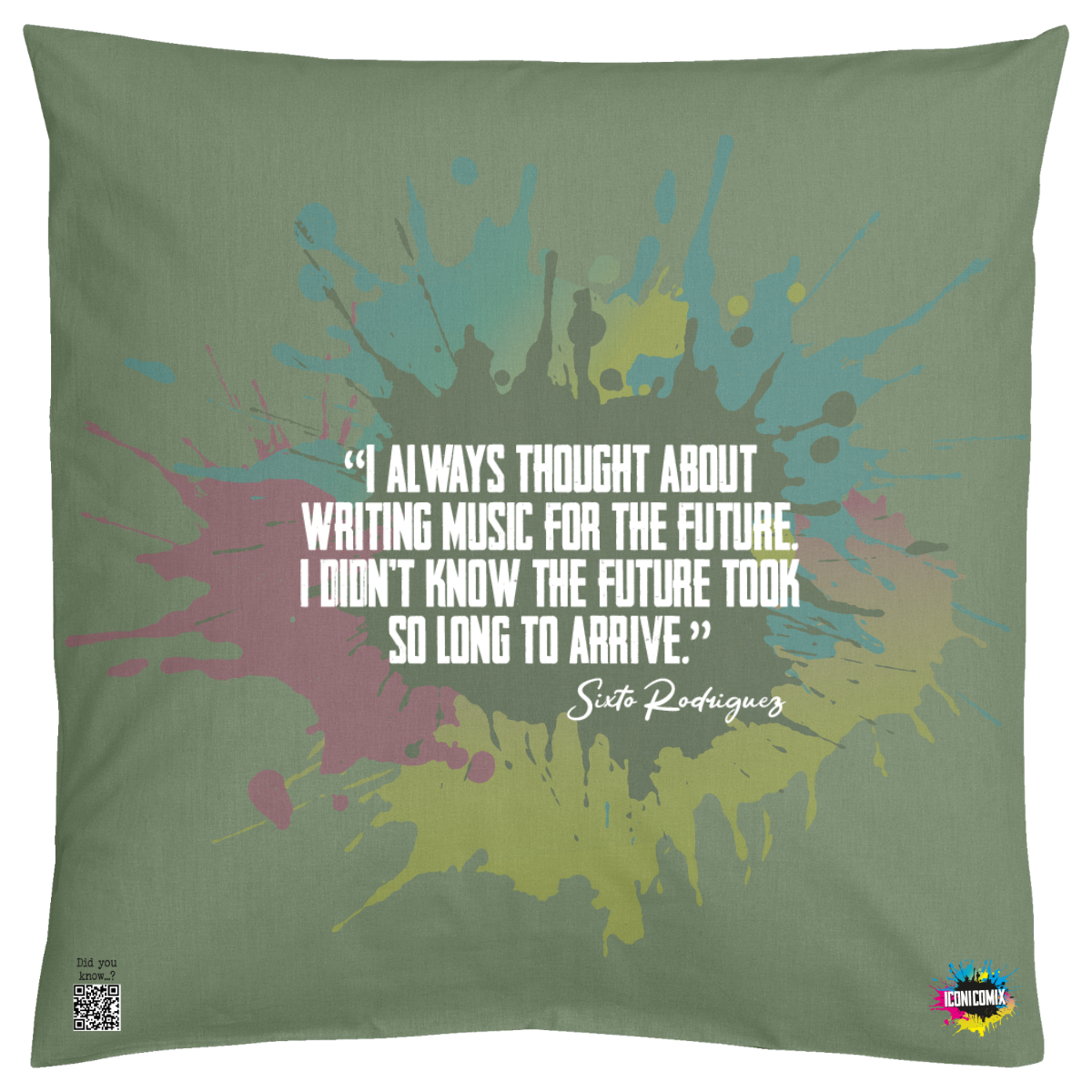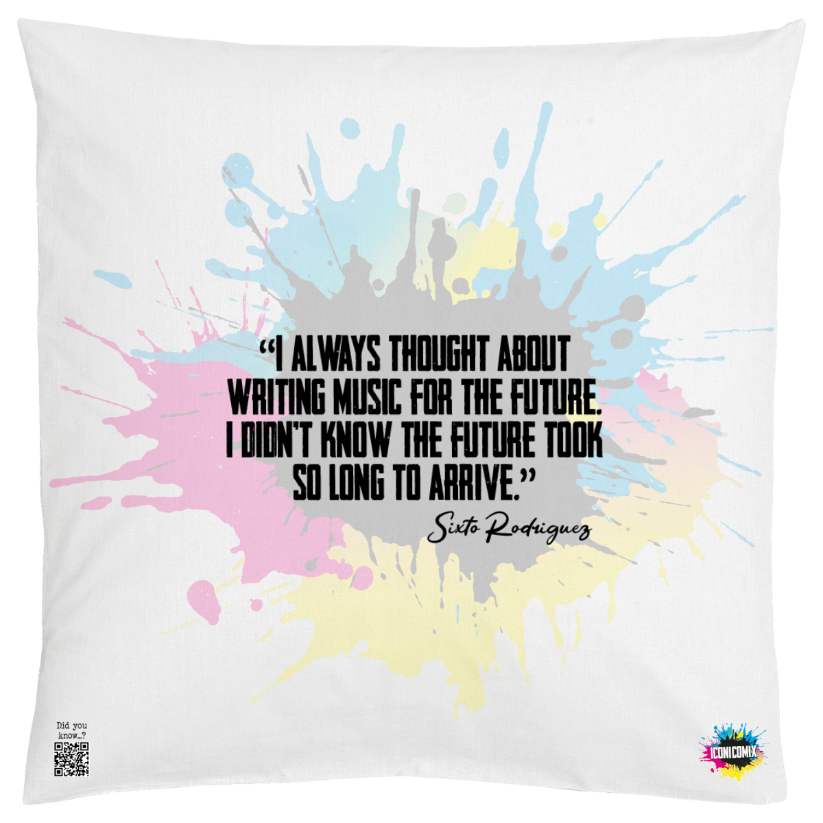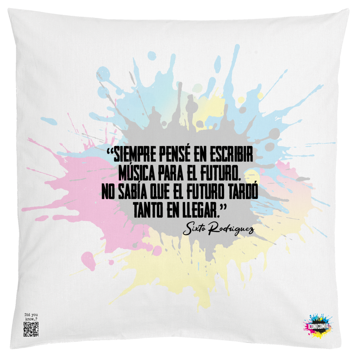 In ogni nostra grafica è presente anche un QR code che reindirizza al sito iconicomix.com, alla pagina ufficiale dell’icona che hai scelto. Una porta digitale che racconta la sua storia, le sue frasi e il suo mondo.