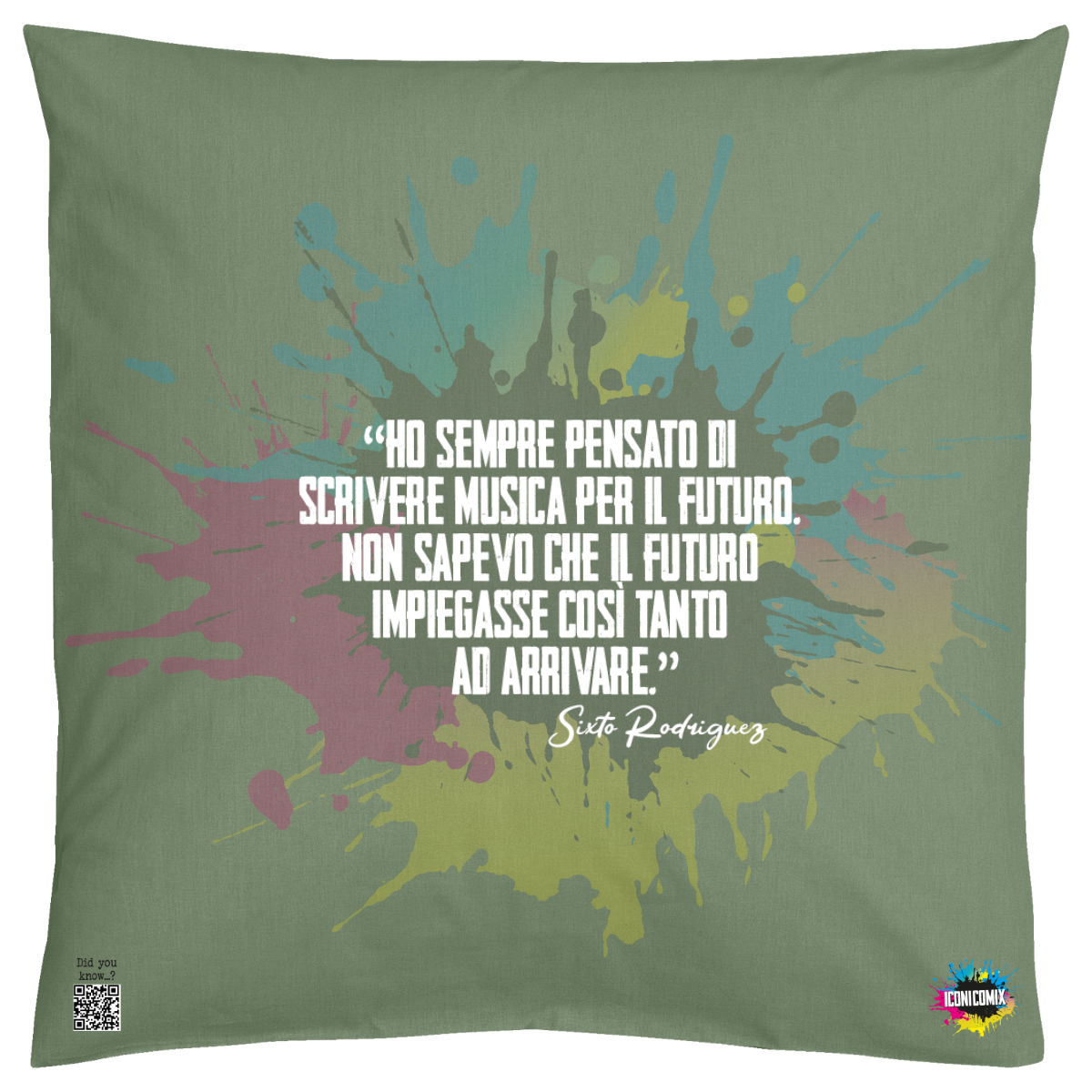 In ogni nostra grafica è presente anche un QR code che reindirizza al sito iconicomix.com, alla pagina ufficiale dell’icona che hai scelto. Una porta digitale che racconta la sua storia, le sue frasi e il suo mondo.