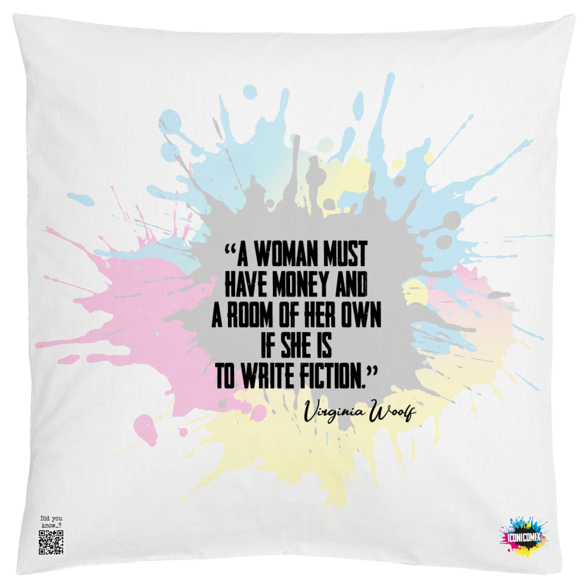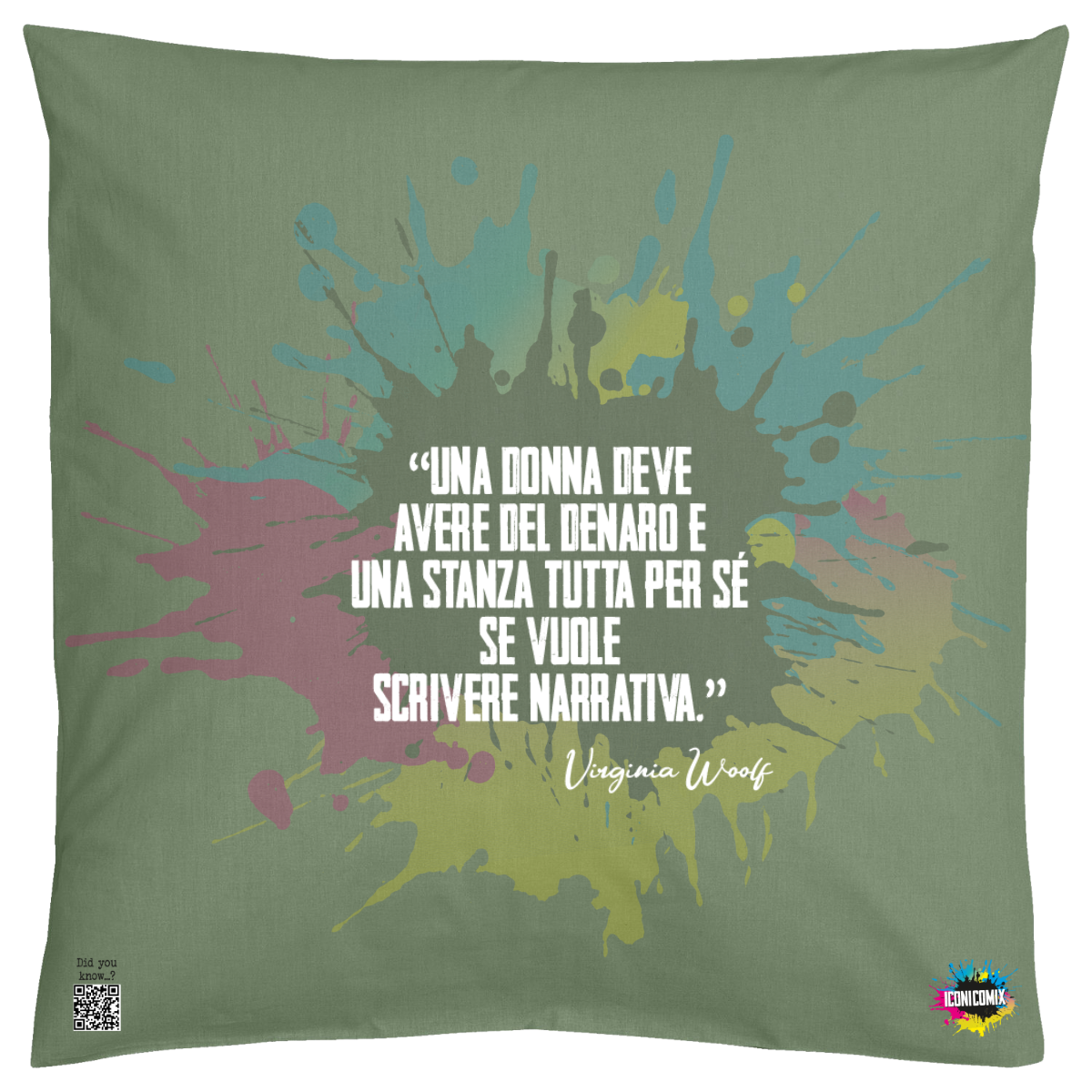In ogni nostra grafica è presente anche un QR code che reindirizza al sito iconicomix.com, alla pagina ufficiale dell’icona che hai scelto. Una porta digitale che racconta la sua storia, le sue frasi e il suo mondo.