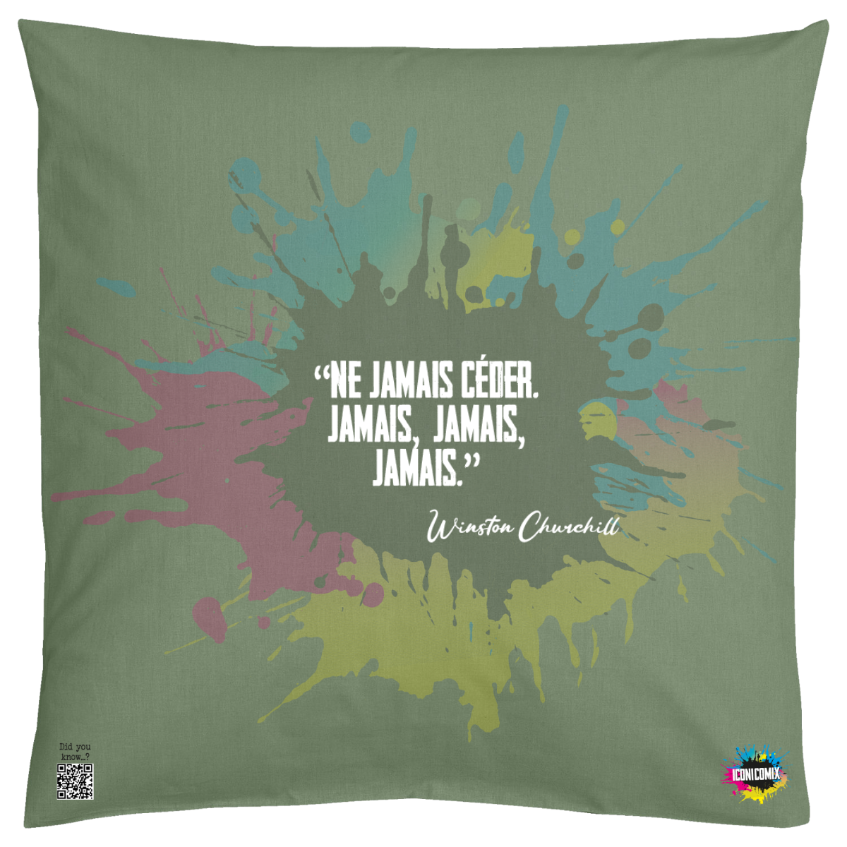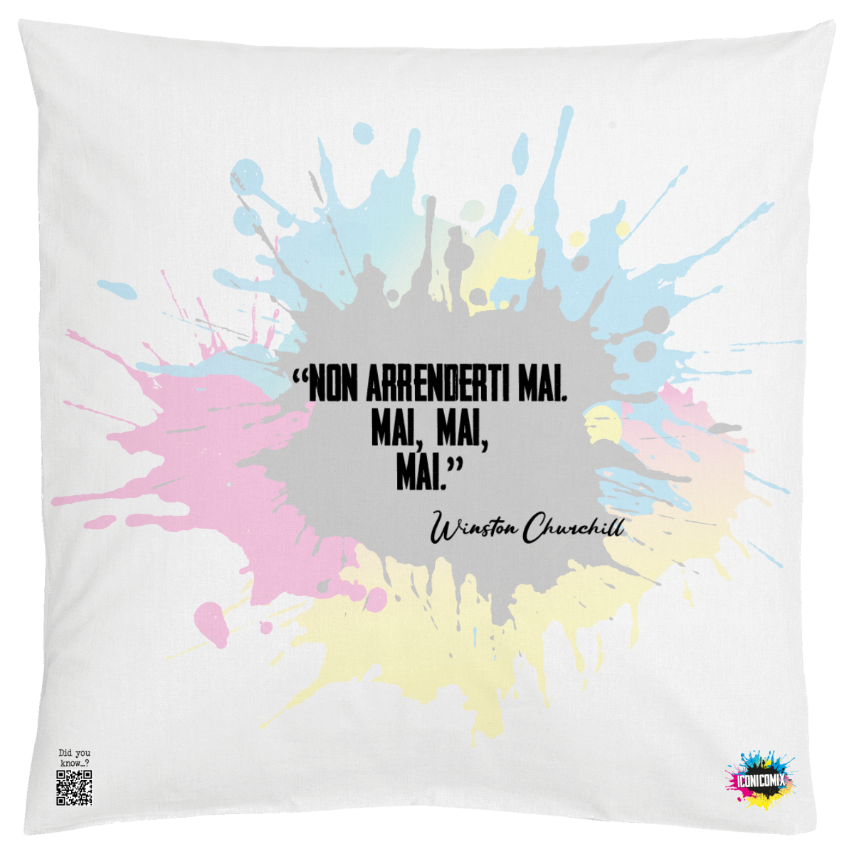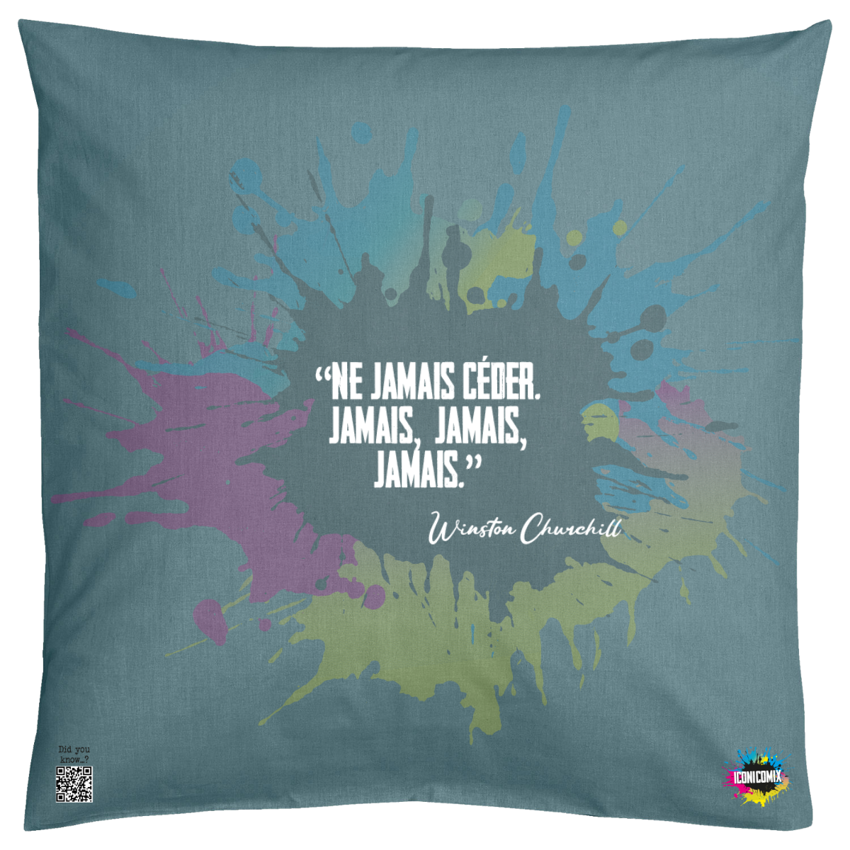 Cada uno de nuestros diseños incluye un código QR que te redirige a iconicomix.com, la página oficial del icono que has elegido. Un portal digital que narra su historia, sus frases y su universo.