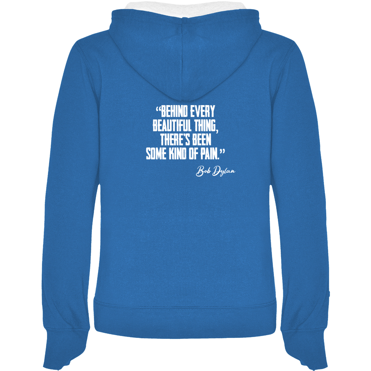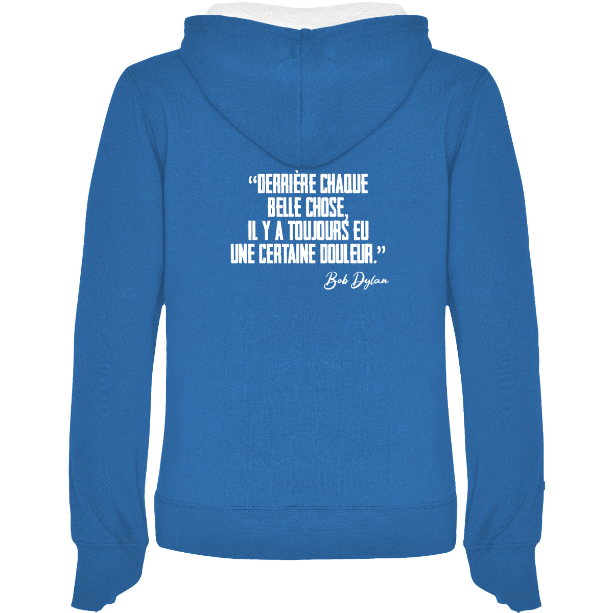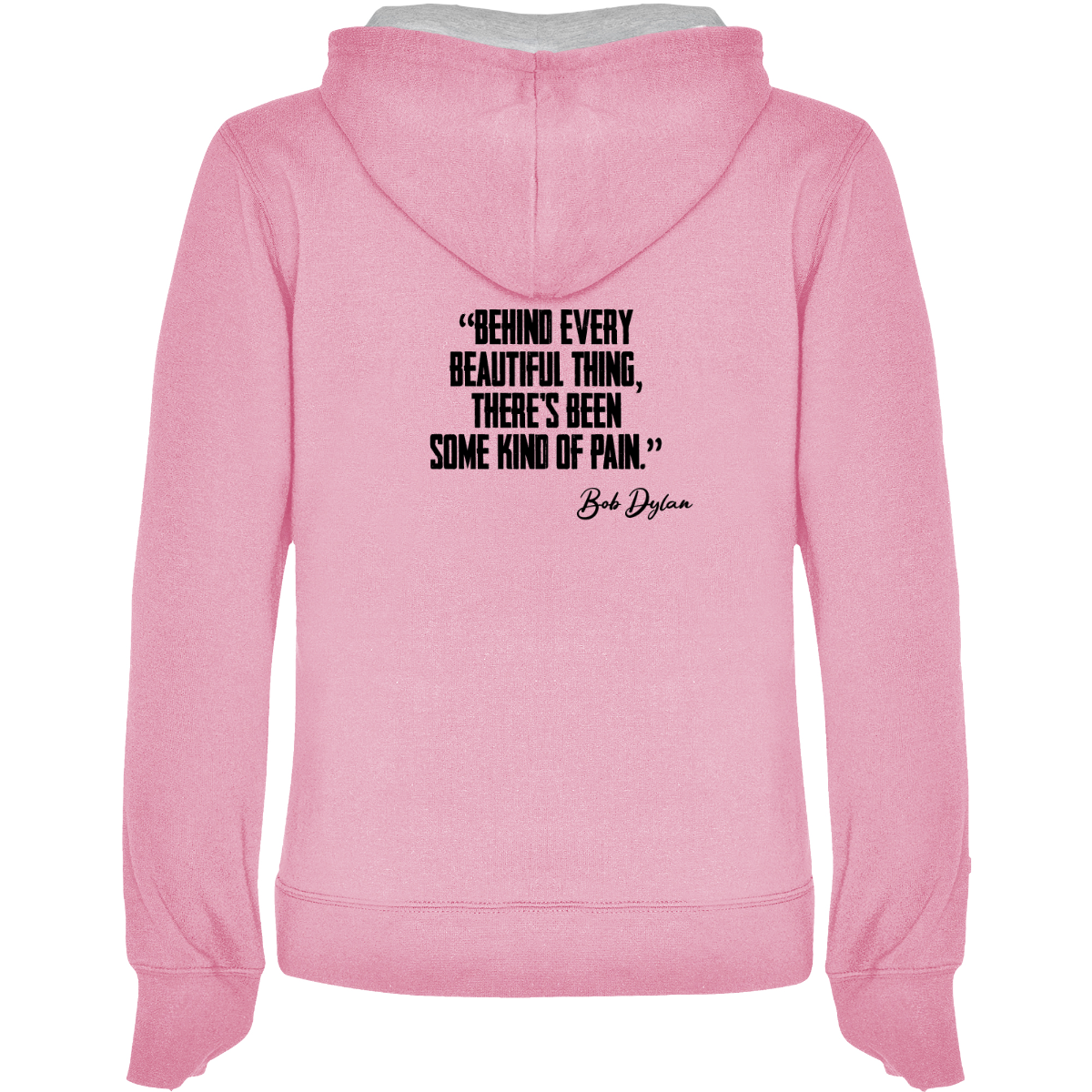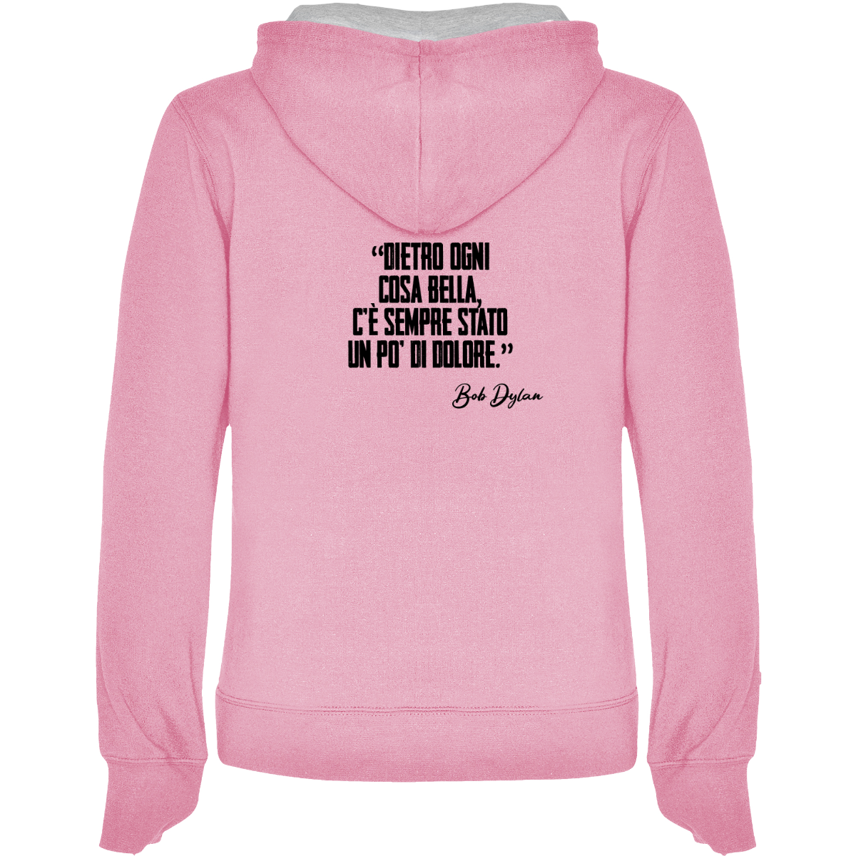 Felpa con cappuccio, anche  bicolore, tessuto doppio, con cordone regolabile. Tasca frontale. Costine 1x1 su polsini e girovita. 50% cotone / 50% poliestere, interno felpato, 280 g/m².