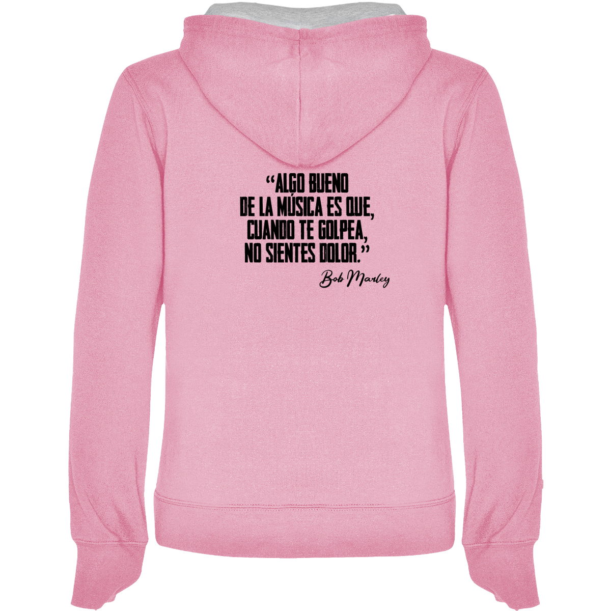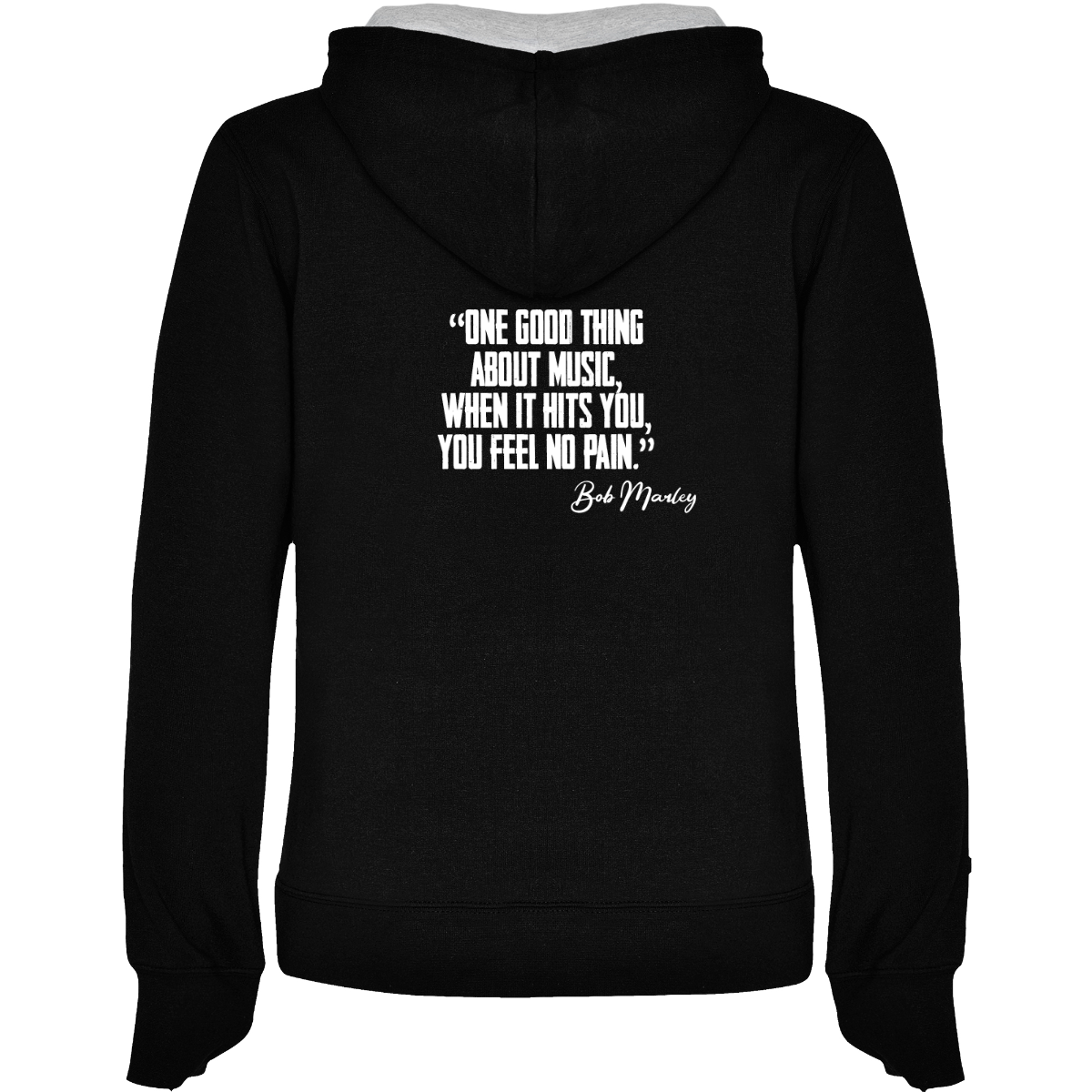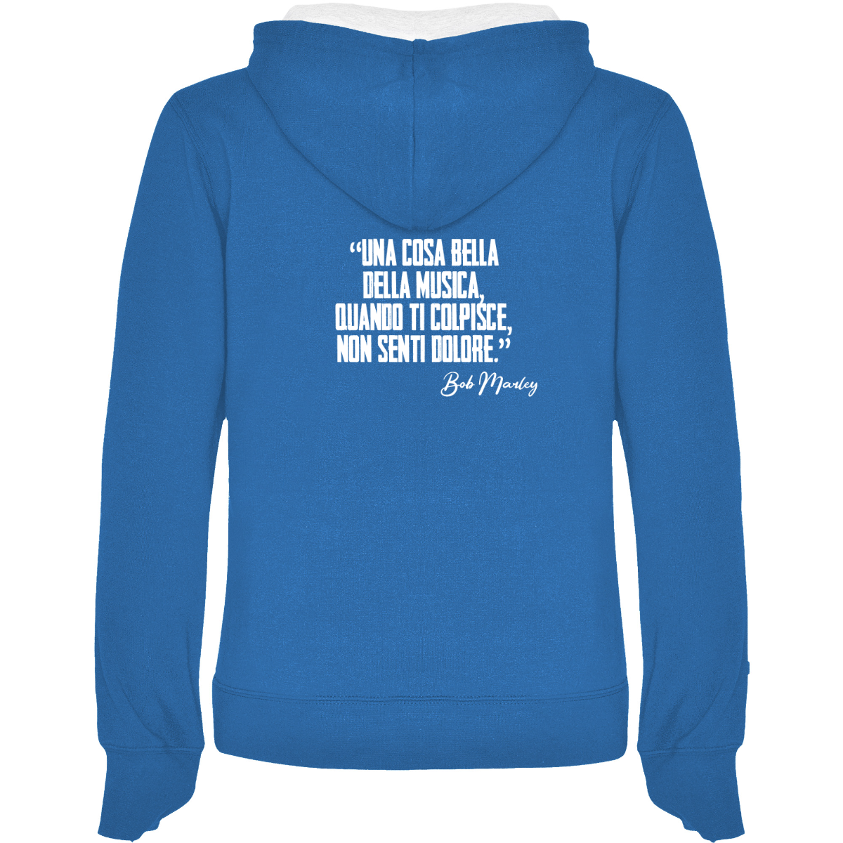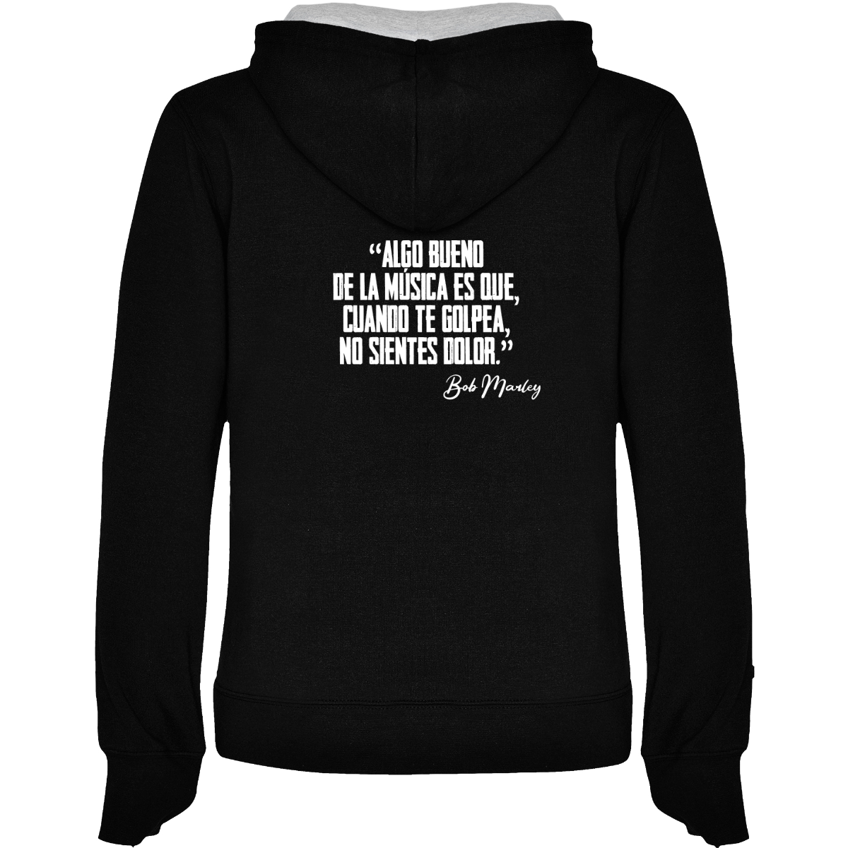 Hooded sweatshirt, also available in two-tone, double fabric, with adjustable drawstring. Front pocket. 1x1 ribbed cuffs and waistband. 50% cotton / 50% polyester, brushed interior, 280 gsm.