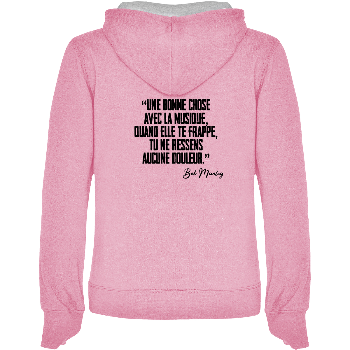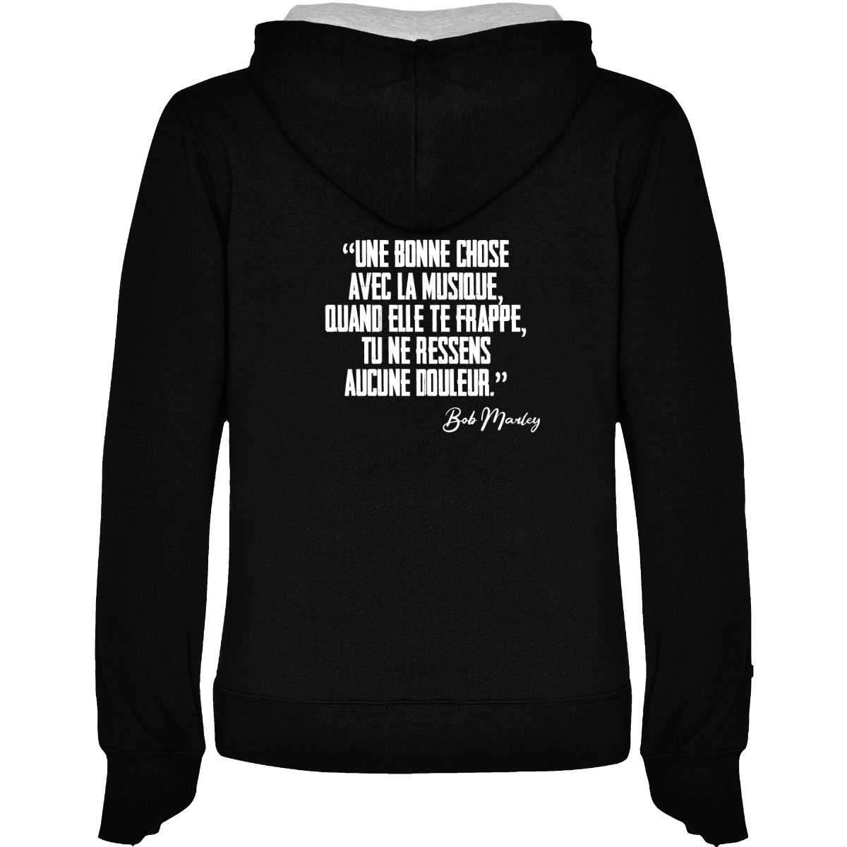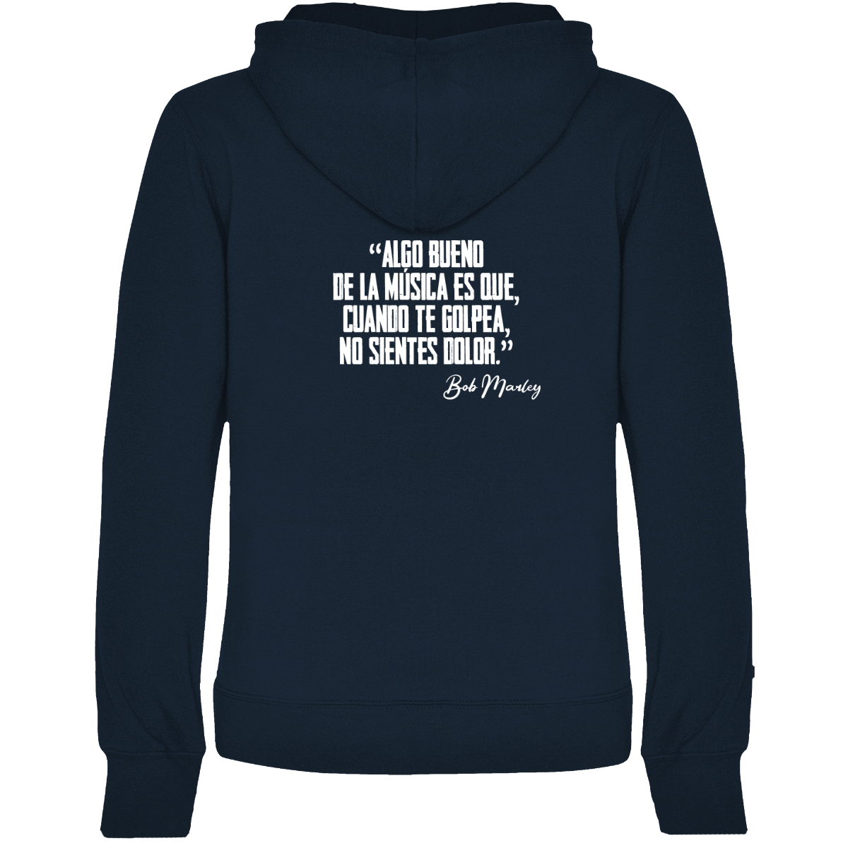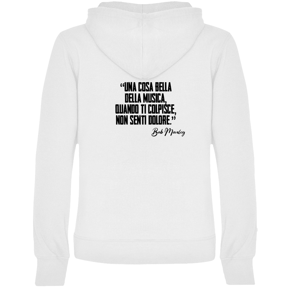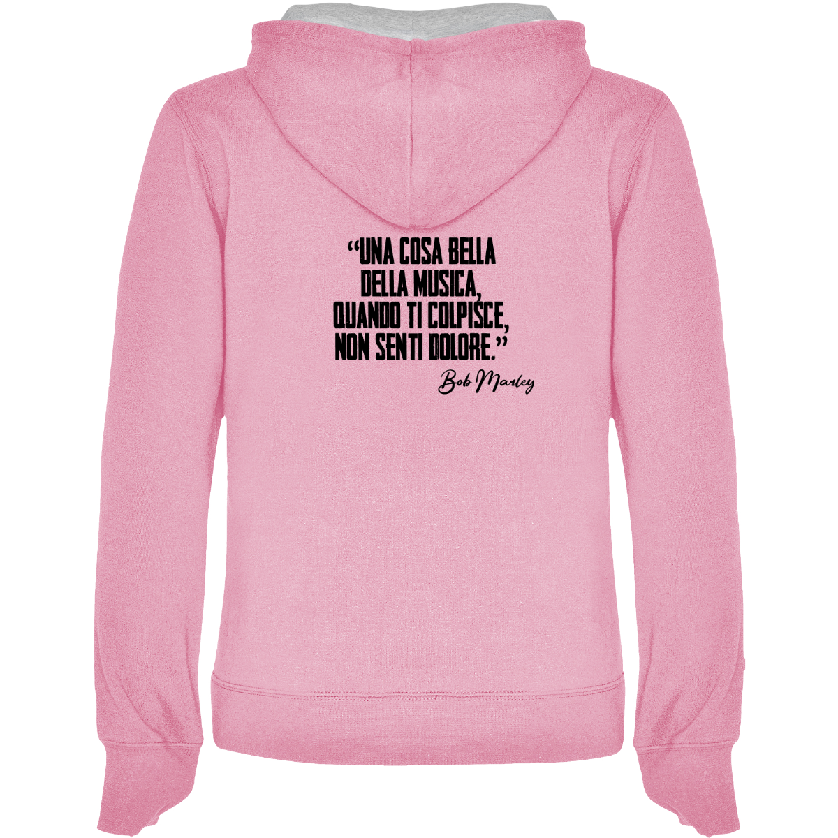 Hooded sweatshirt, also available in two-tone, double fabric, with adjustable drawstring. Front pocket. 1x1 ribbed cuffs and waistband. 50% cotton / 50% polyester, brushed interior, 280 gsm.