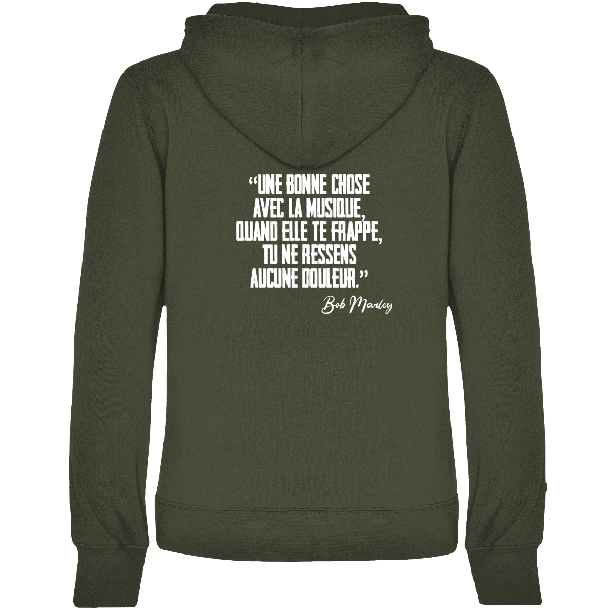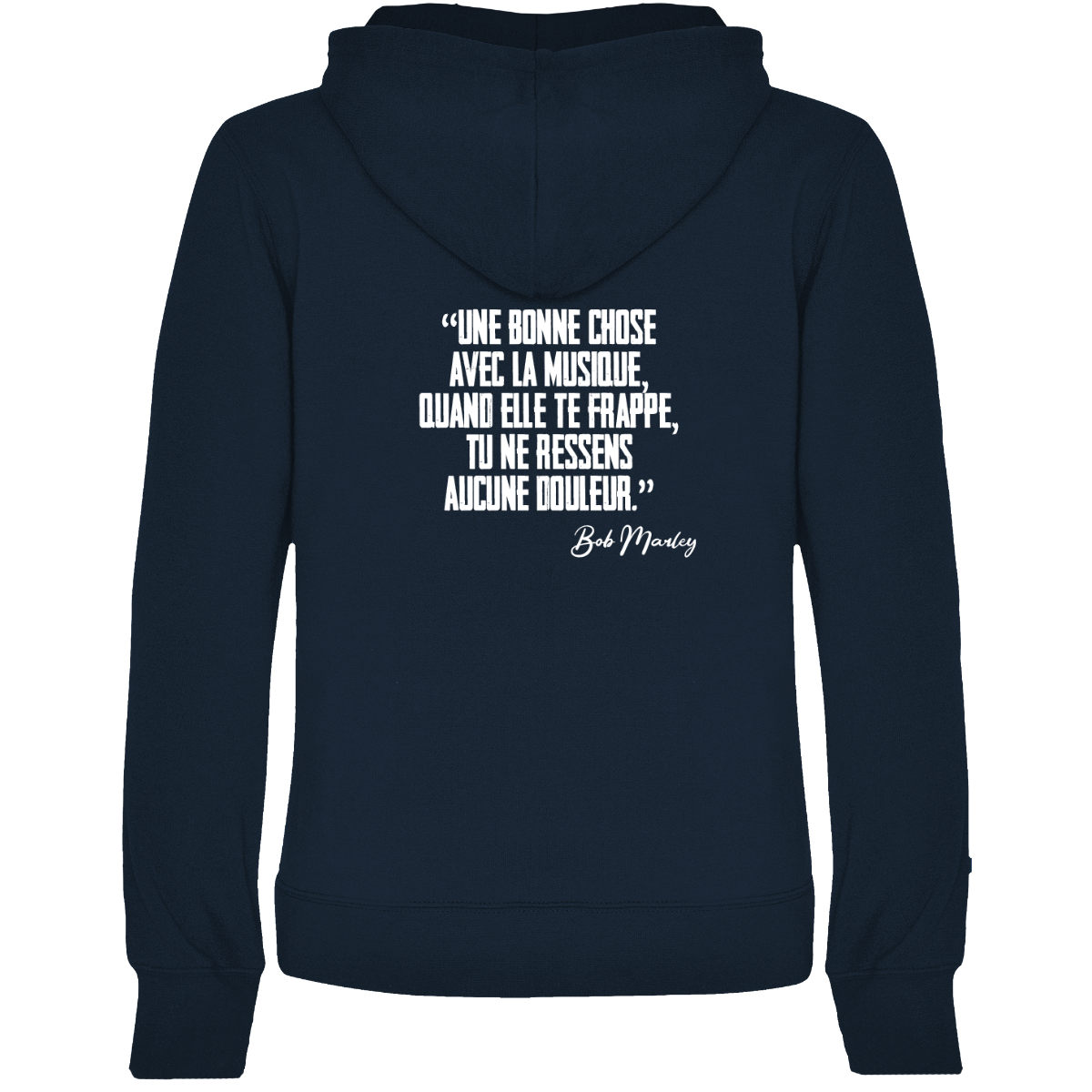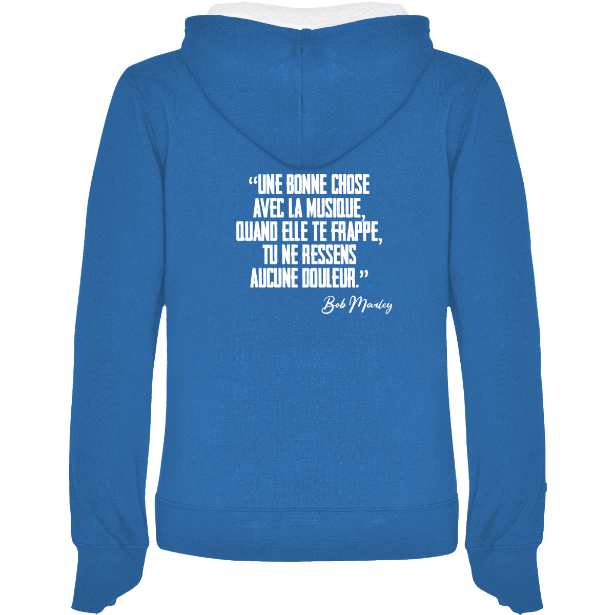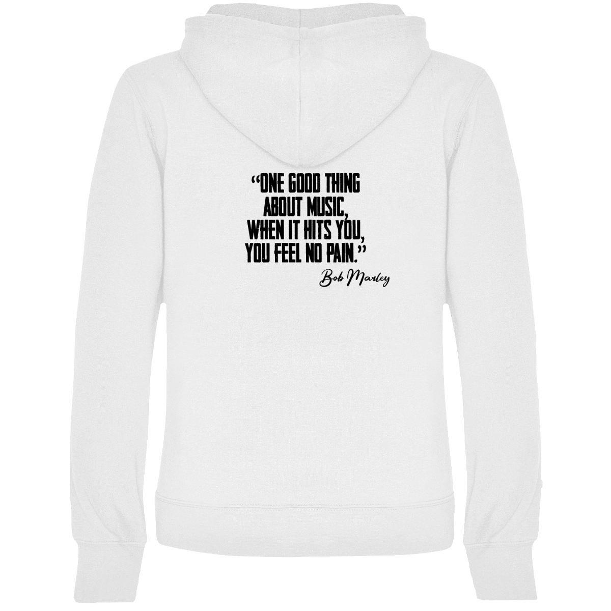 Hooded sweatshirt, also available in two-tone, double fabric, with adjustable drawstring. Front pocket. 1x1 ribbed cuffs and waistband. 50% cotton / 50% polyester, brushed interior, 280 gsm.