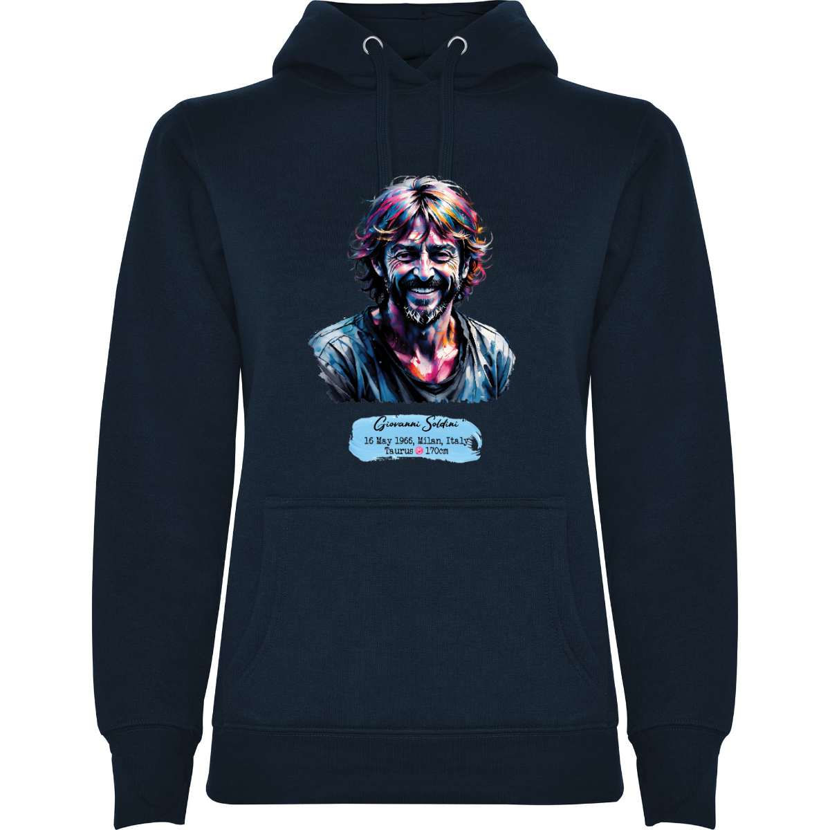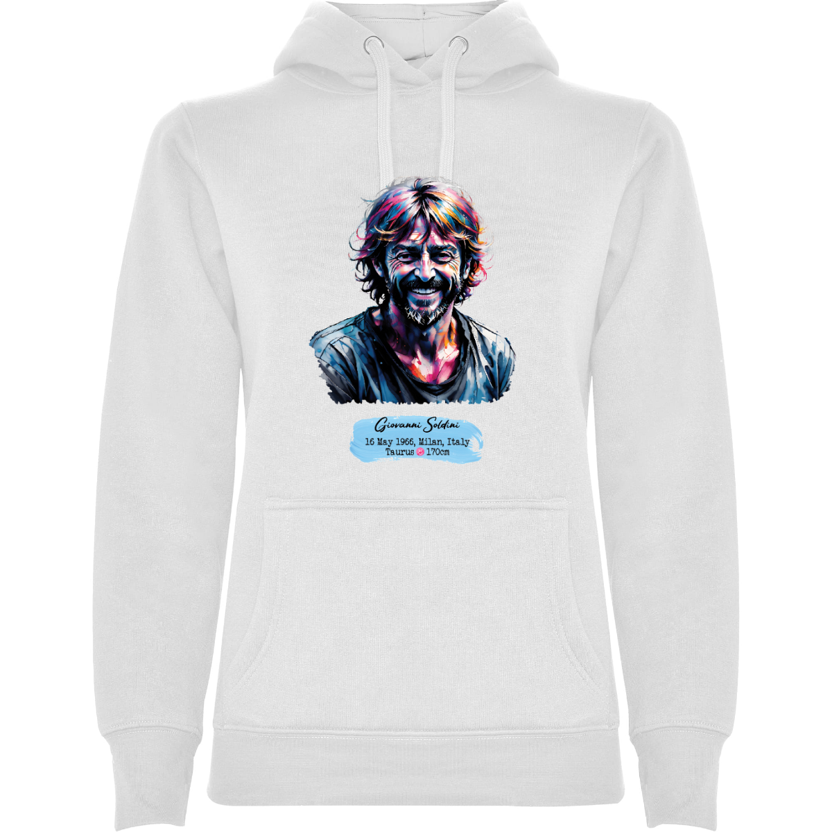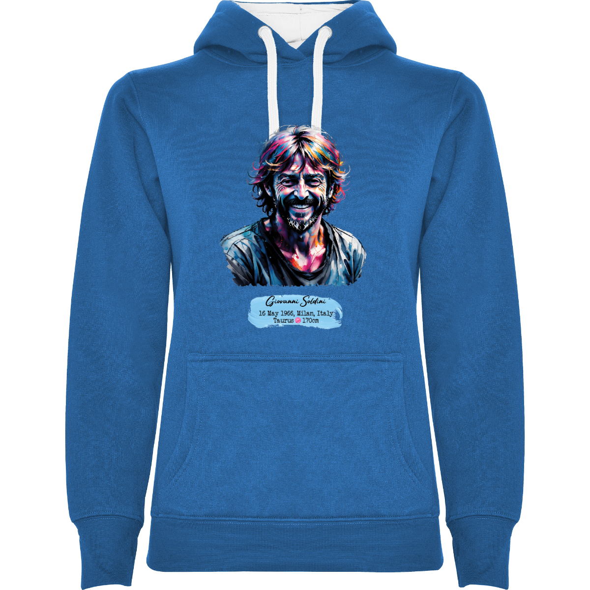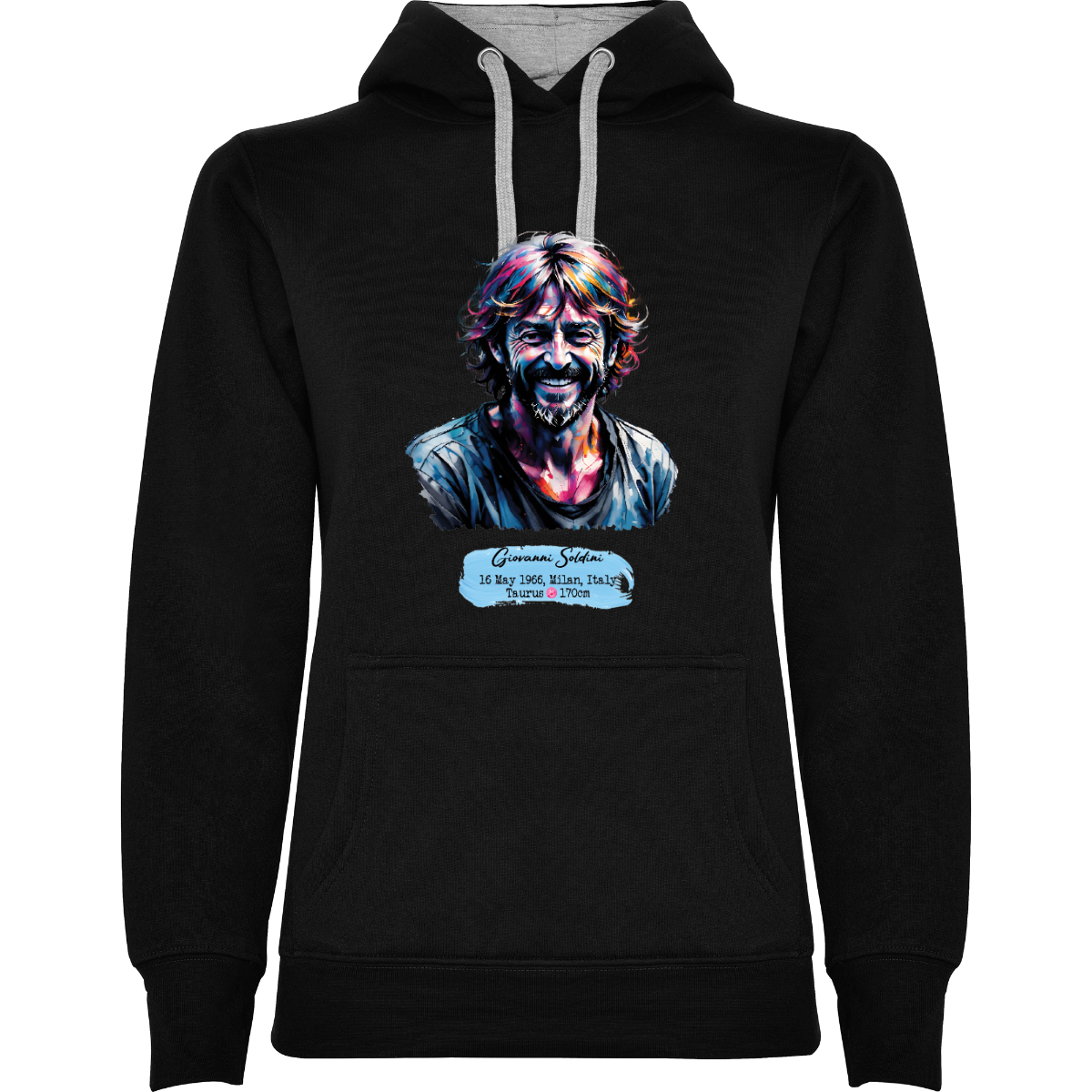 Felpa con cappuccio, anche  bicolore, tessuto doppio, con cordone regolabile. Tasca frontale. Costine 1x1 su polsini e girovita. 50% cotone / 50% poliestere, interno felpato, 280 g/m².