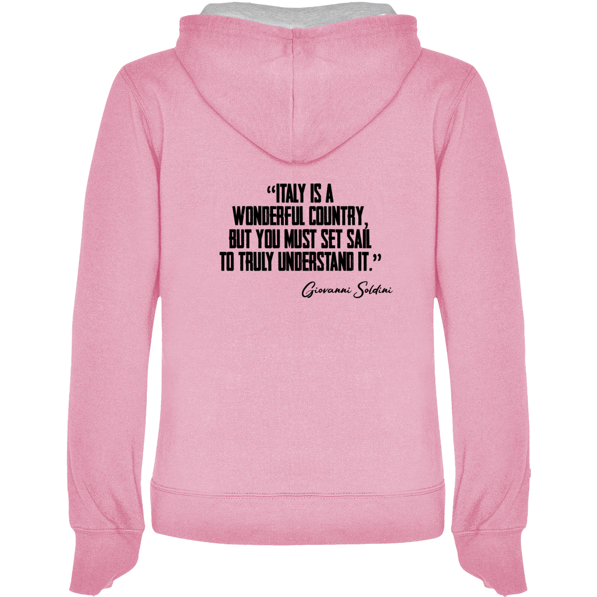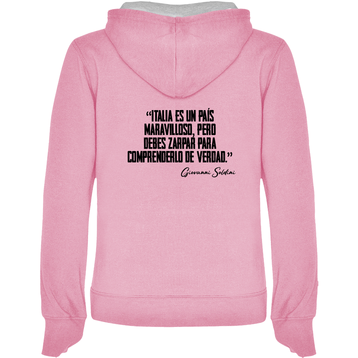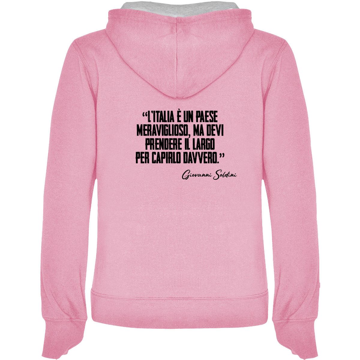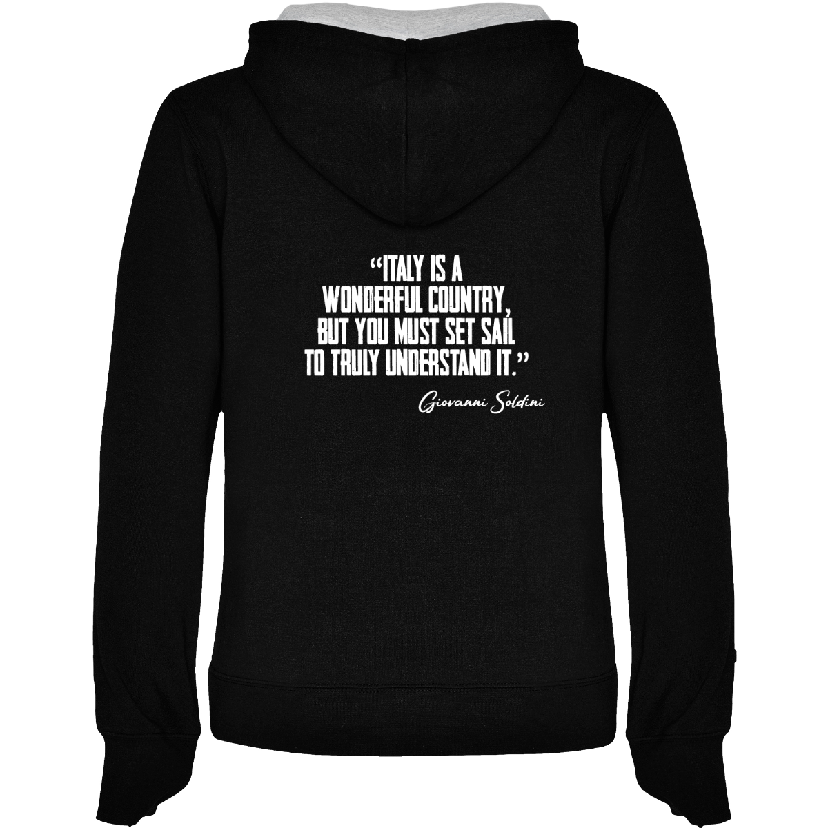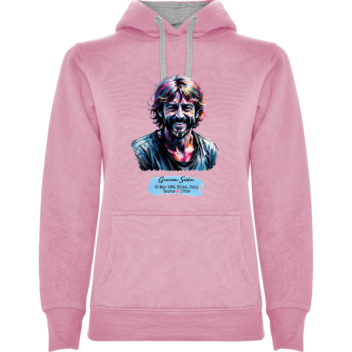 Felpa con cappuccio, anche  bicolore, tessuto doppio, con cordone regolabile. Tasca frontale. Costine 1x1 su polsini e girovita. 50% cotone / 50% poliestere, interno felpato, 280 g/m².