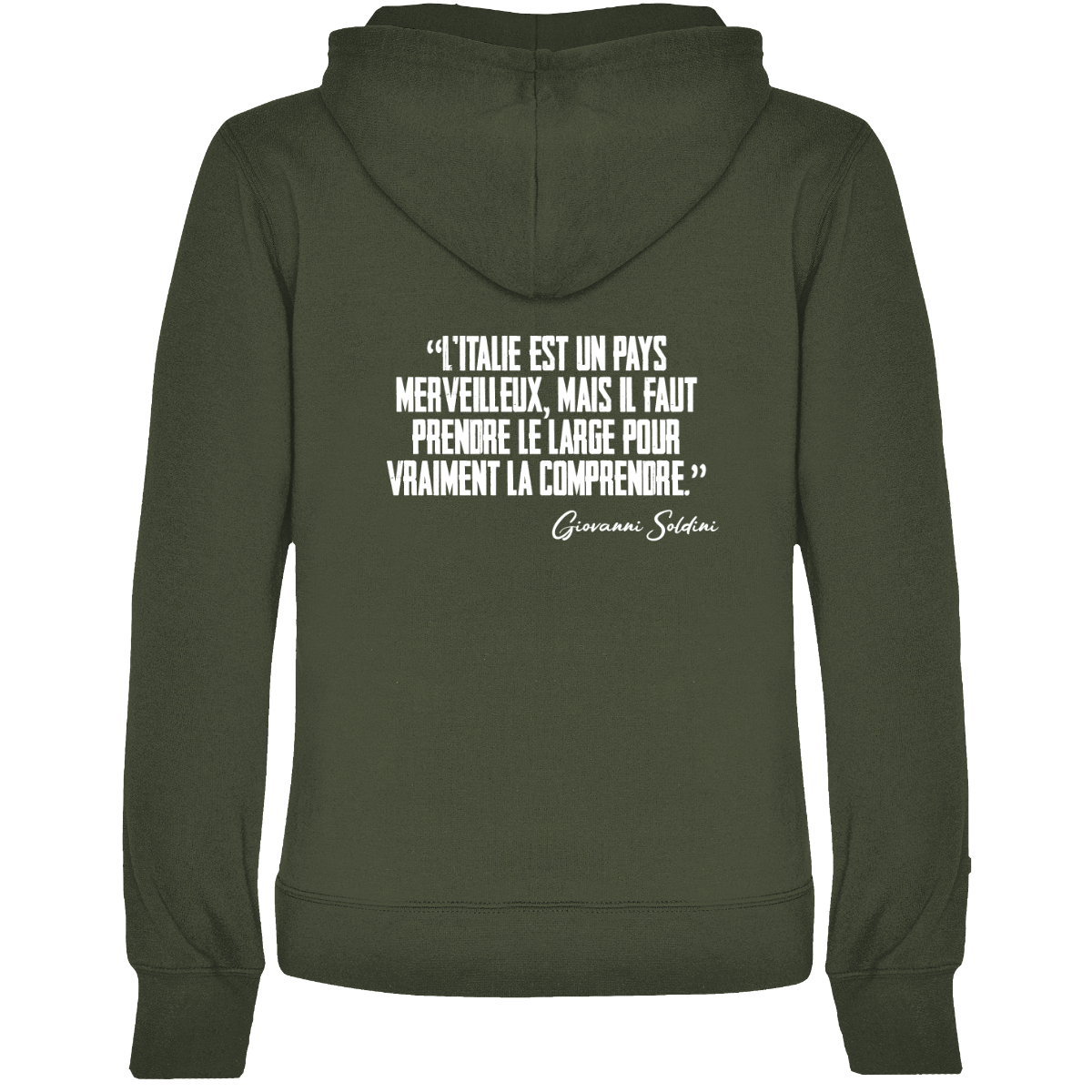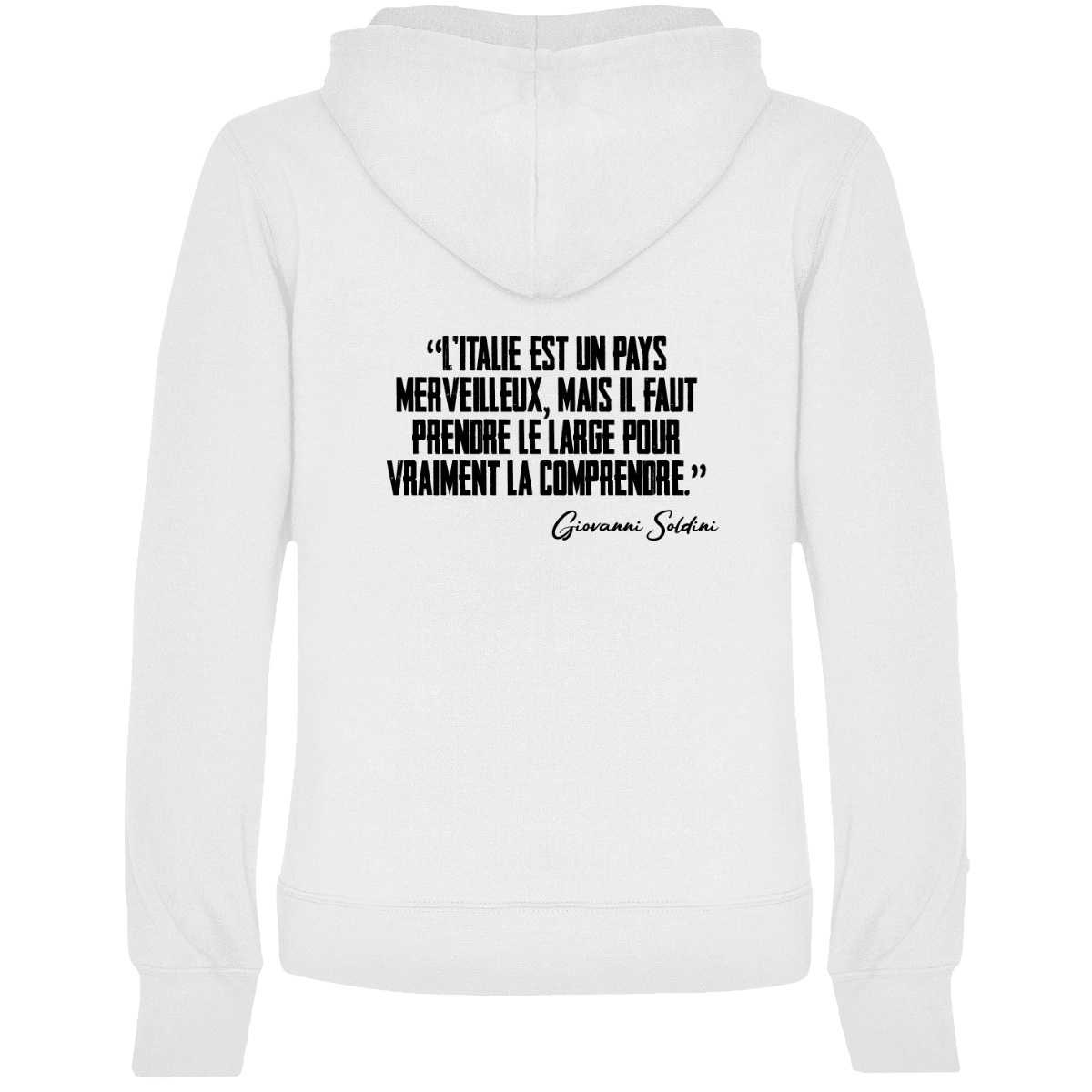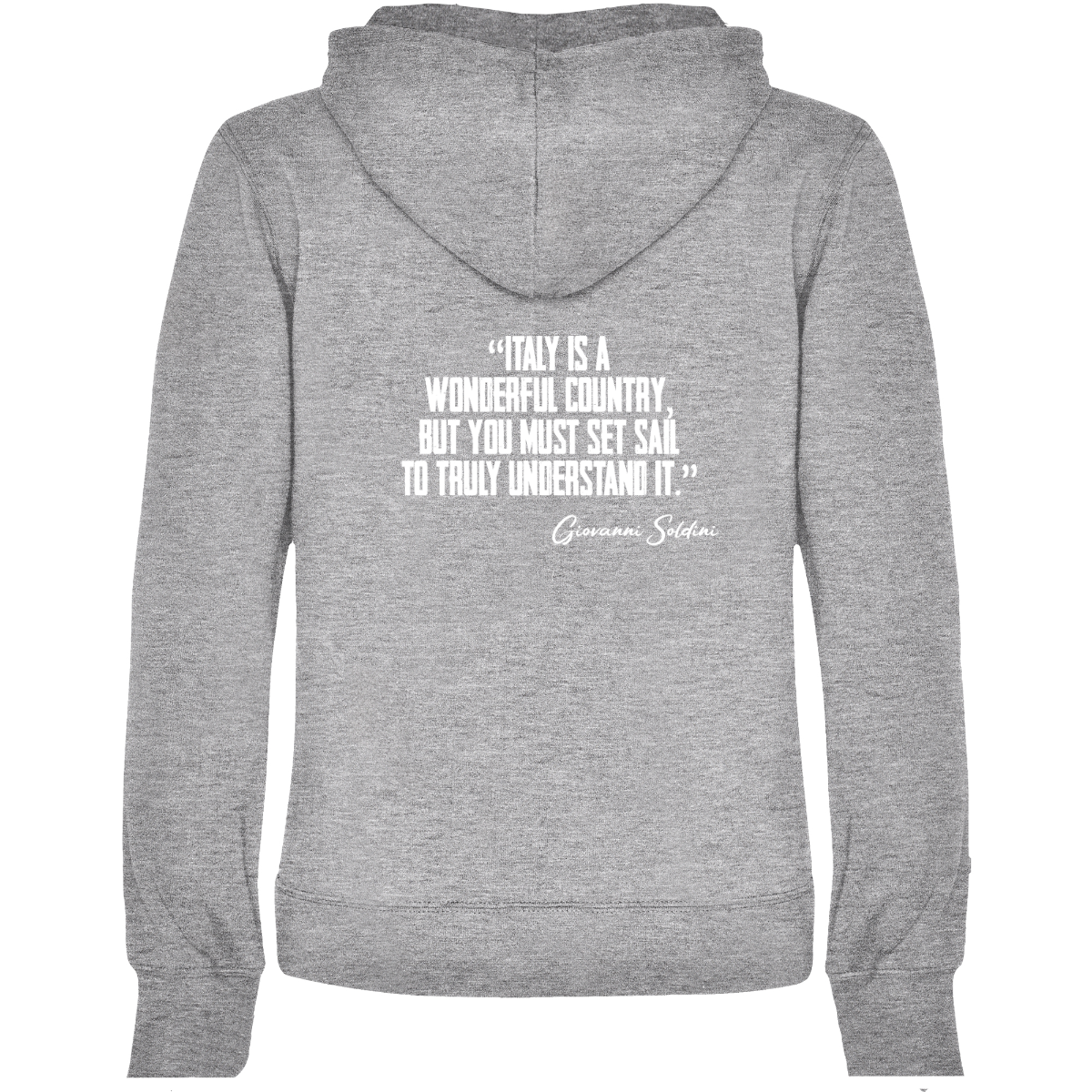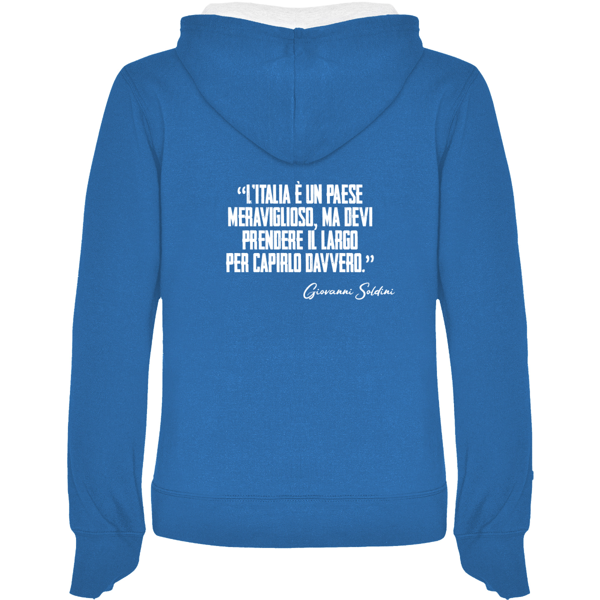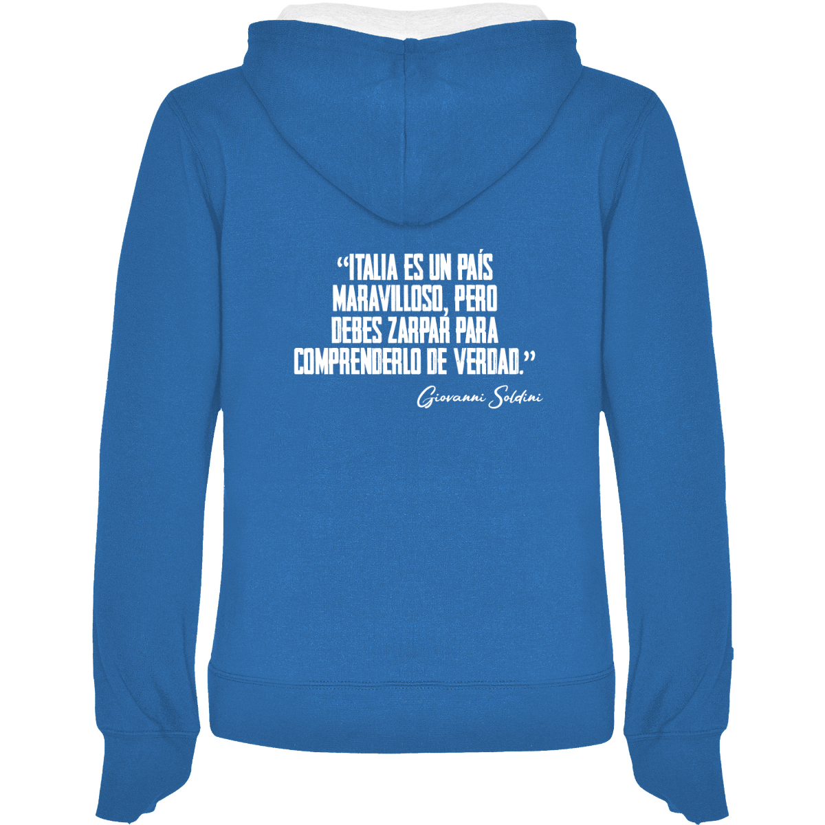 Felpa con cappuccio, anche  bicolore, tessuto doppio, con cordone regolabile. Tasca frontale. Costine 1x1 su polsini e girovita. 50% cotone / 50% poliestere, interno felpato, 280 g/m².