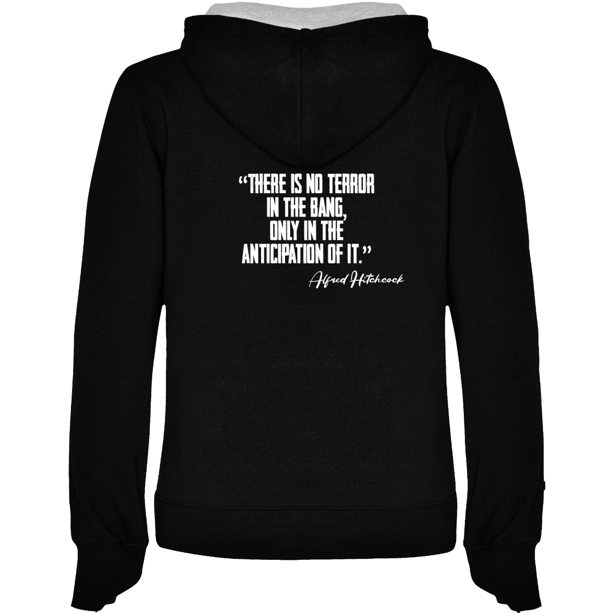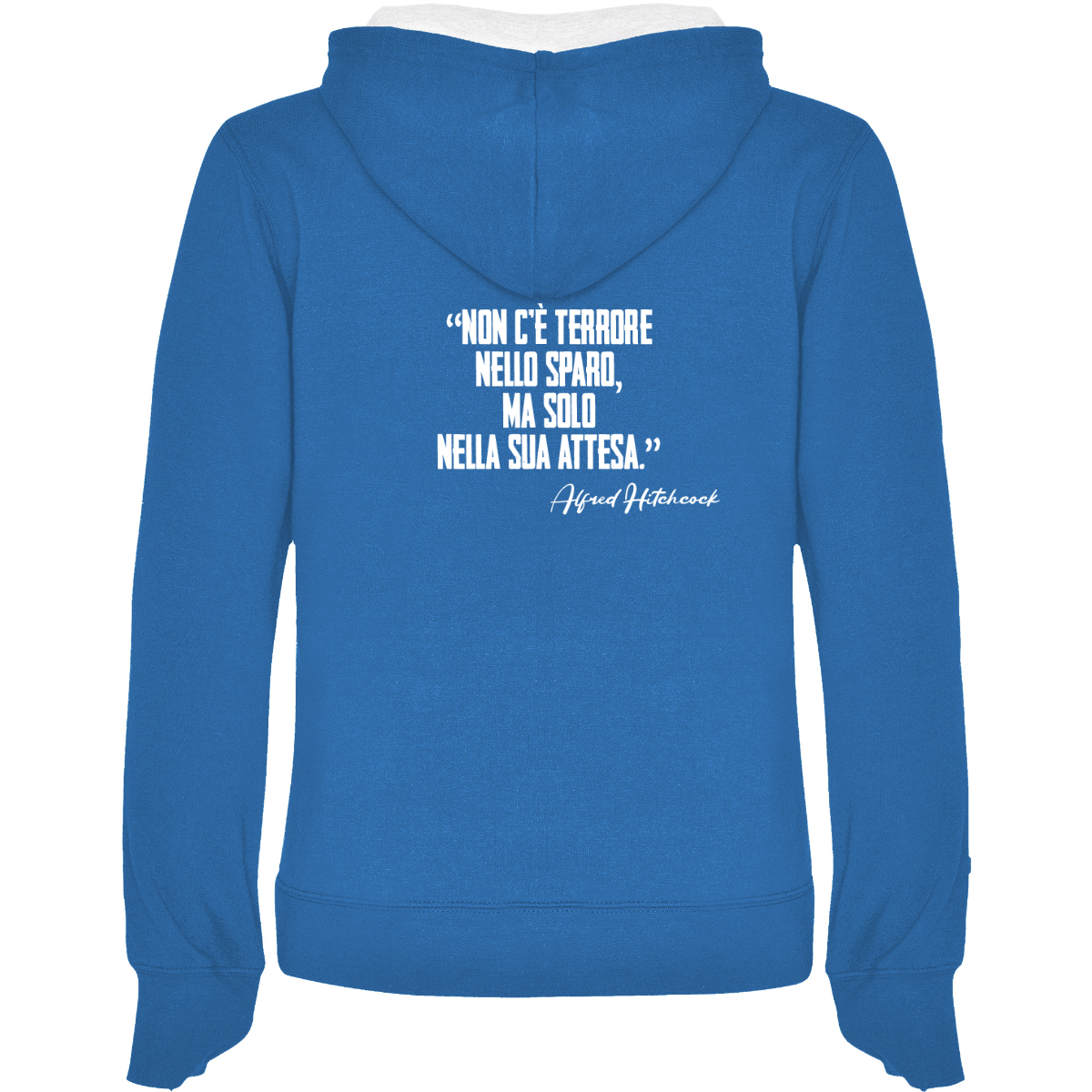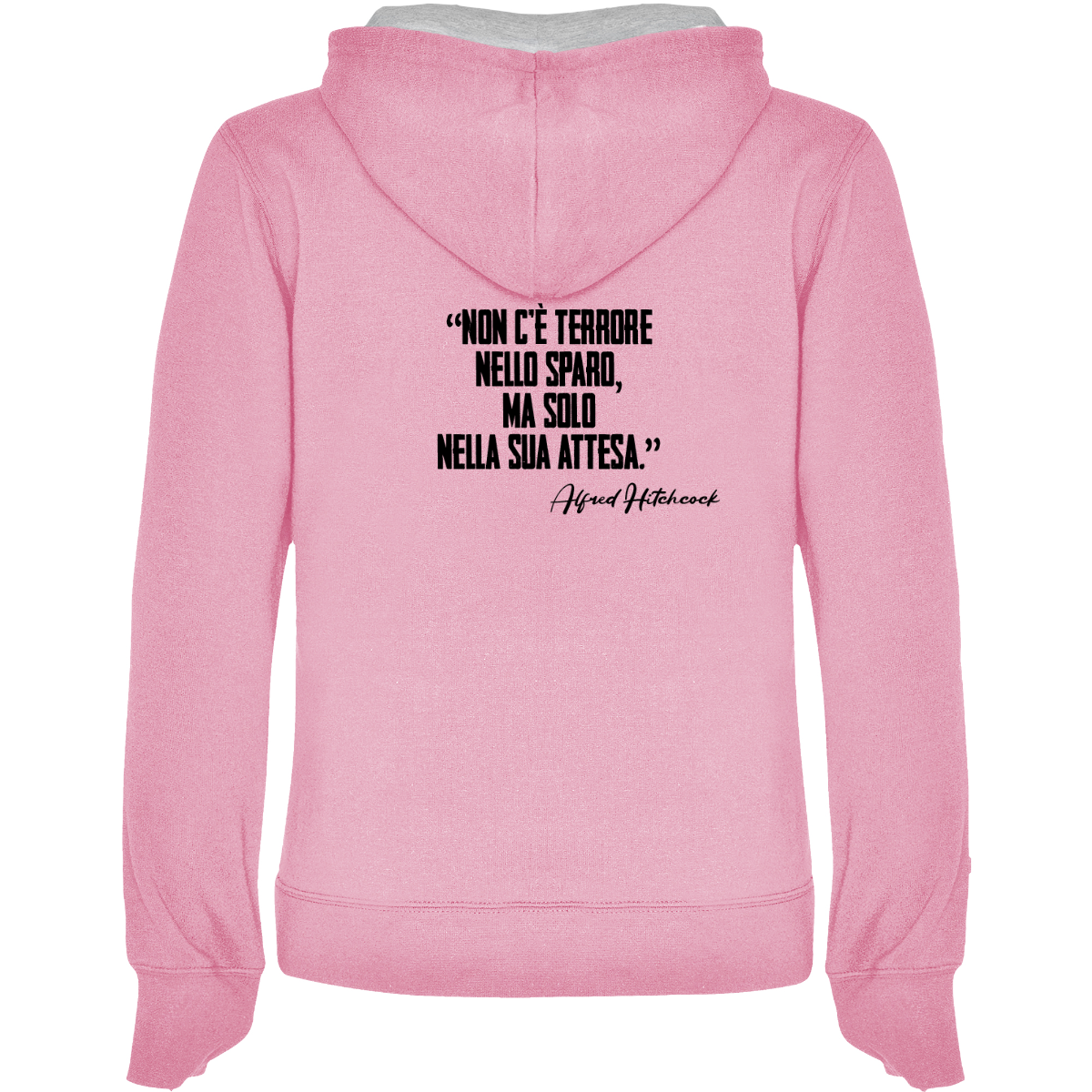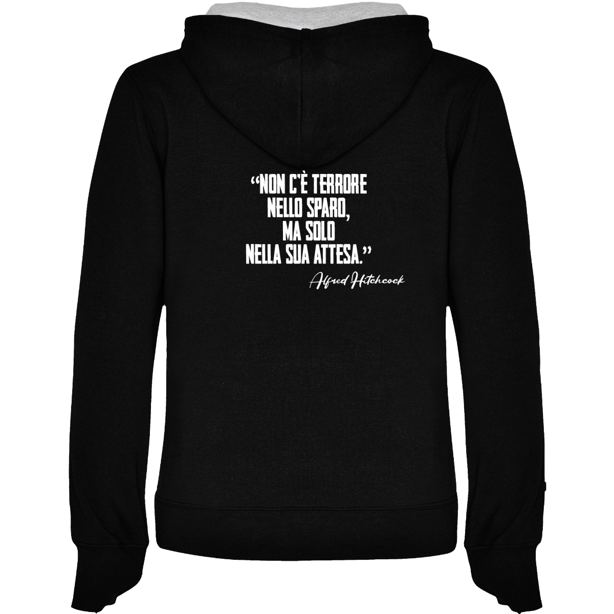 Felpa con cappuccio, anche  bicolore, tessuto doppio, con cordone regolabile. Tasca frontale. Costine 1x1 su polsini e girovita. 50% cotone / 50% poliestere, interno felpato, 280 g/m².