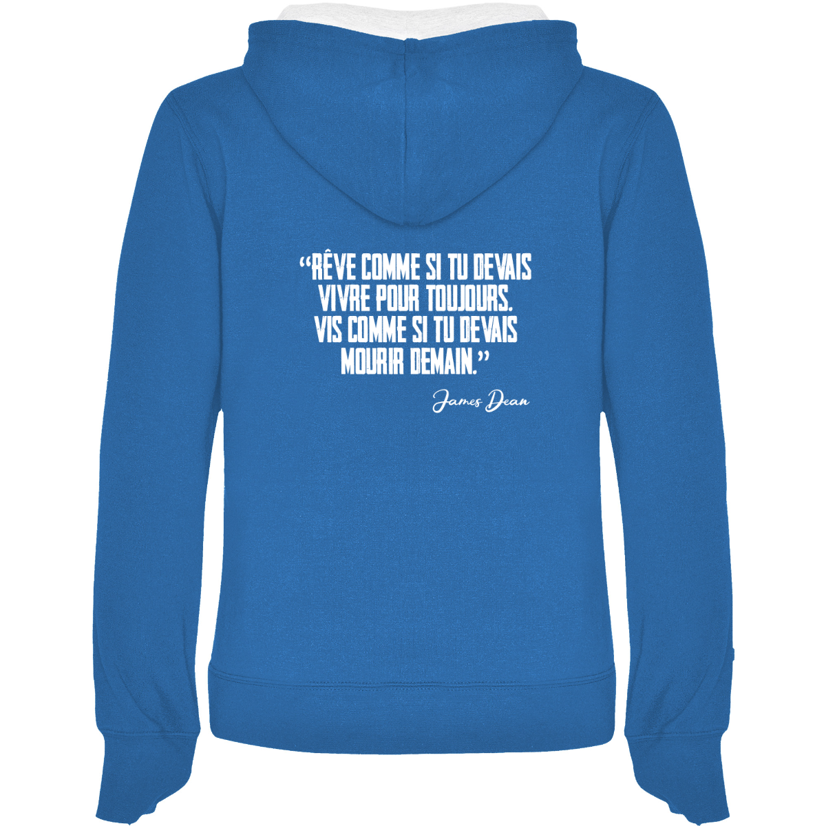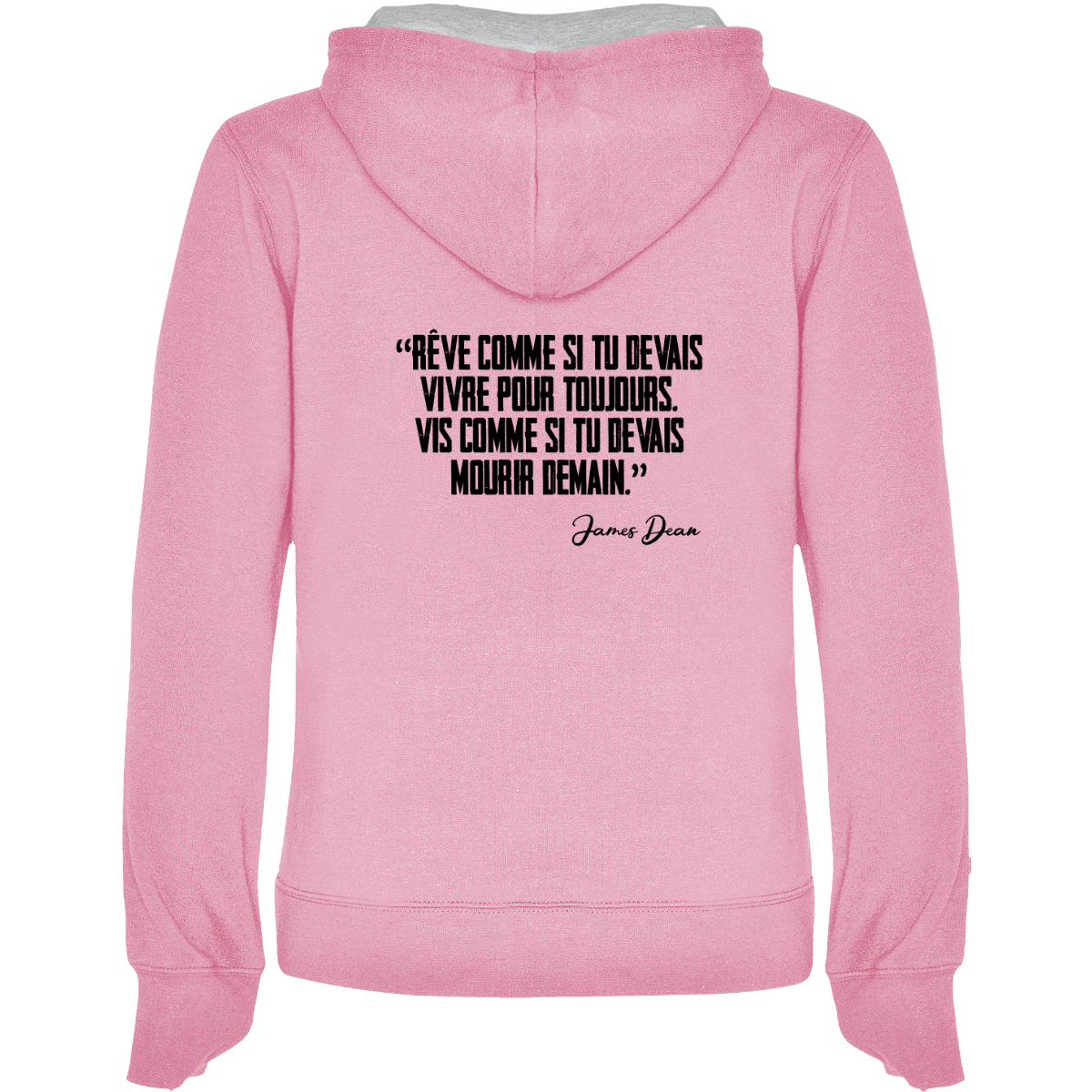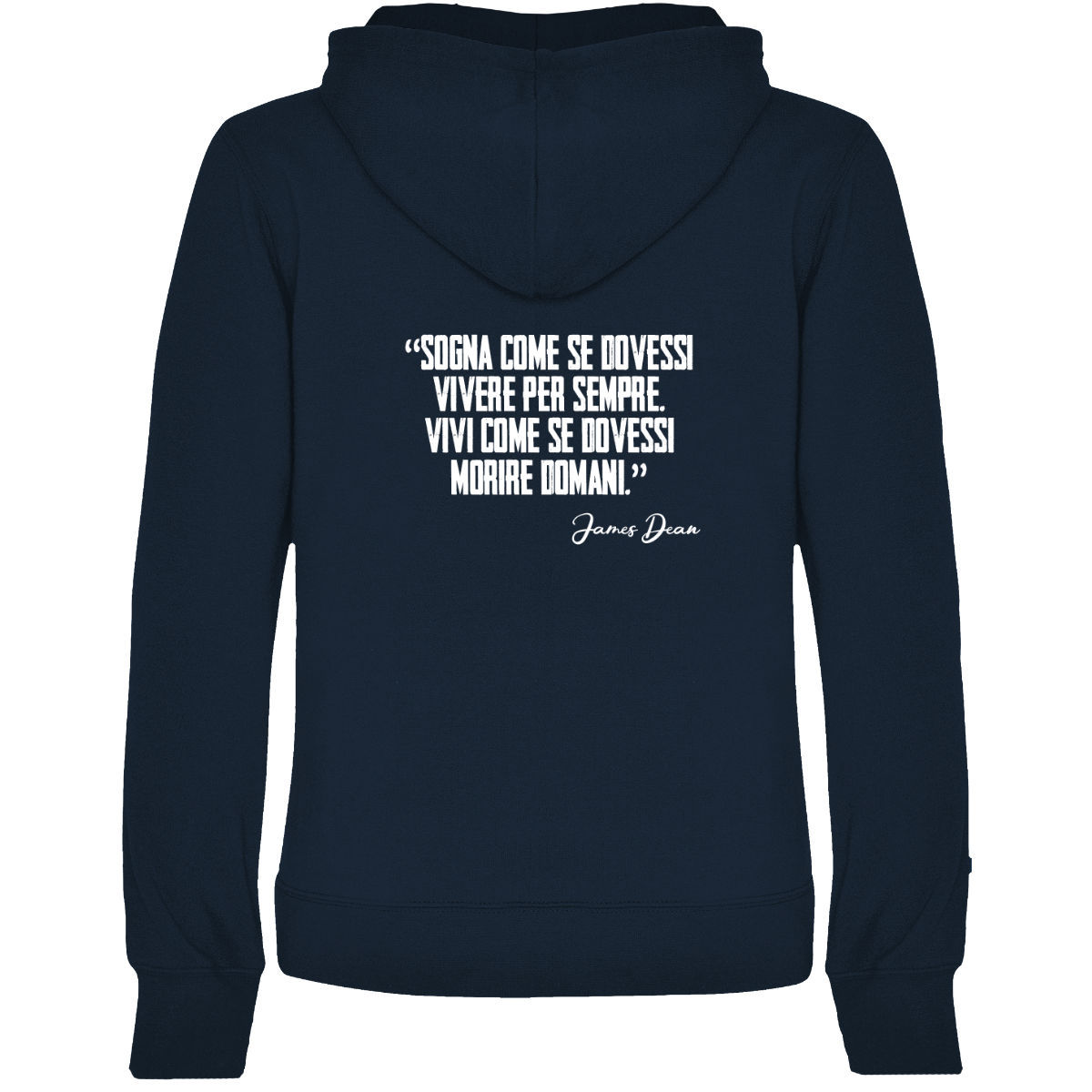 Felpa con cappuccio, anche  bicolore, tessuto doppio, con cordone regolabile. Tasca frontale. Costine 1x1 su polsini e girovita. 50% cotone / 50% poliestere, interno felpato, 280 g/m².
