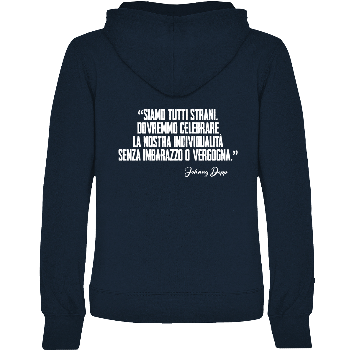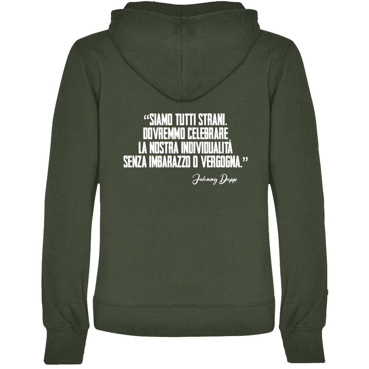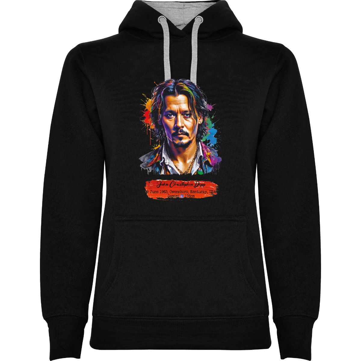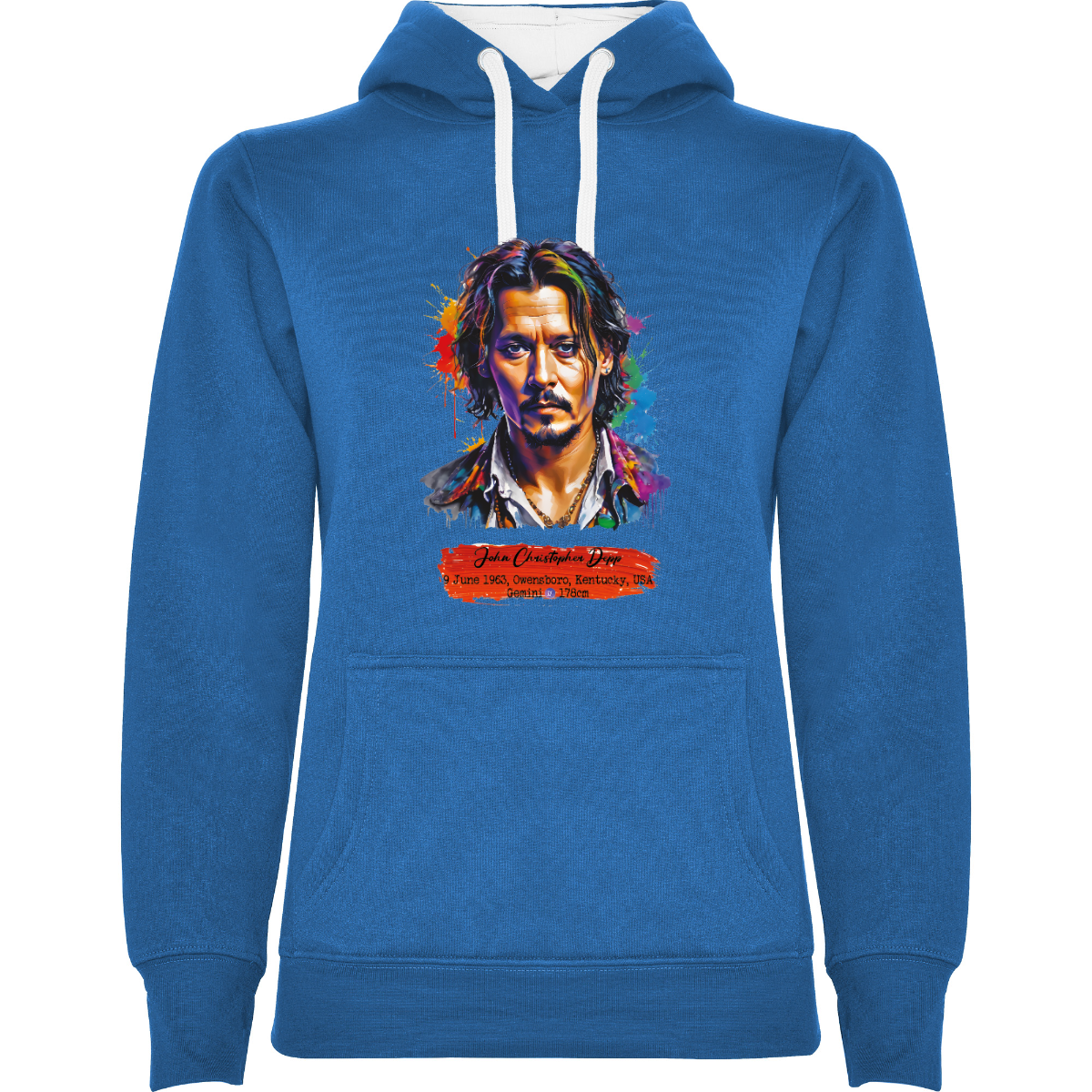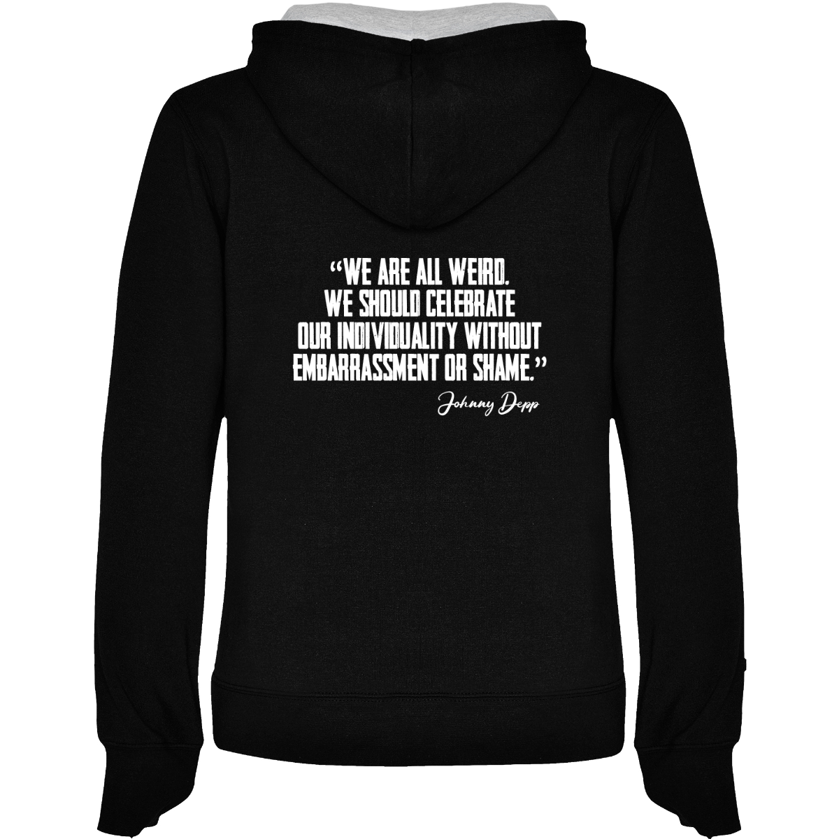 Felpa con cappuccio, anche  bicolore, tessuto doppio, con cordone regolabile. Tasca frontale. Costine 1x1 su polsini e girovita. 50% cotone / 50% poliestere, interno felpato, 280 g/m².