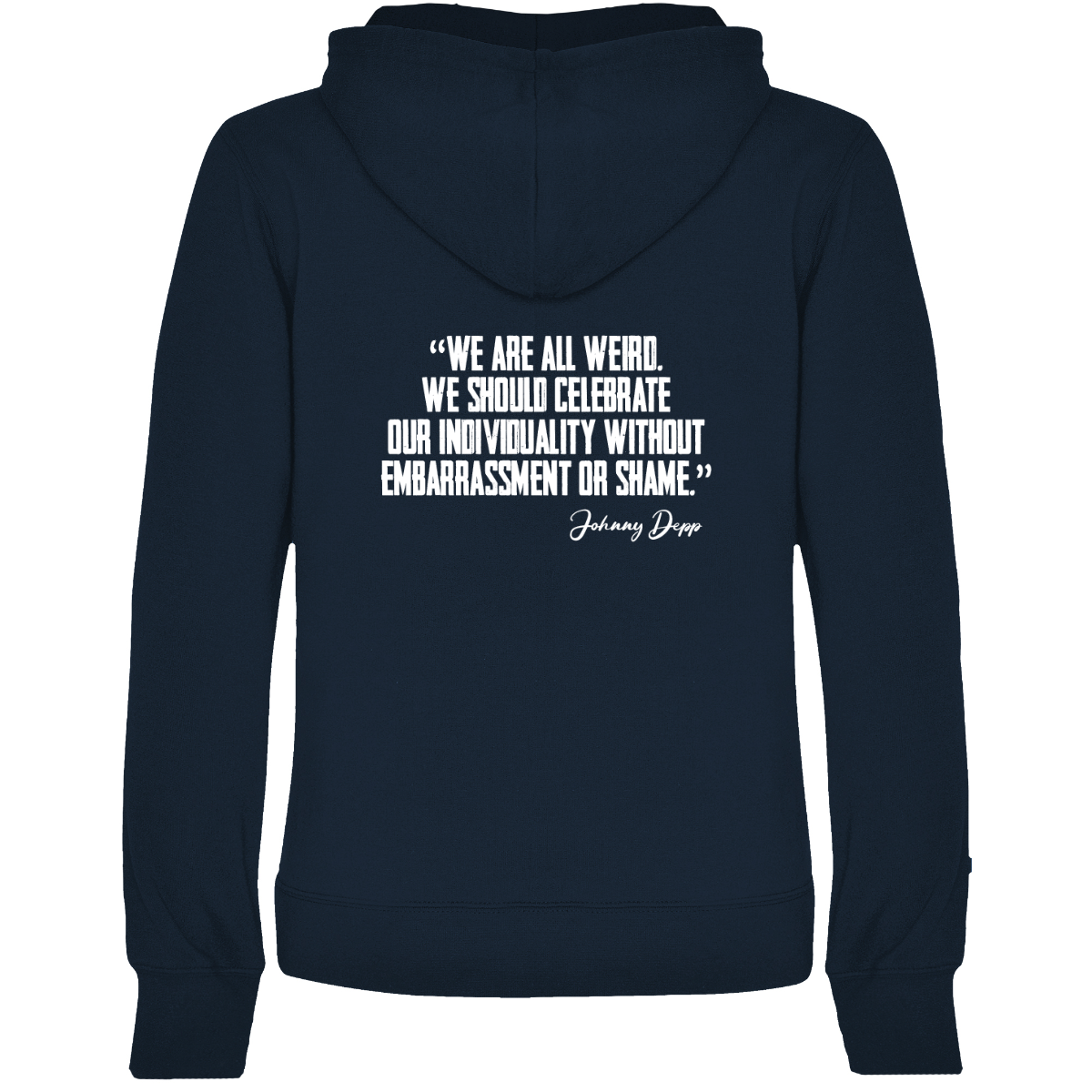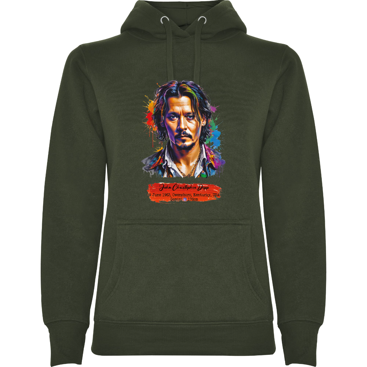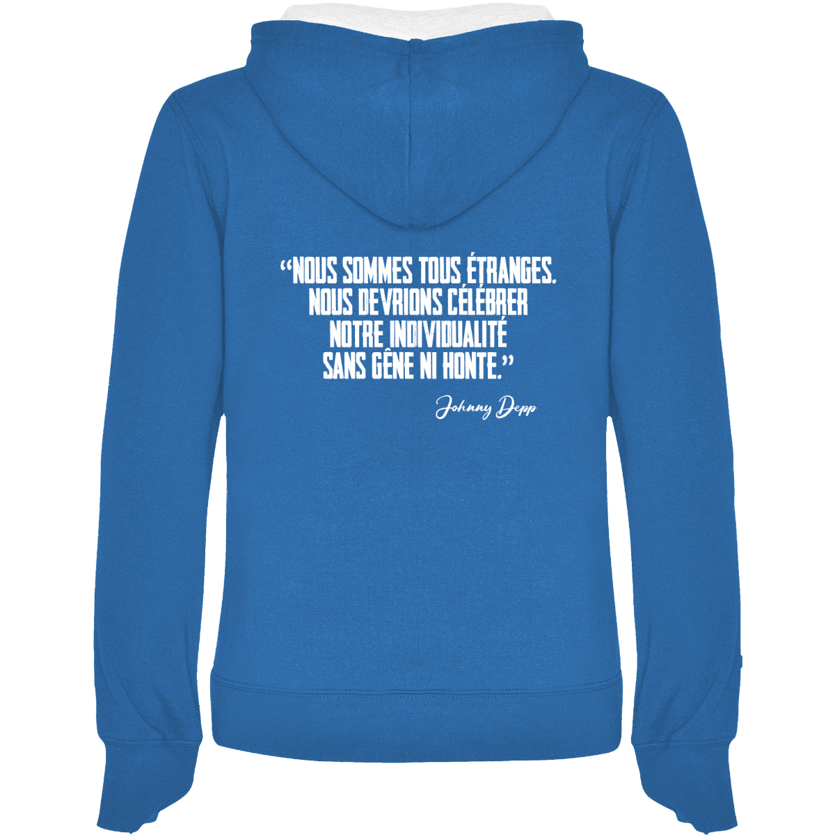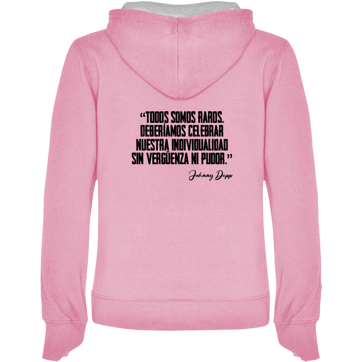 Felpa con cappuccio, anche  bicolore, tessuto doppio, con cordone regolabile. Tasca frontale. Costine 1x1 su polsini e girovita. 50% cotone / 50% poliestere, interno felpato, 280 g/m².