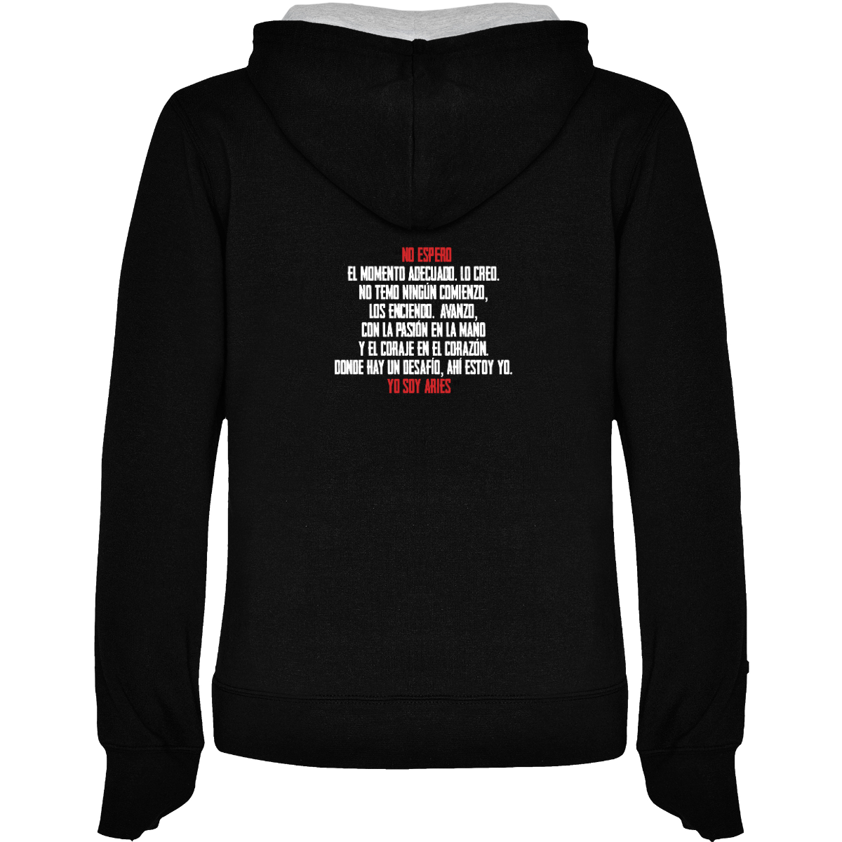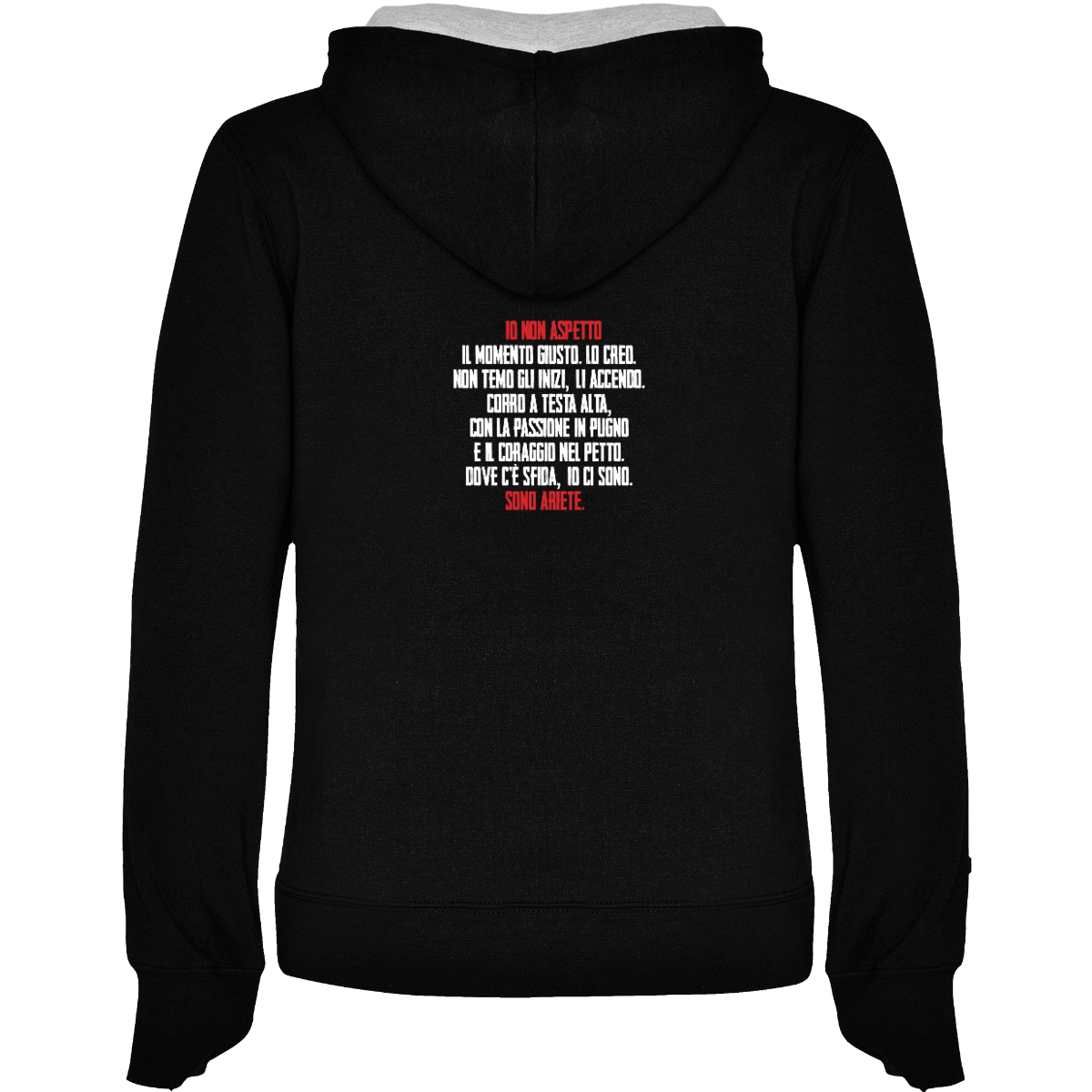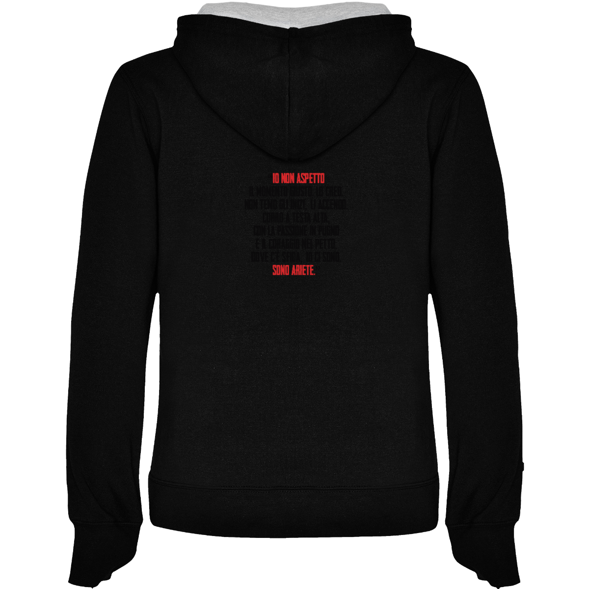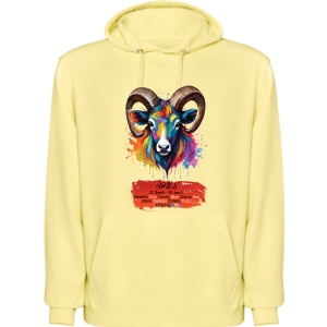 Hooded sweatshirt, also available in two-tone, double fabric, with adjustable drawstring. Front pocket. 1x1 ribbed cuffs and waistband. 50% cotton / 50% polyester, brushed interior, 280 gsm.
