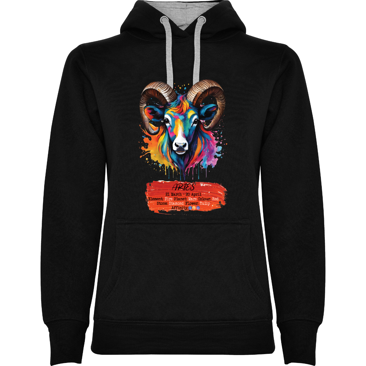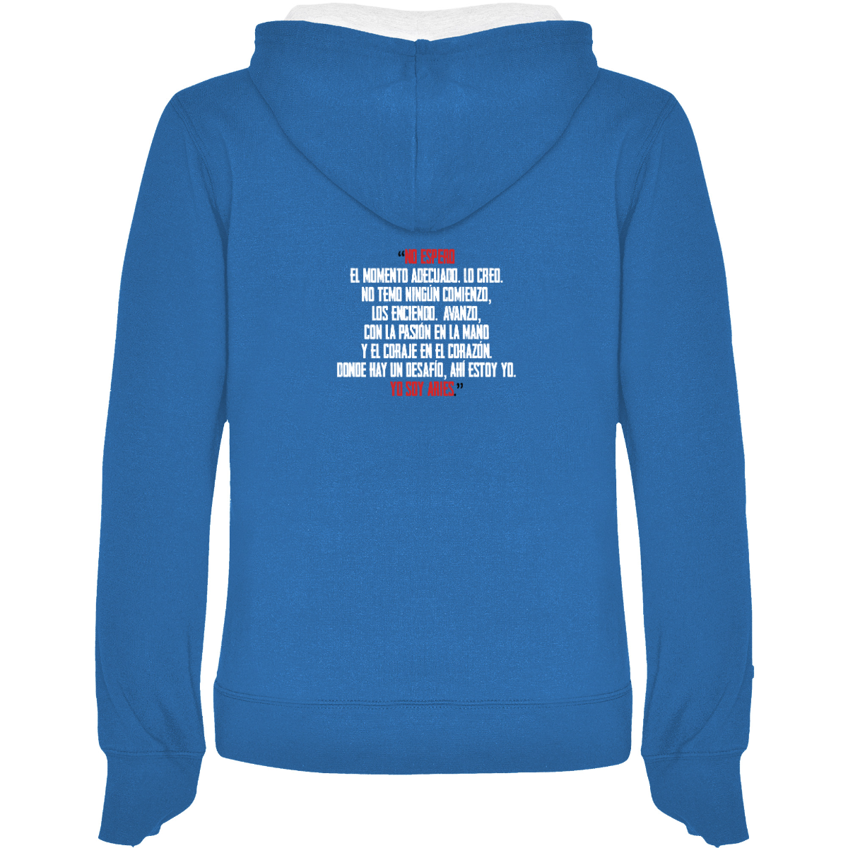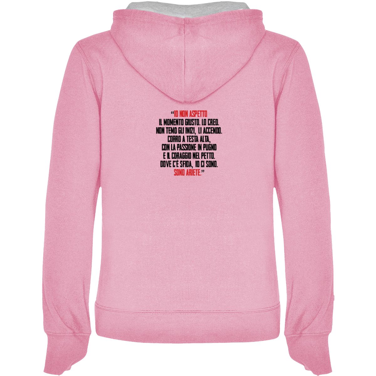 Hooded sweatshirt, also available in two-tone, double fabric, with adjustable drawstring. Front pocket. 1x1 ribbed cuffs and waistband. 50% cotton / 50% polyester, brushed interior, 280 gsm.