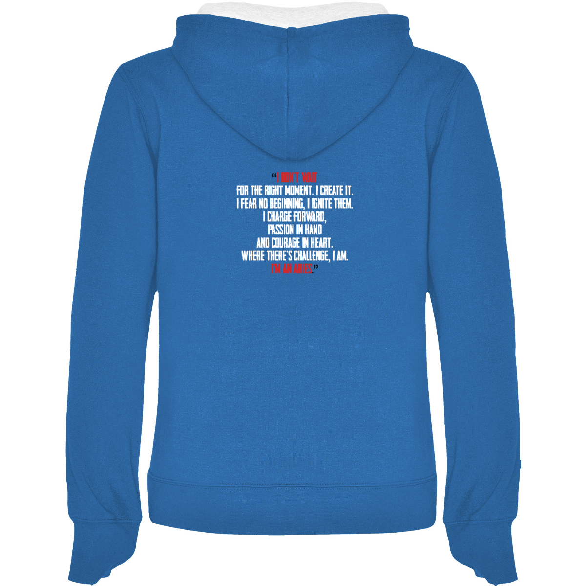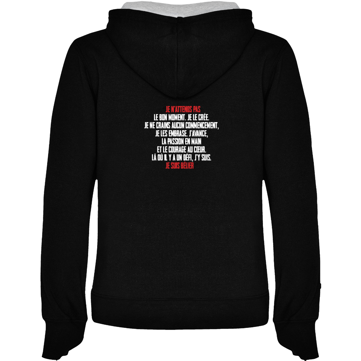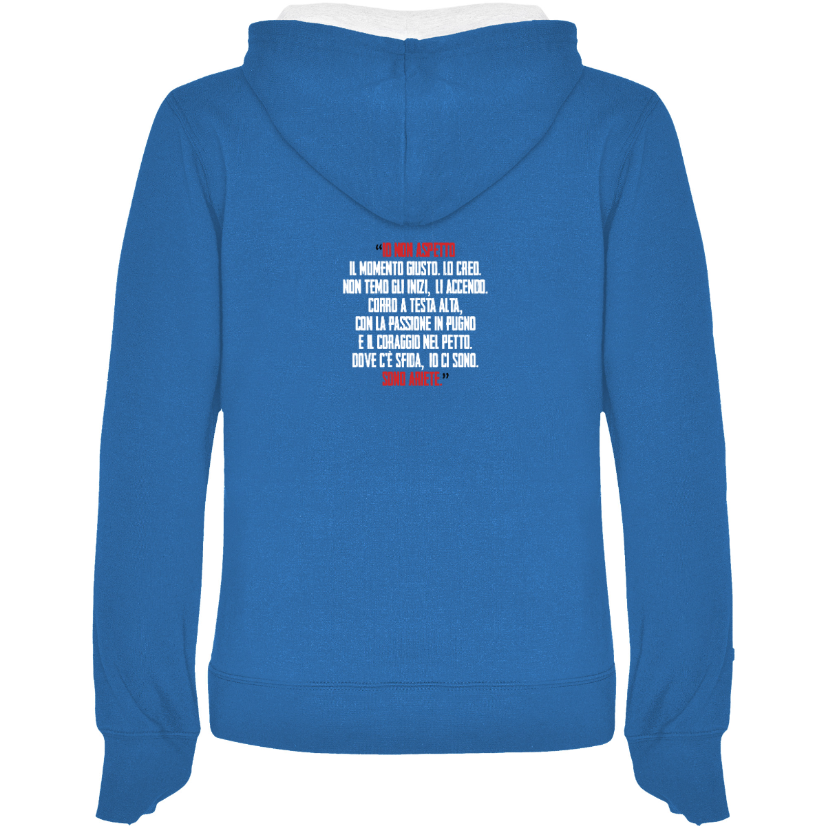 Felpa con cappuccio, anche  bicolore, tessuto doppio, con cordone regolabile. Tasca frontale. Costine 1x1 su polsini e girovita. 50% cotone / 50% poliestere, interno felpato, 280 g/m².