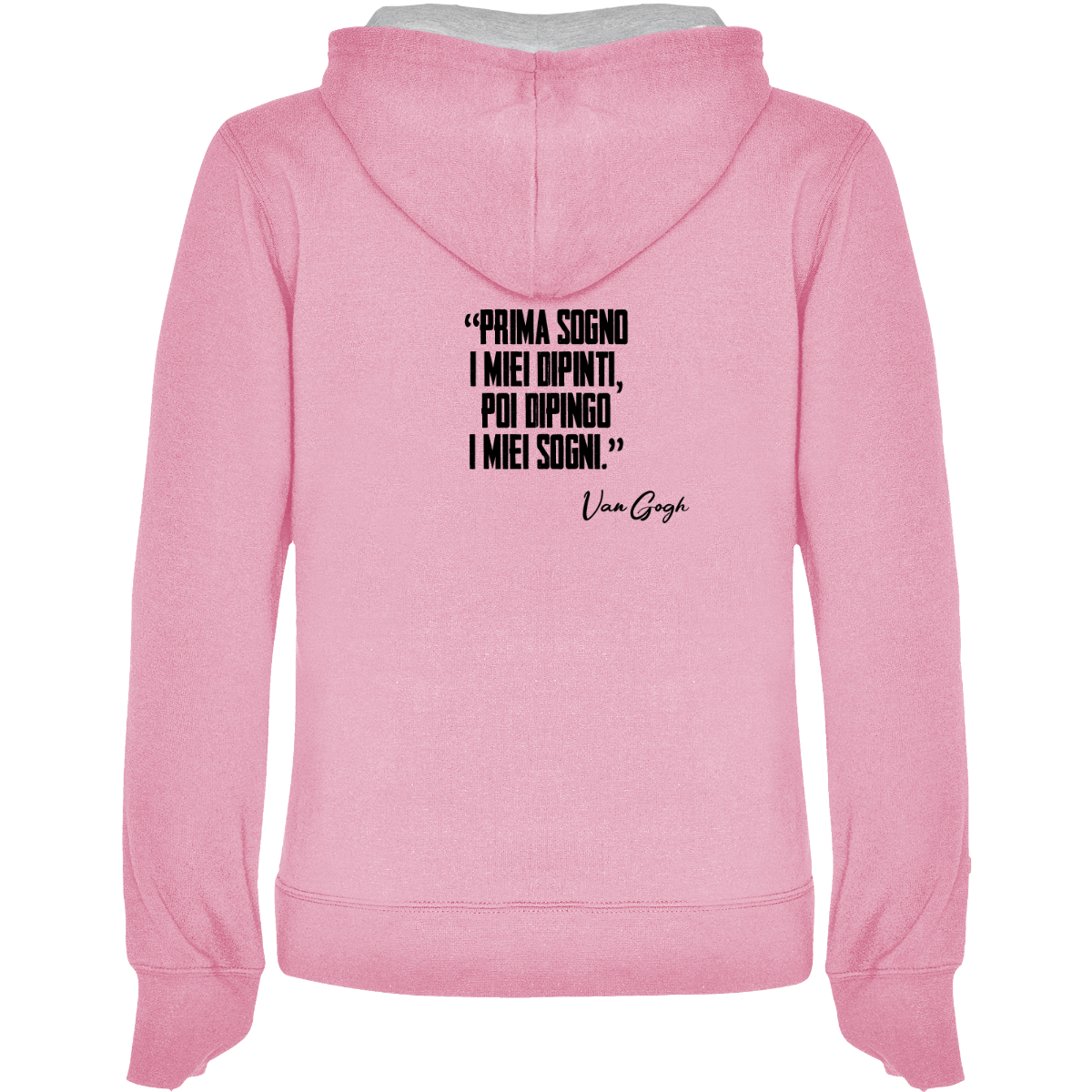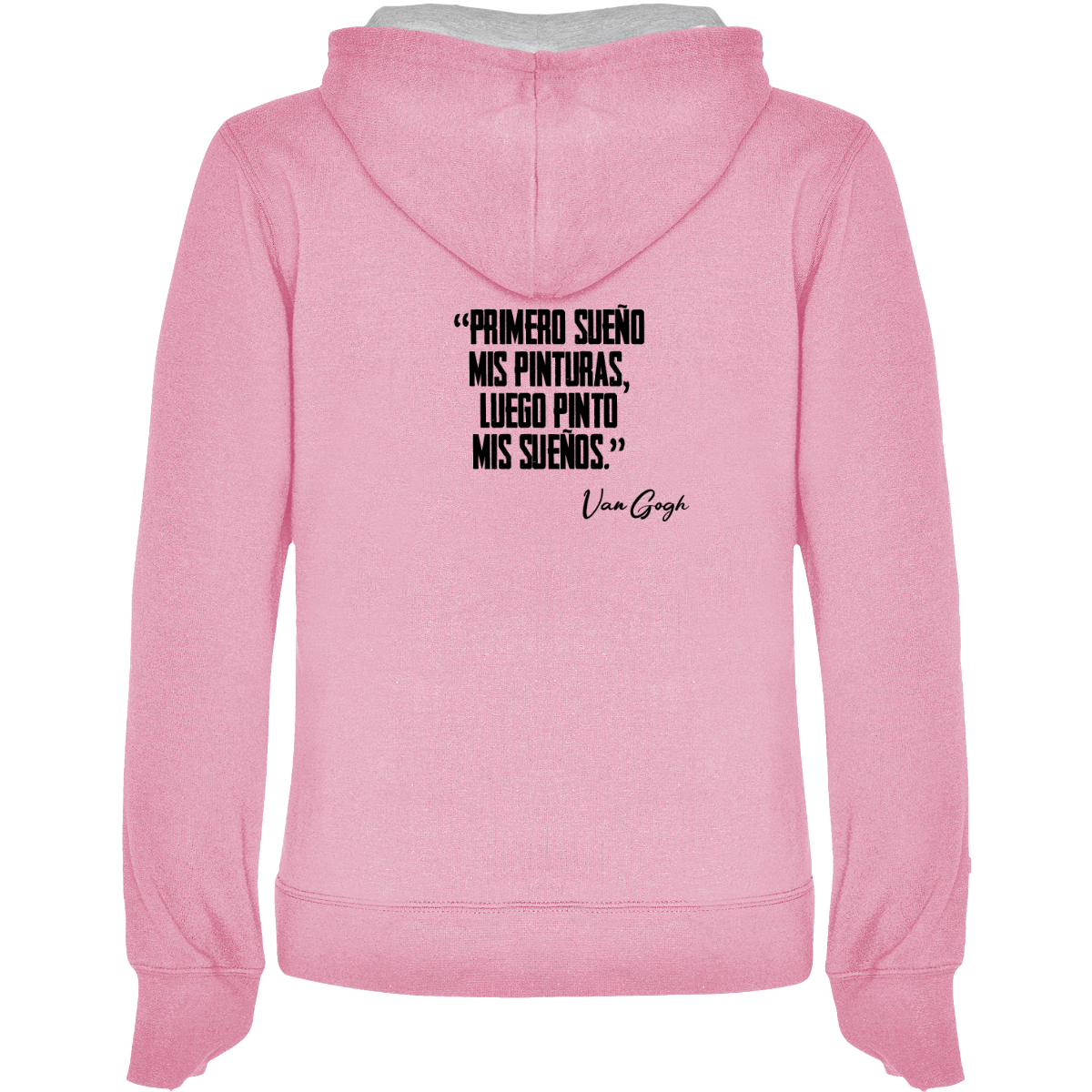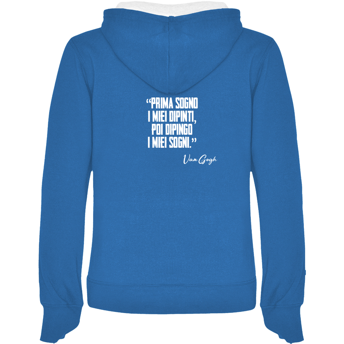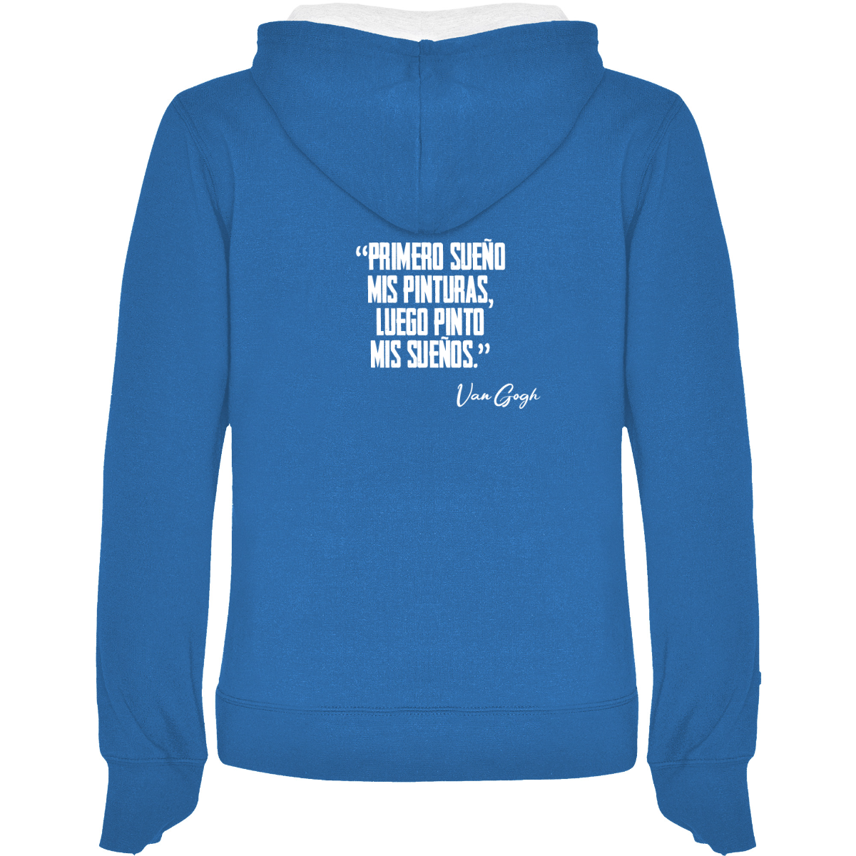 Hooded sweatshirt, also available in two-tone, double fabric, with adjustable drawstring. Front pocket. 1x1 ribbed cuffs and waistband. 50% cotton / 50% polyester, brushed interior, 280 gsm.