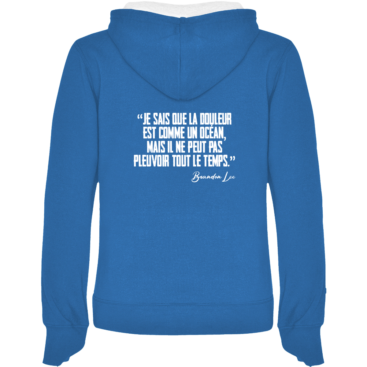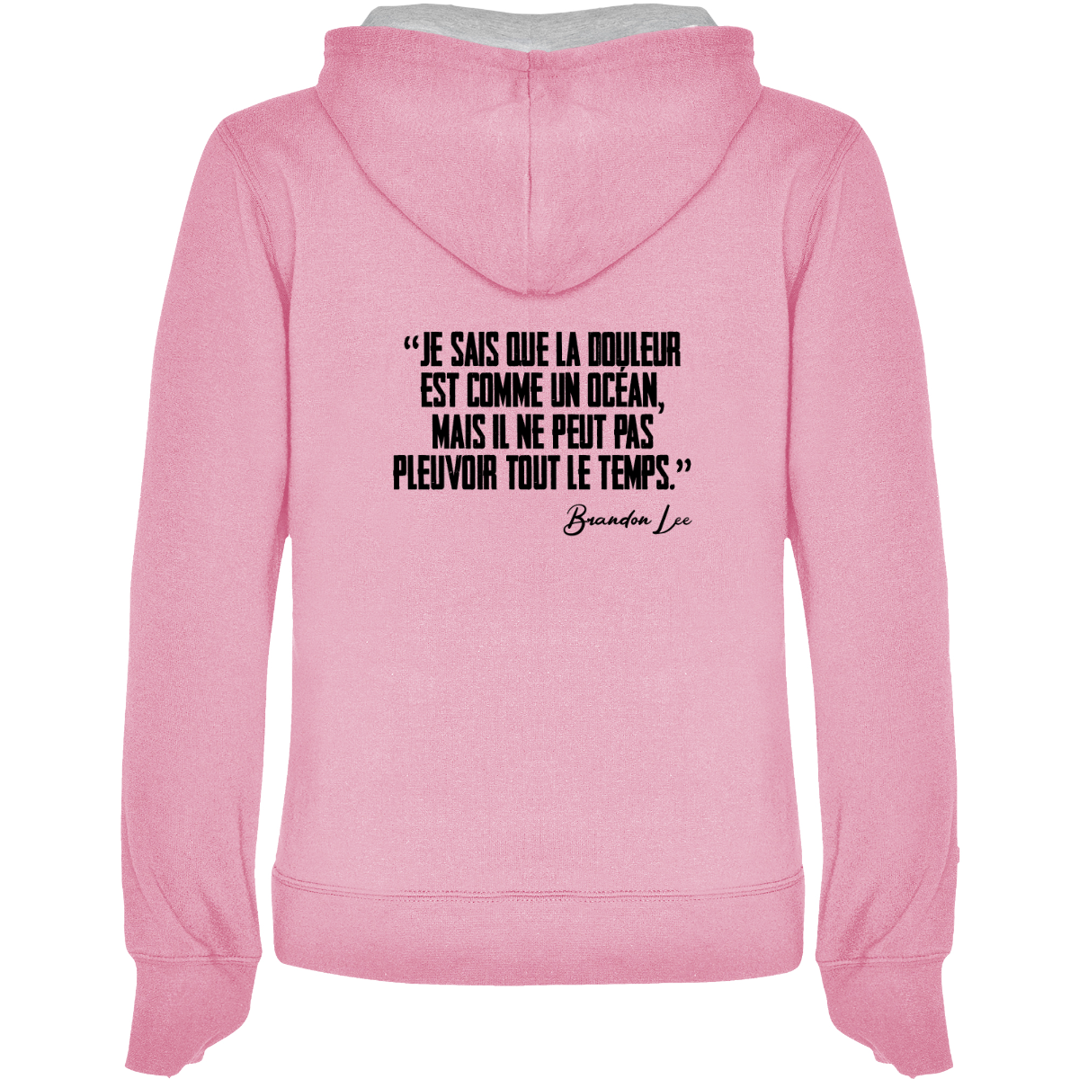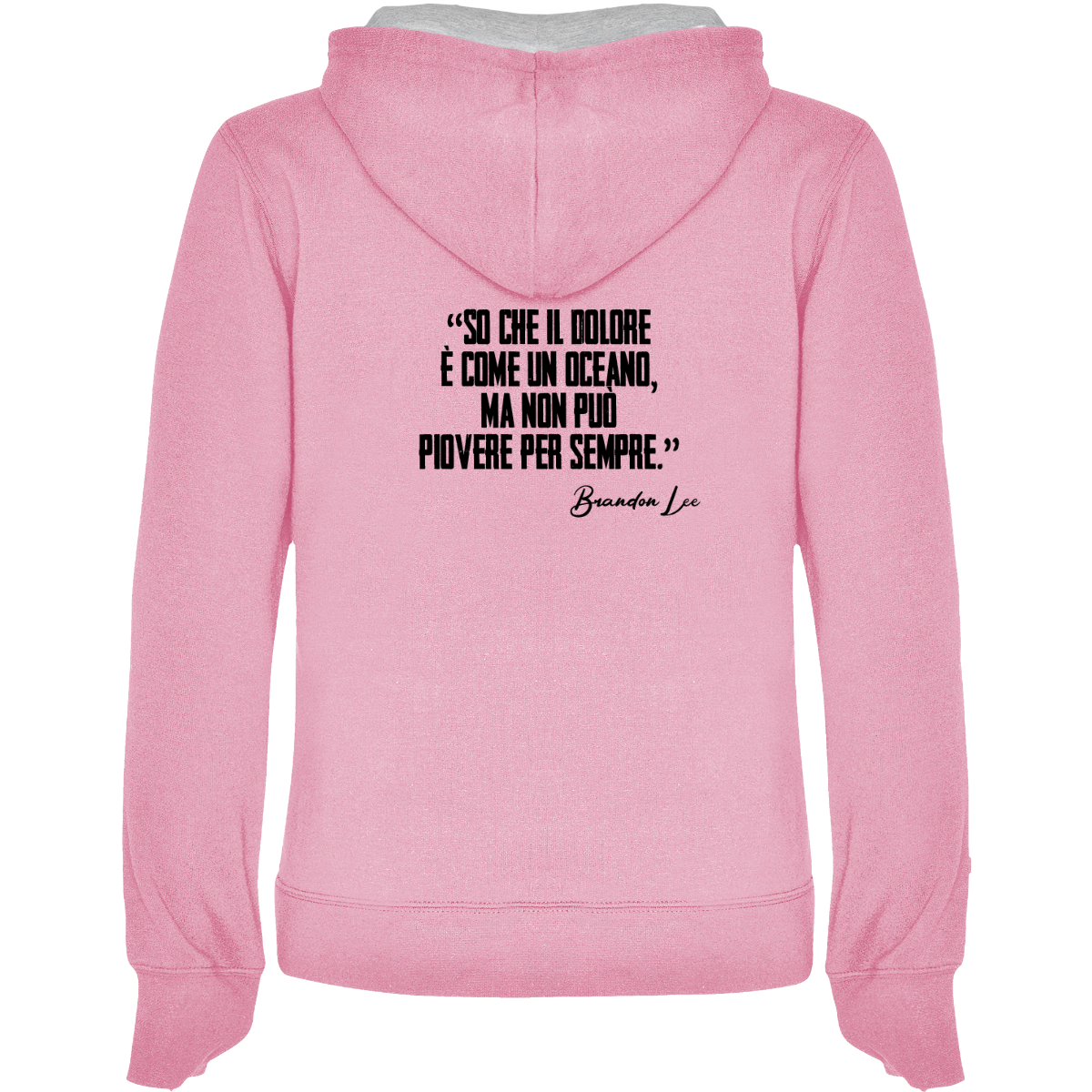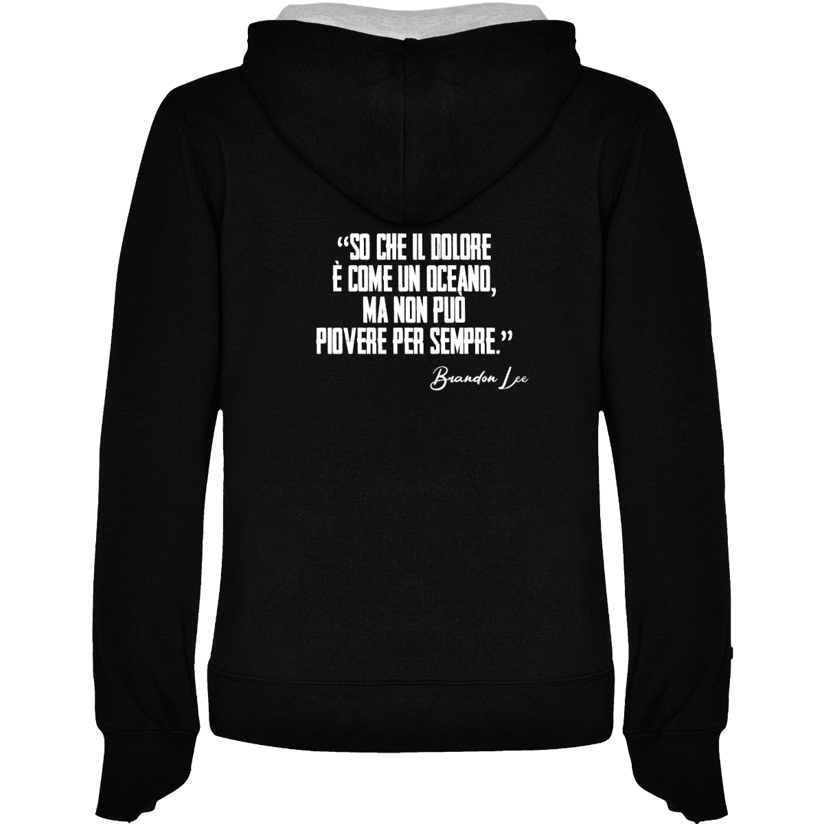 Felpa con cappuccio, anche  bicolore, tessuto doppio, con cordone regolabile. Tasca frontale. Costine 1x1 su polsini e girovita. 50% cotone / 50% poliestere, interno felpato, 280 g/m².