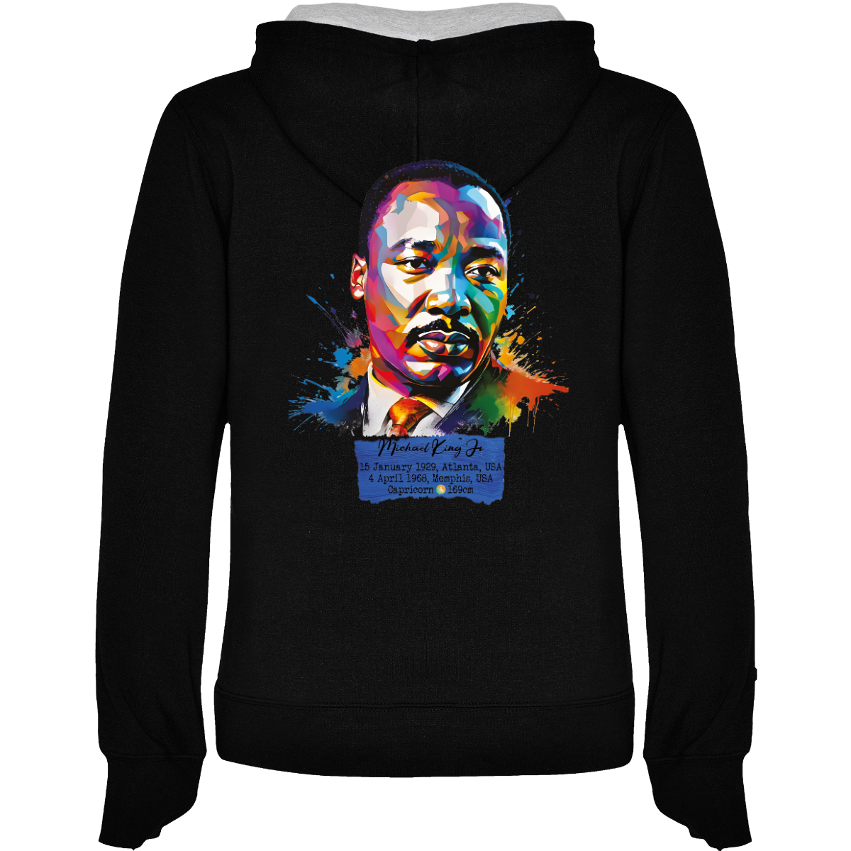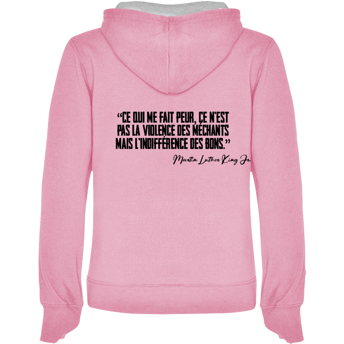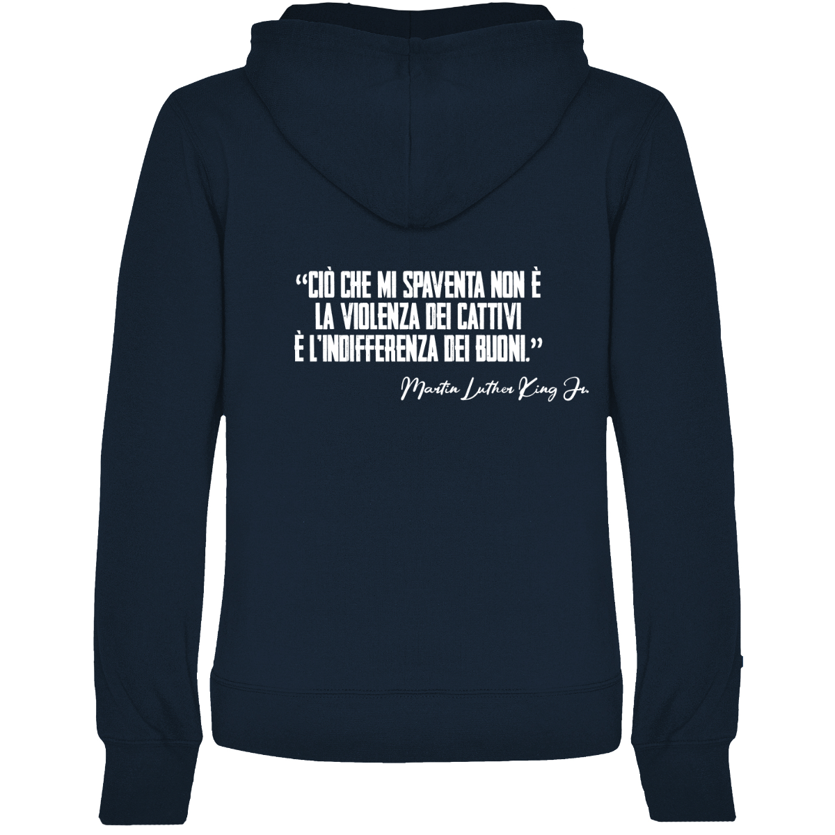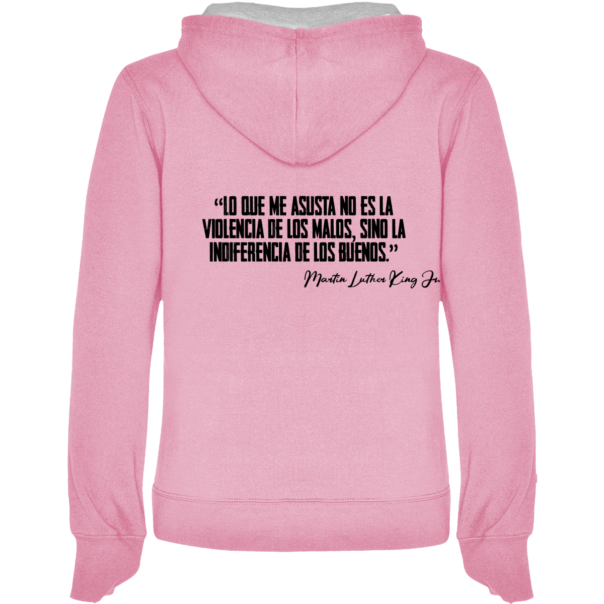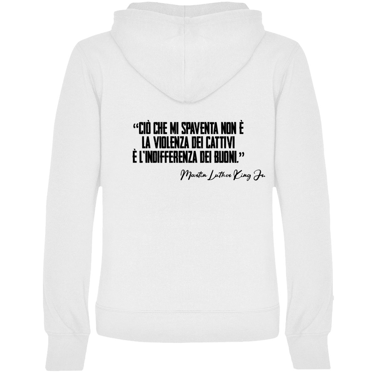 Felpa con cappuccio, anche  bicolore, tessuto doppio, con cordone regolabile. Tasca frontale. Costine 1x1 su polsini e girovita. 50% cotone / 50% poliestere, interno felpato, 280 g/m².