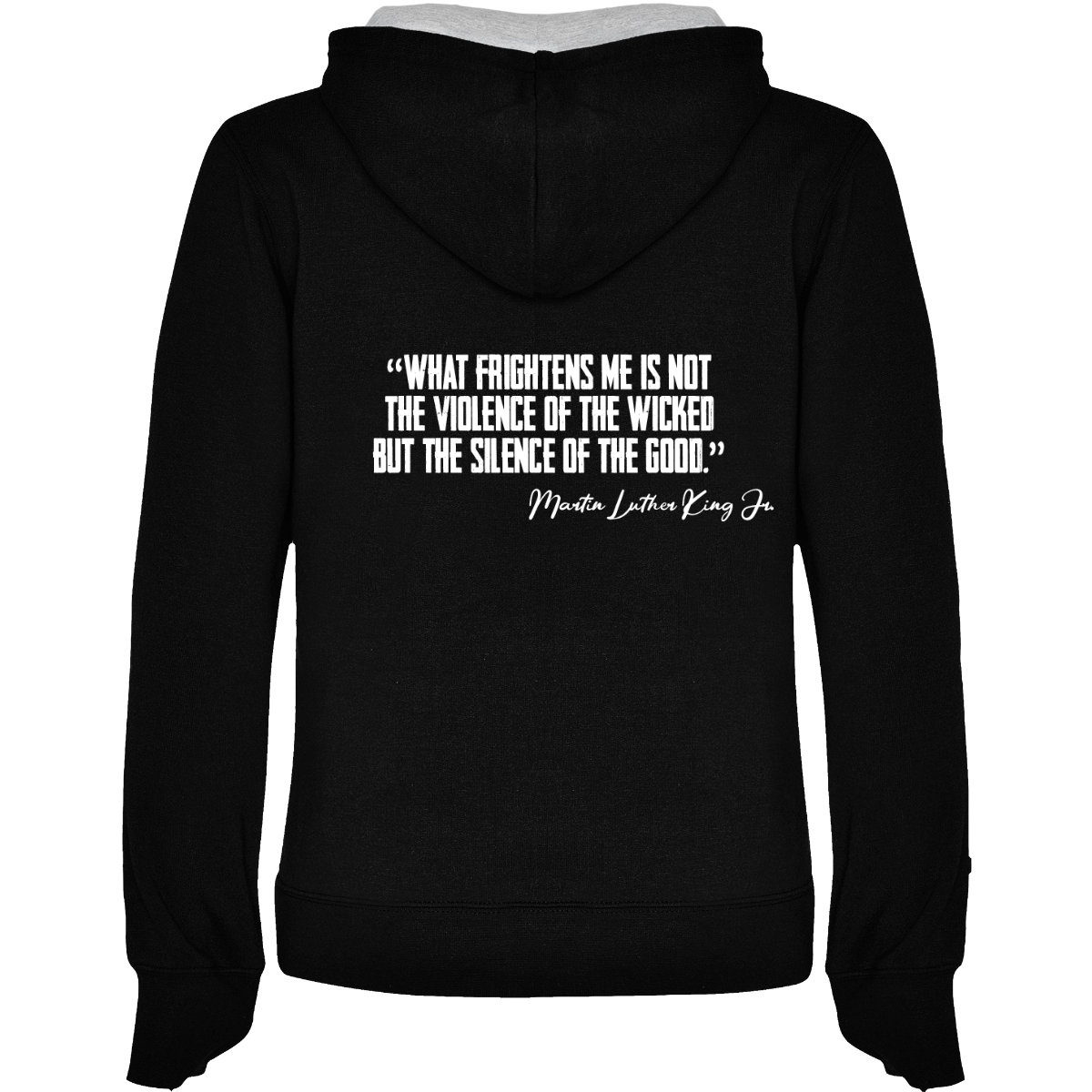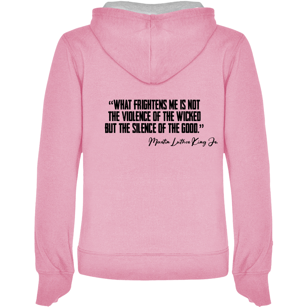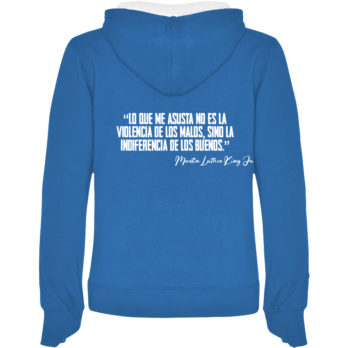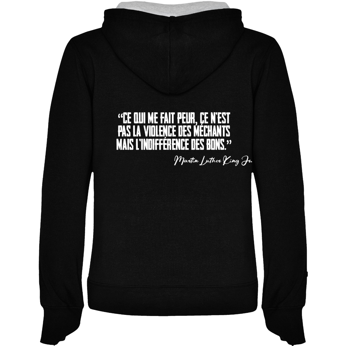 Felpa con cappuccio, anche  bicolore, tessuto doppio, con cordone regolabile. Tasca frontale. Costine 1x1 su polsini e girovita. 50% cotone / 50% poliestere, interno felpato, 280 g/m².
