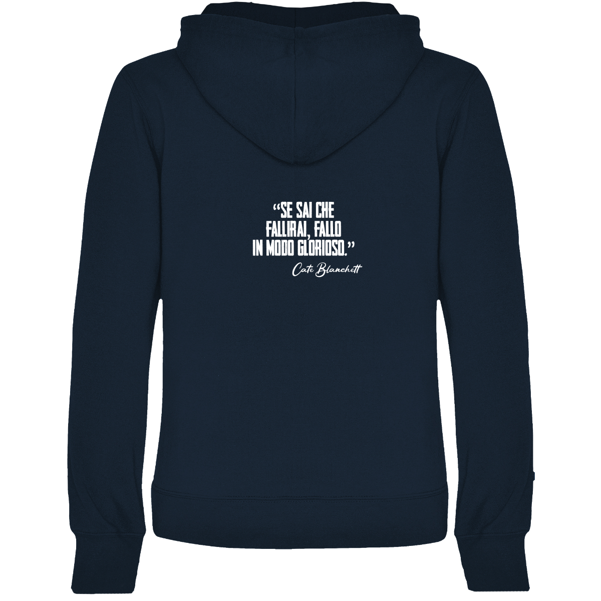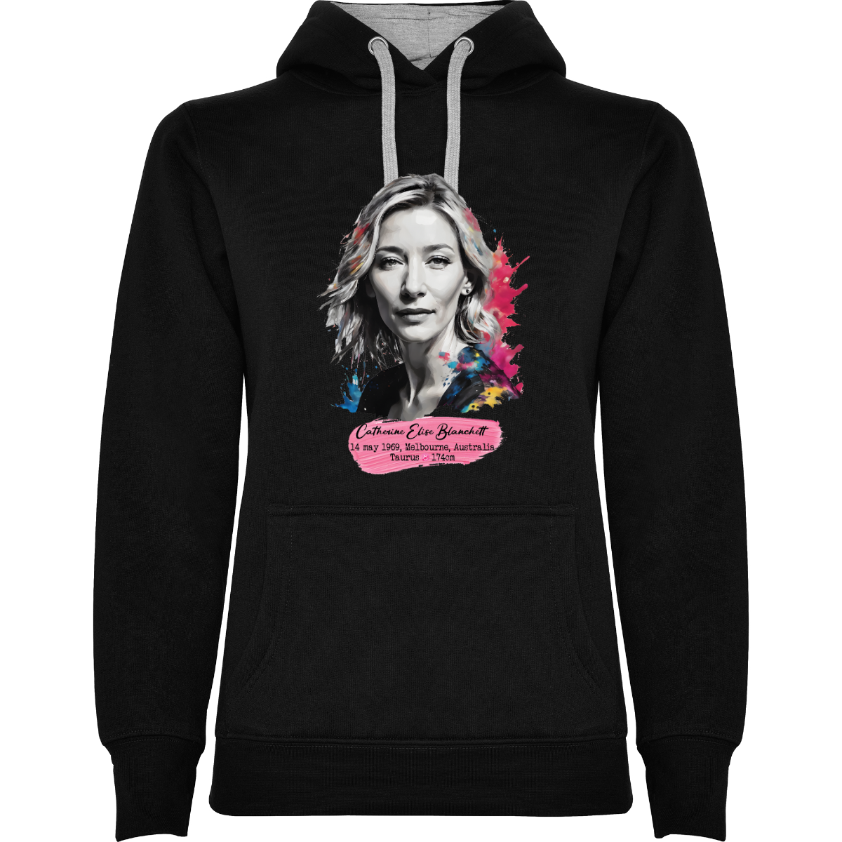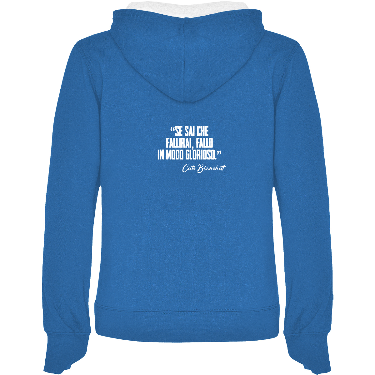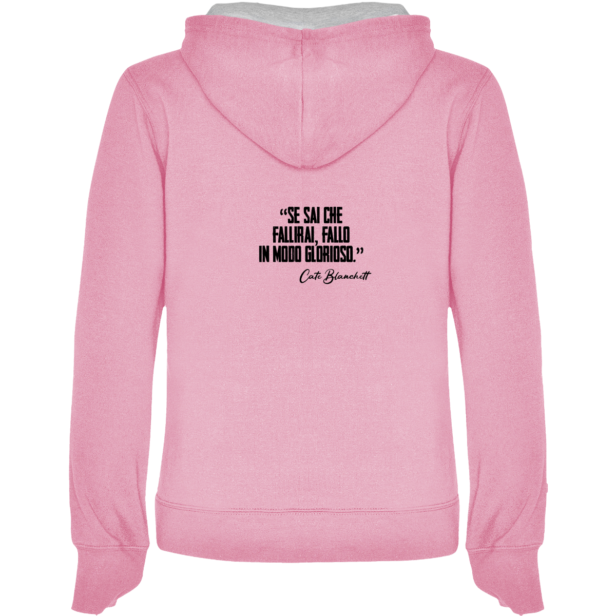 Felpa con cappuccio, anche  bicolore, tessuto doppio, con cordone regolabile. Tasca frontale. Costine 1x1 su polsini e girovita. 50% cotone / 50% poliestere, interno felpato, 280 g/m².