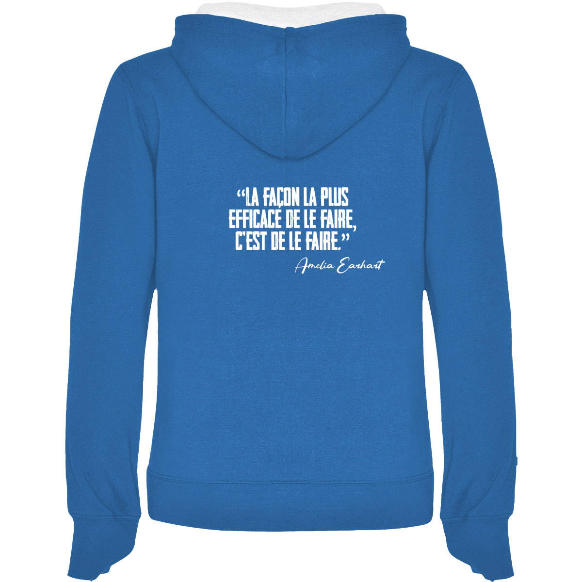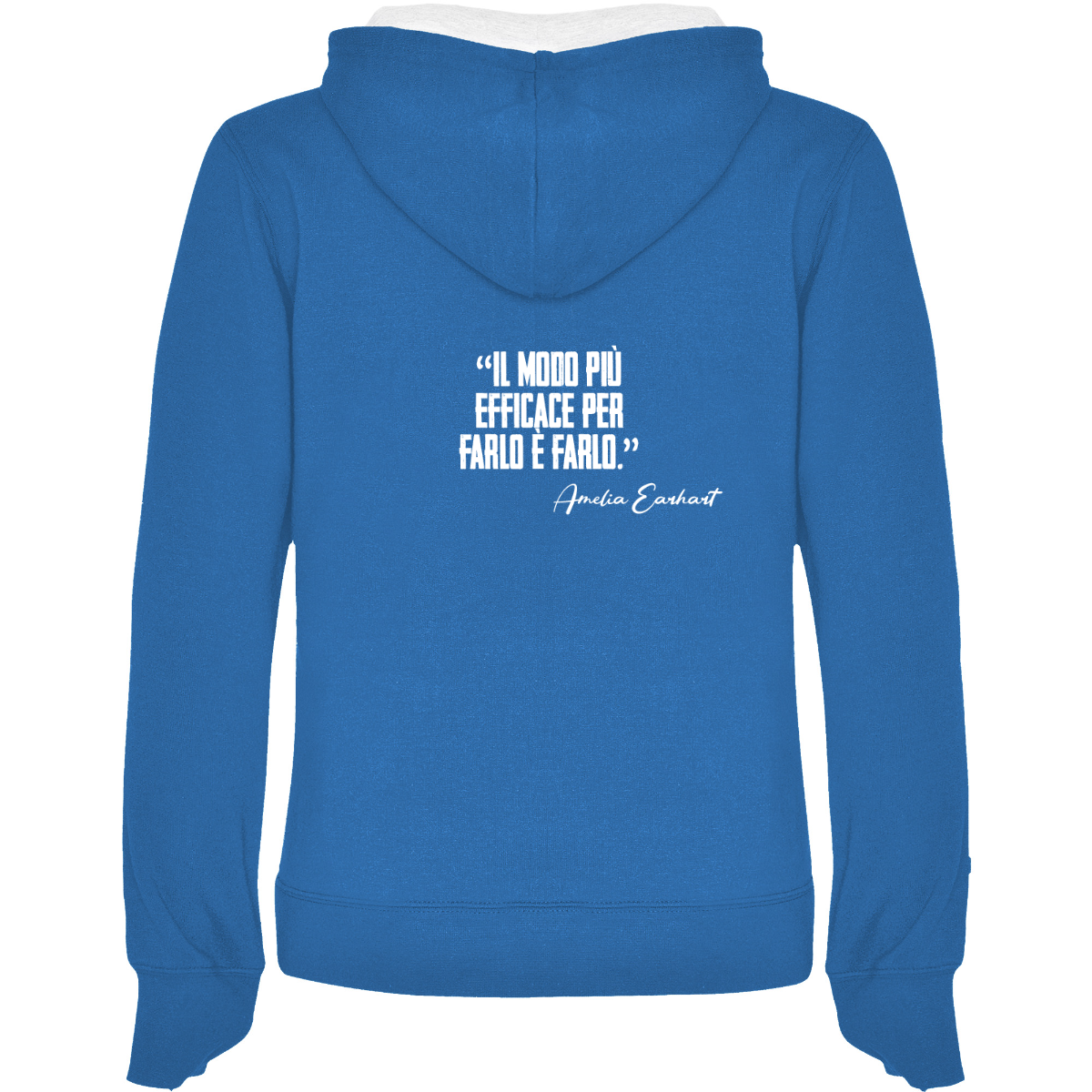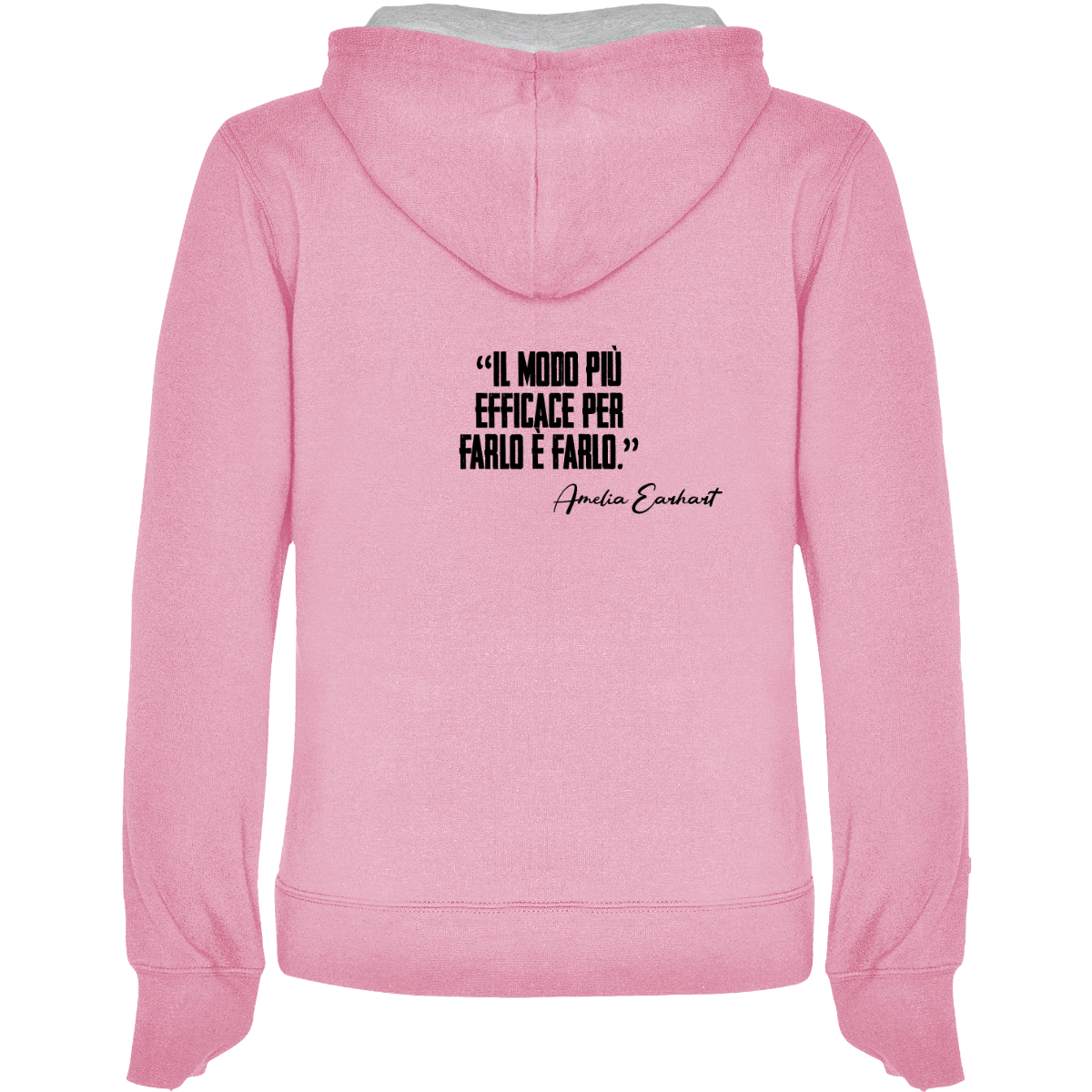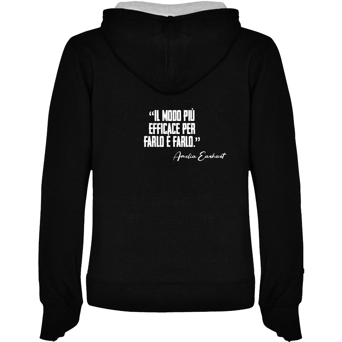 Felpa con cappuccio, anche  bicolore, tessuto doppio, con cordone regolabile. Tasca frontale. Costine 1x1 su polsini e girovita. 50% cotone / 50% poliestere, interno felpato, 280 g/m².