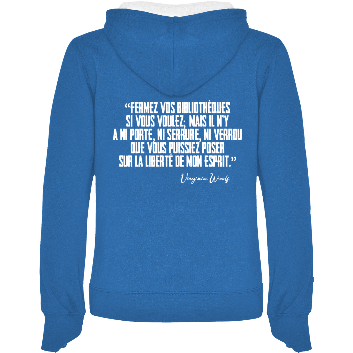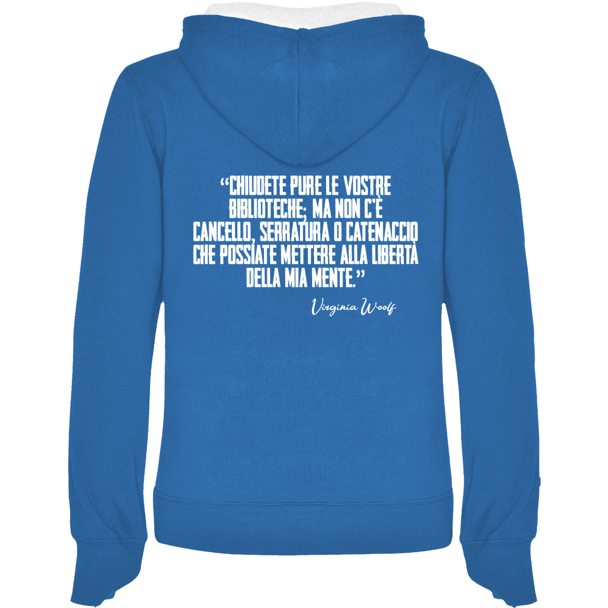 Hooded sweatshirt, also available in two-tone, double fabric, with adjustable drawstring. Front pocket. 1x1 ribbed cuffs and waistband. 50% cotton / 50% polyester, brushed interior, 280 gsm.