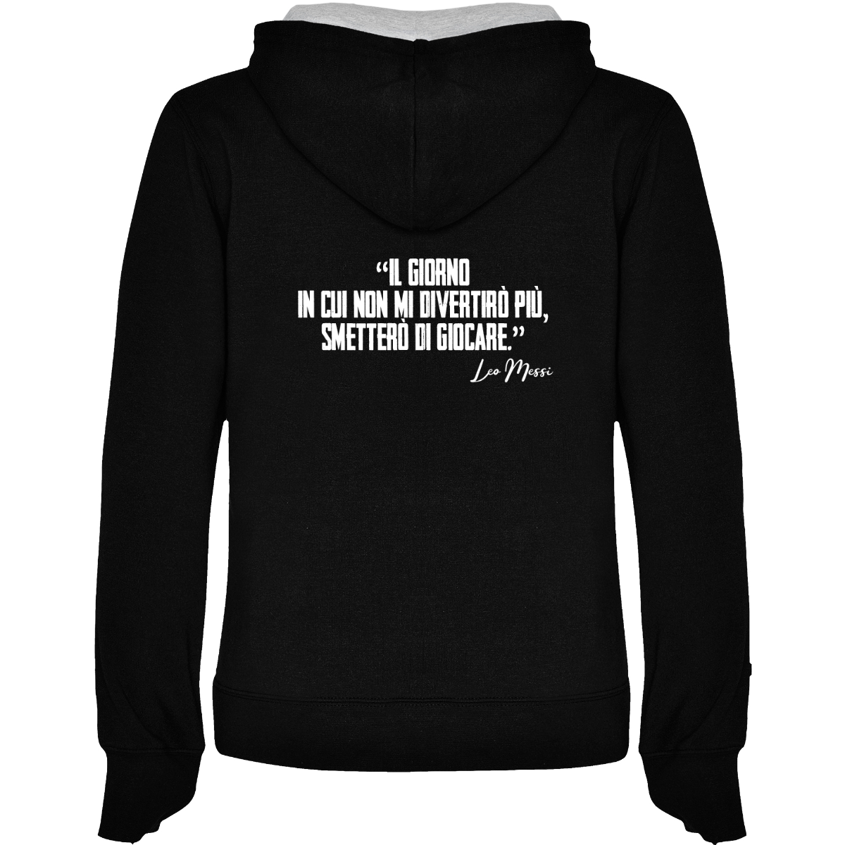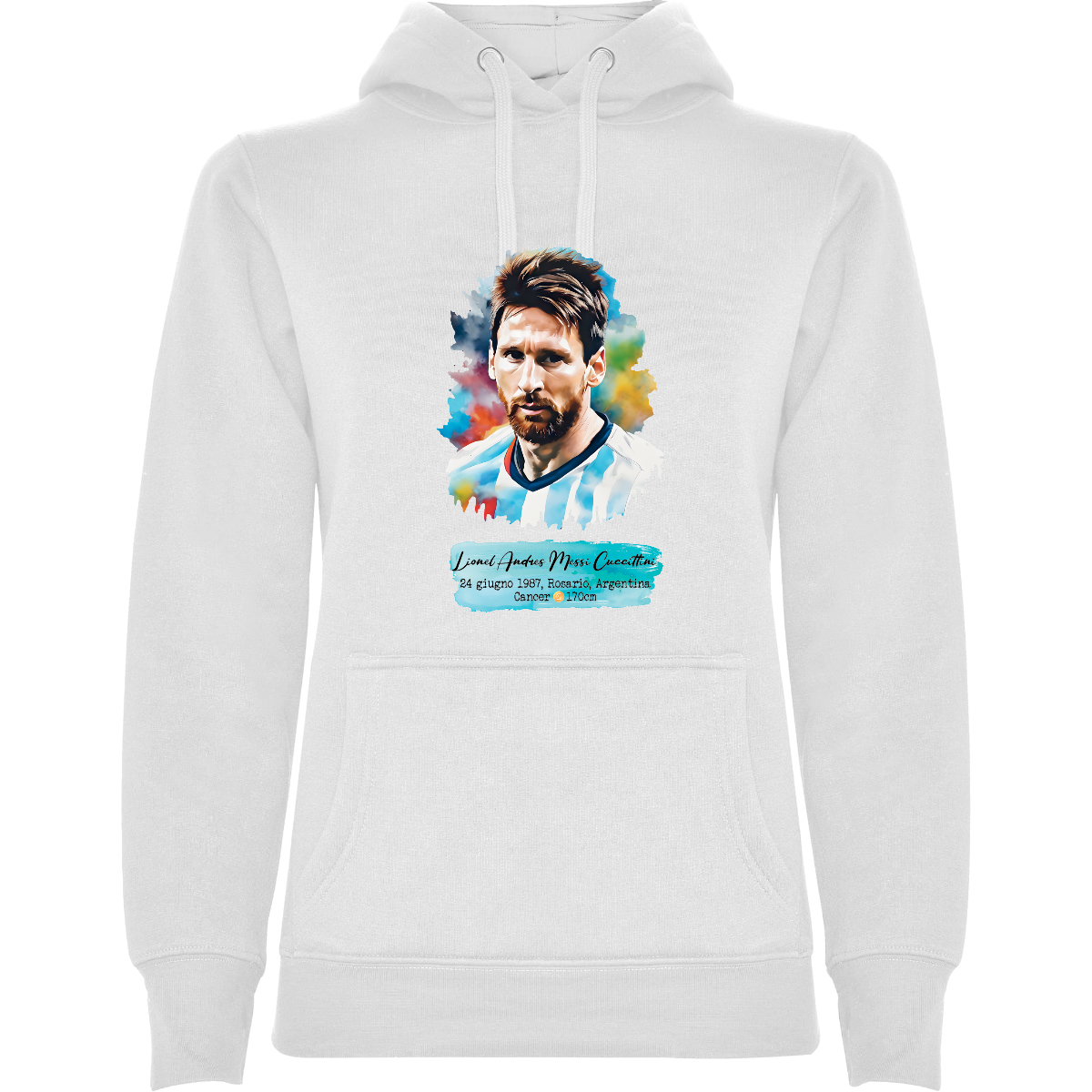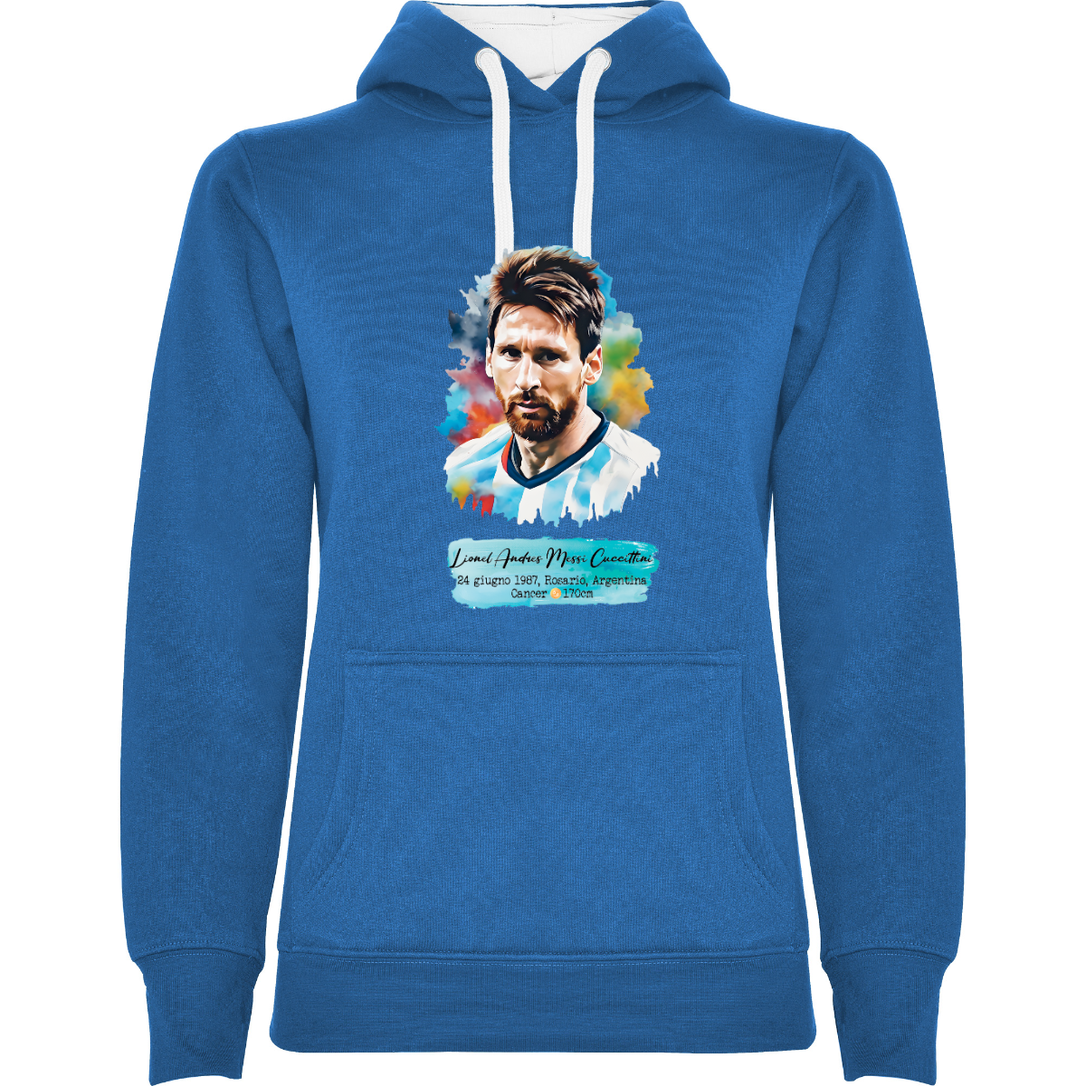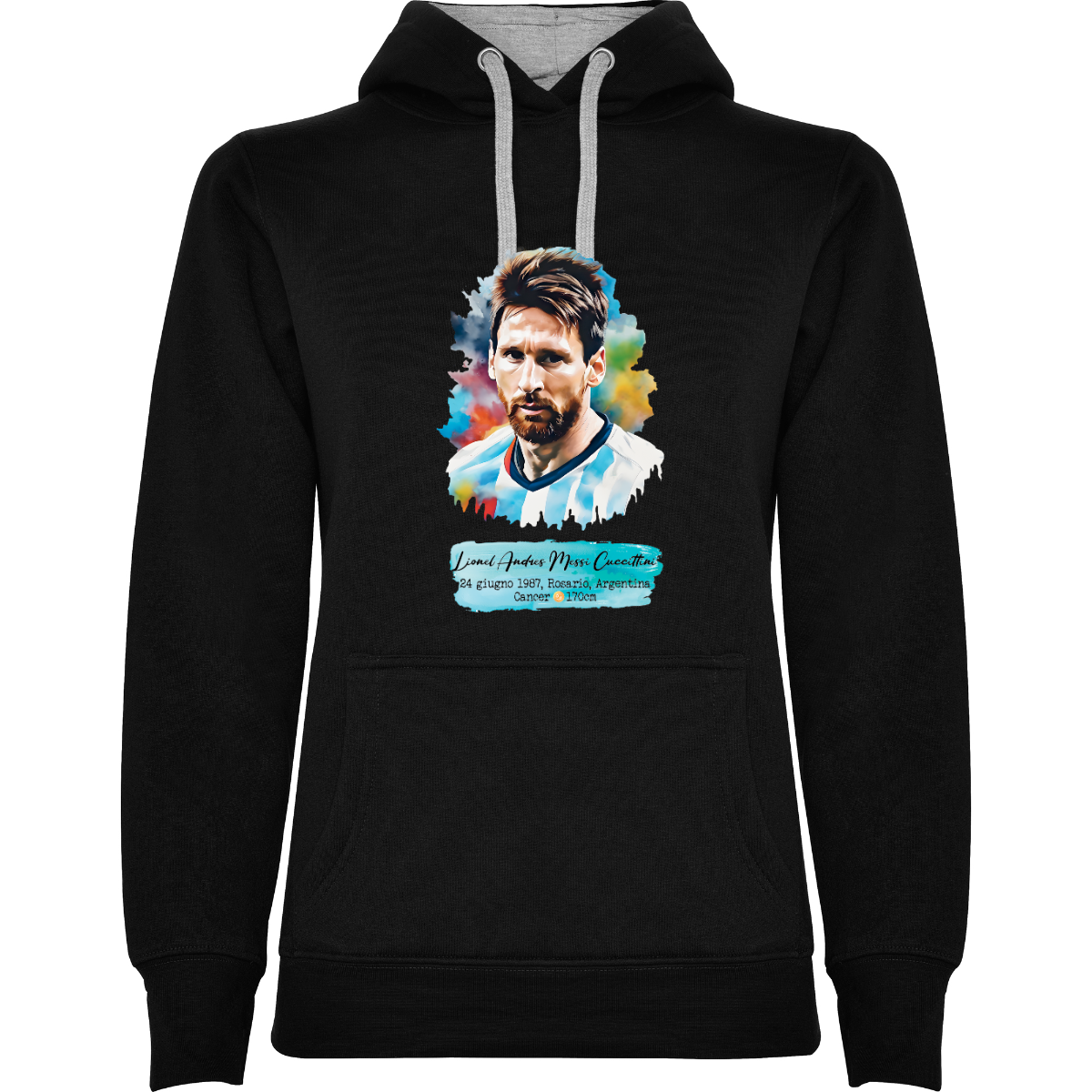 Felpa con cappuccio, anche  bicolore, tessuto doppio, con cordone regolabile. Tasca frontale. Costine 1x1 su polsini e girovita. 50% cotone / 50% poliestere, interno felpato, 280 g/m².