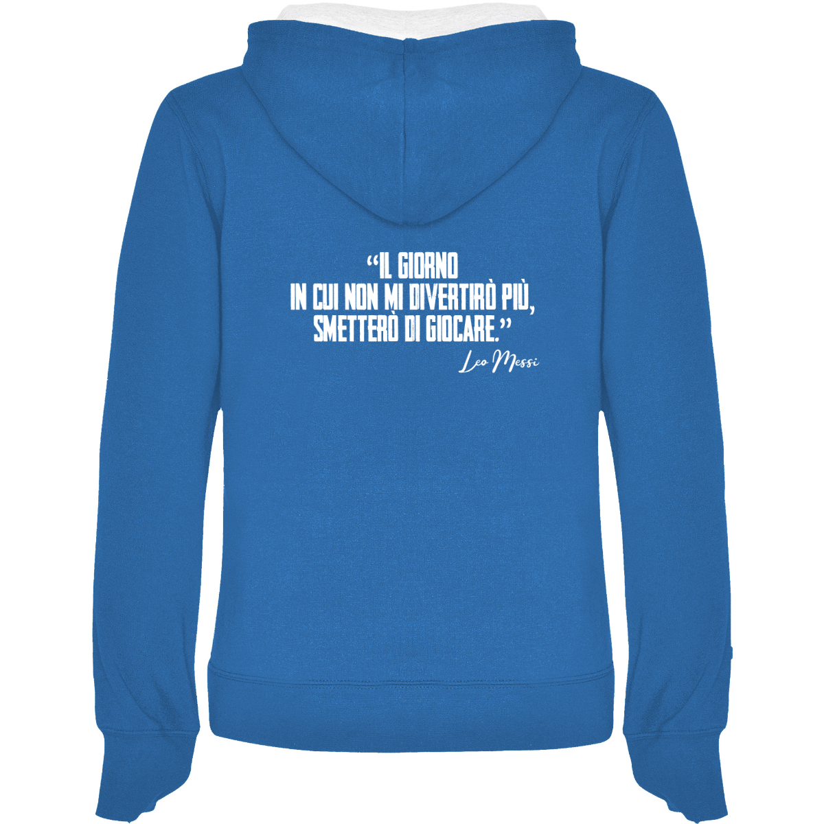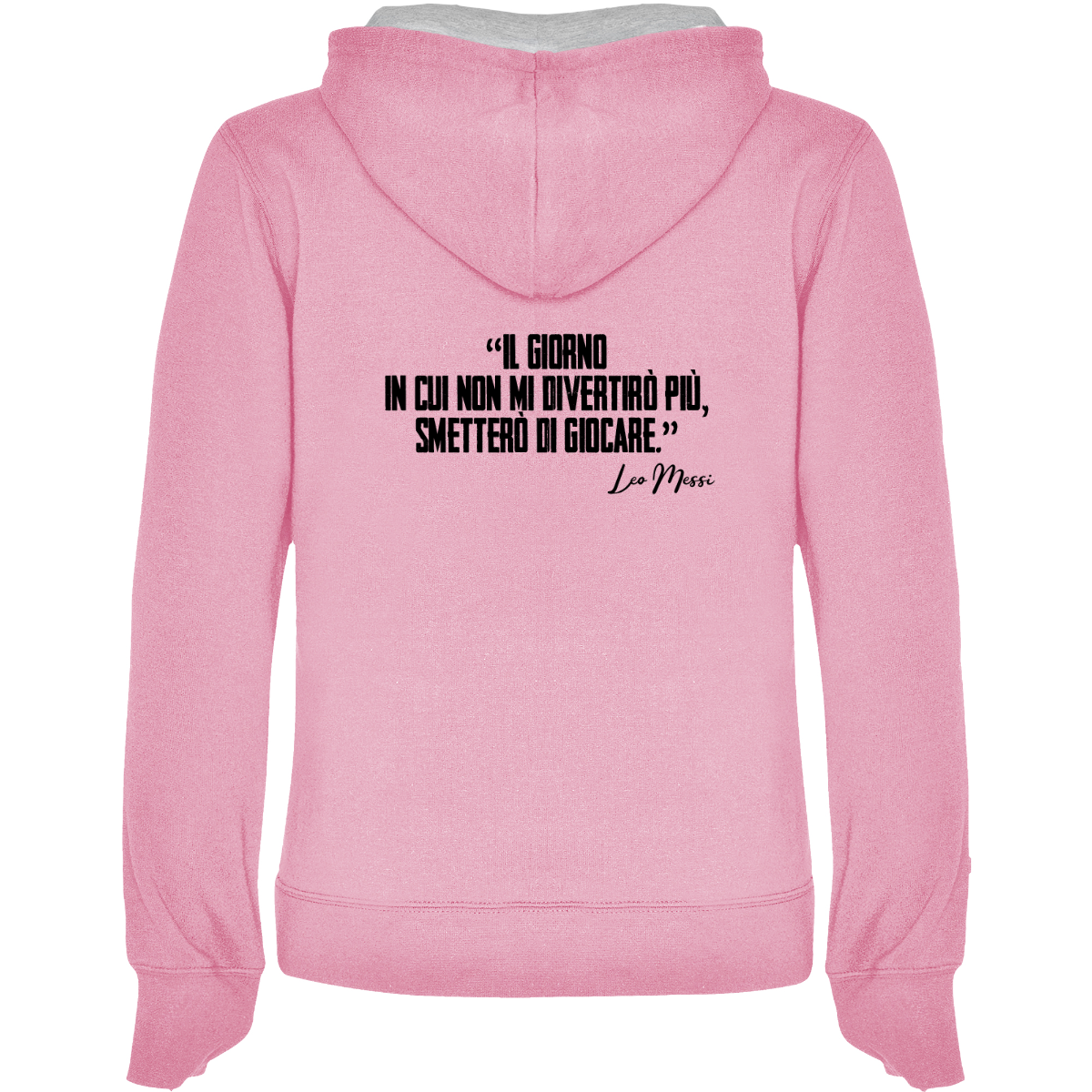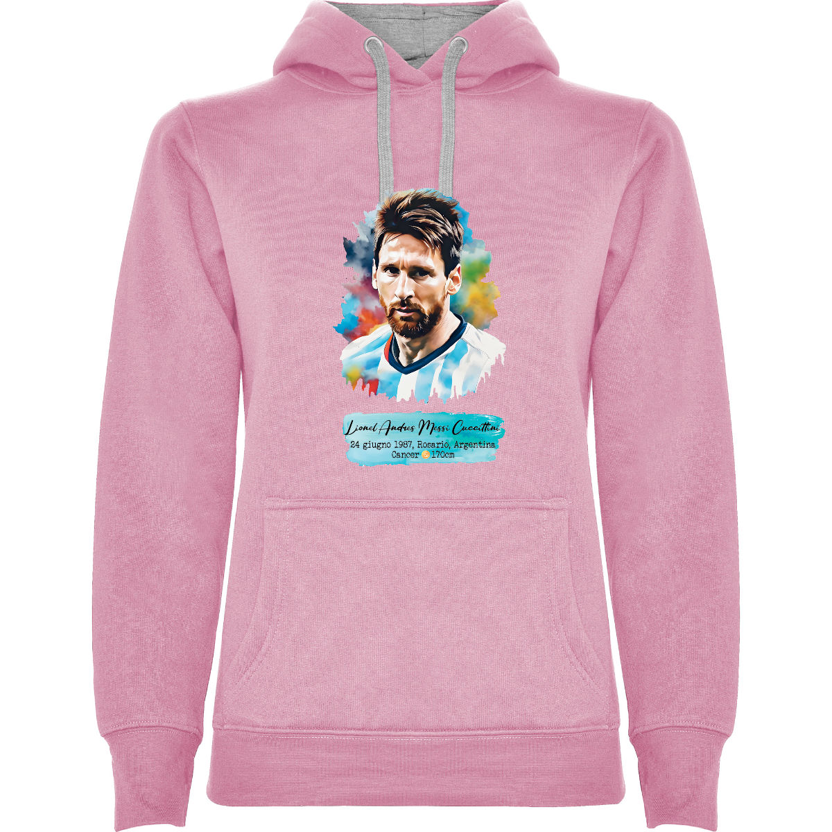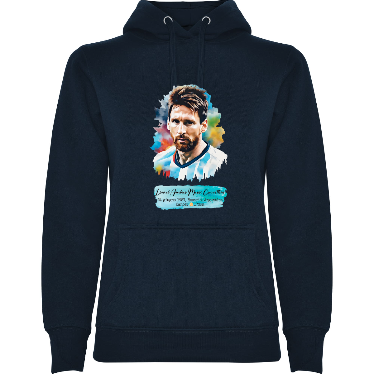 Felpa con cappuccio, anche  bicolore, tessuto doppio, con cordone regolabile. Tasca frontale. Costine 1x1 su polsini e girovita. 50% cotone / 50% poliestere, interno felpato, 280 g/m².
