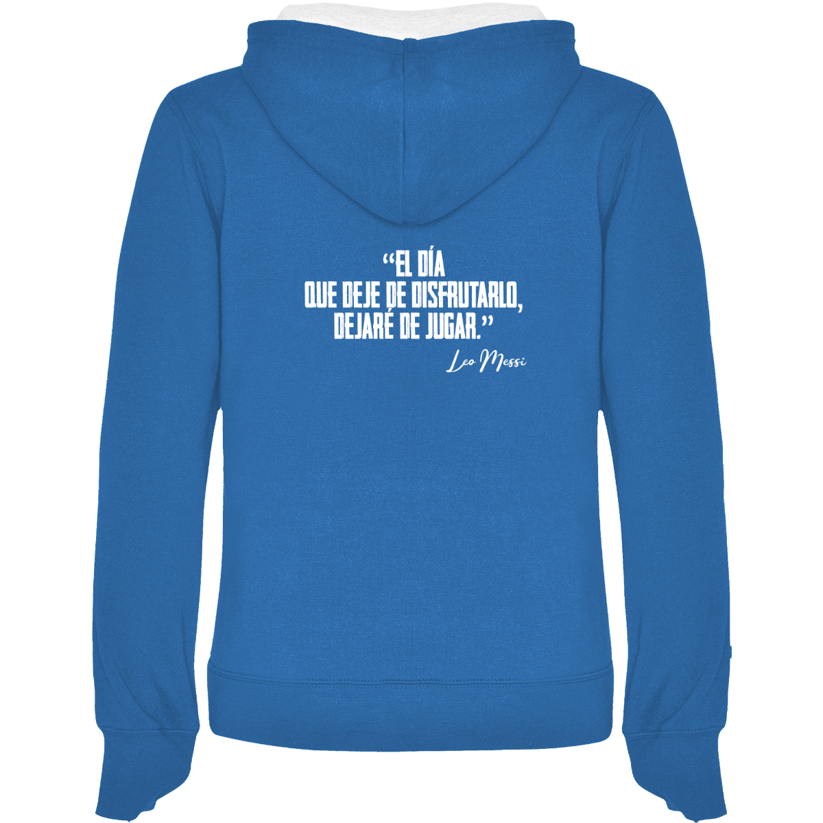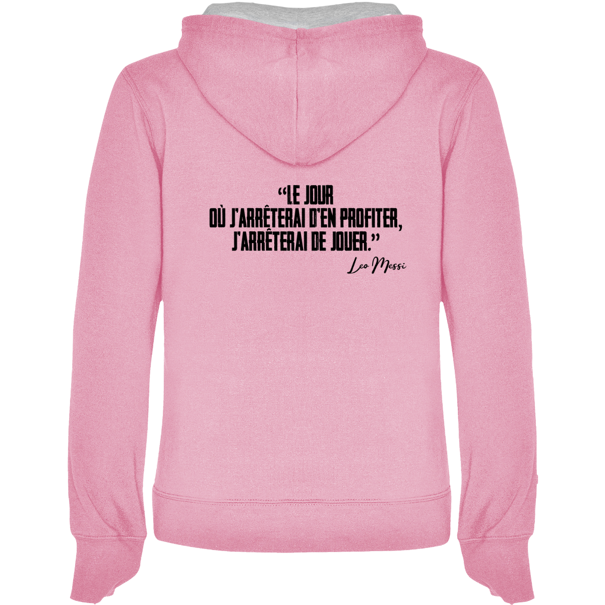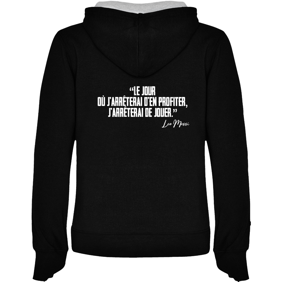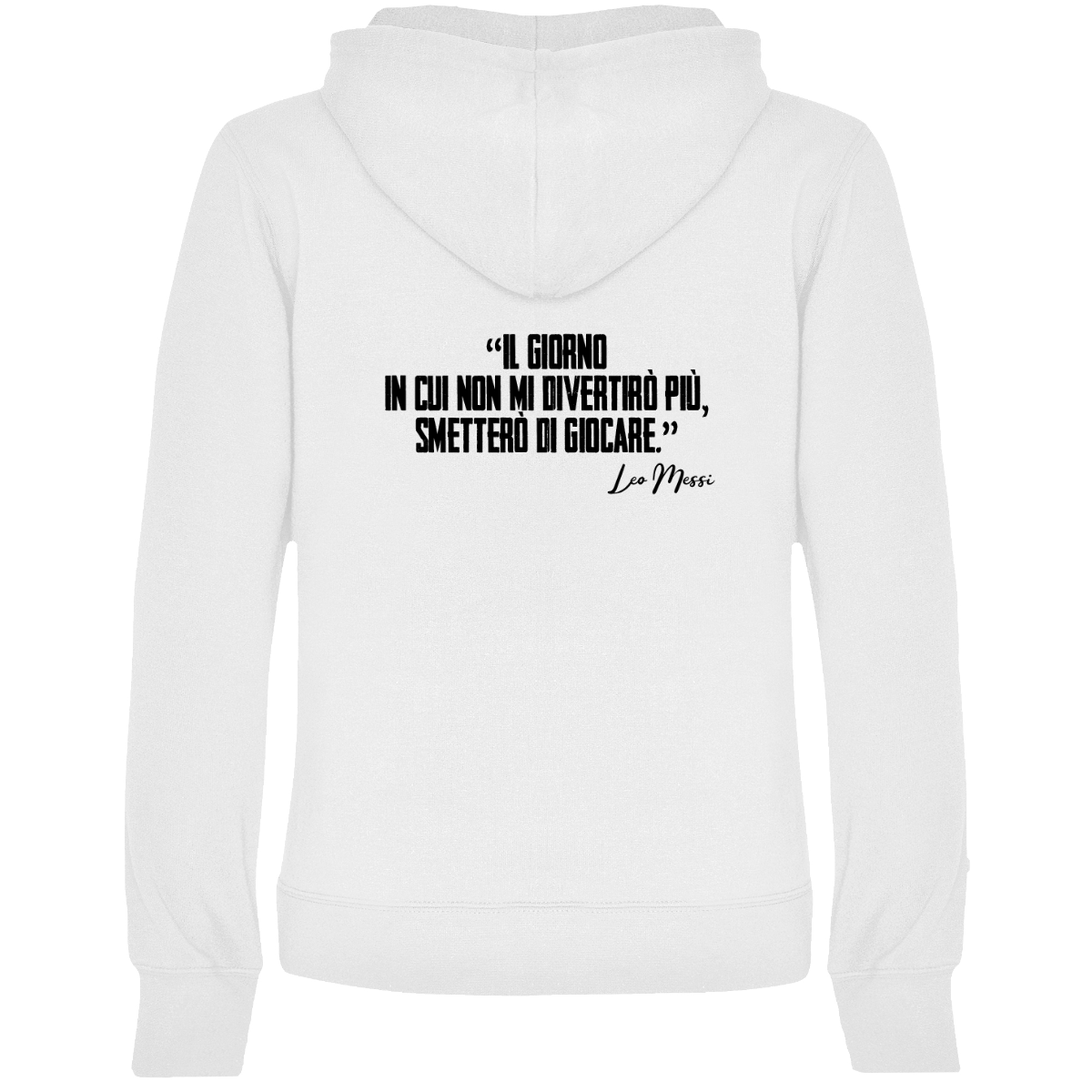 Felpa con cappuccio, anche  bicolore, tessuto doppio, con cordone regolabile. Tasca frontale. Costine 1x1 su polsini e girovita. 50% cotone / 50% poliestere, interno felpato, 280 g/m².
