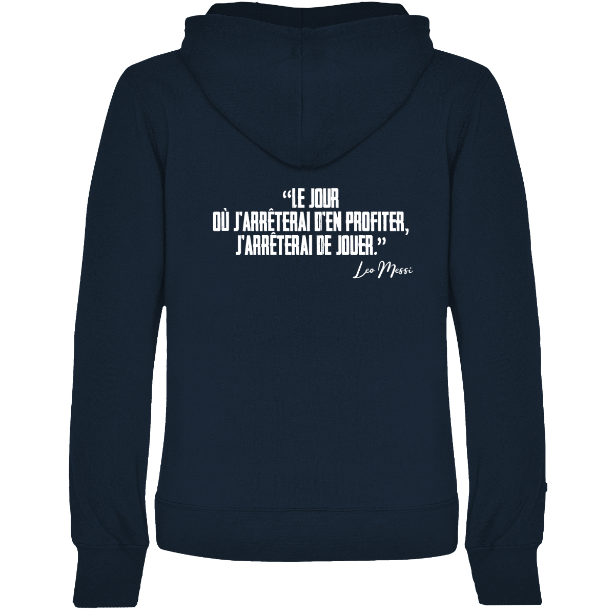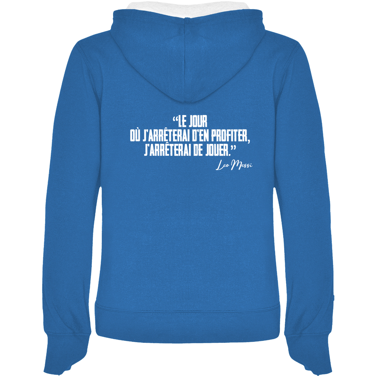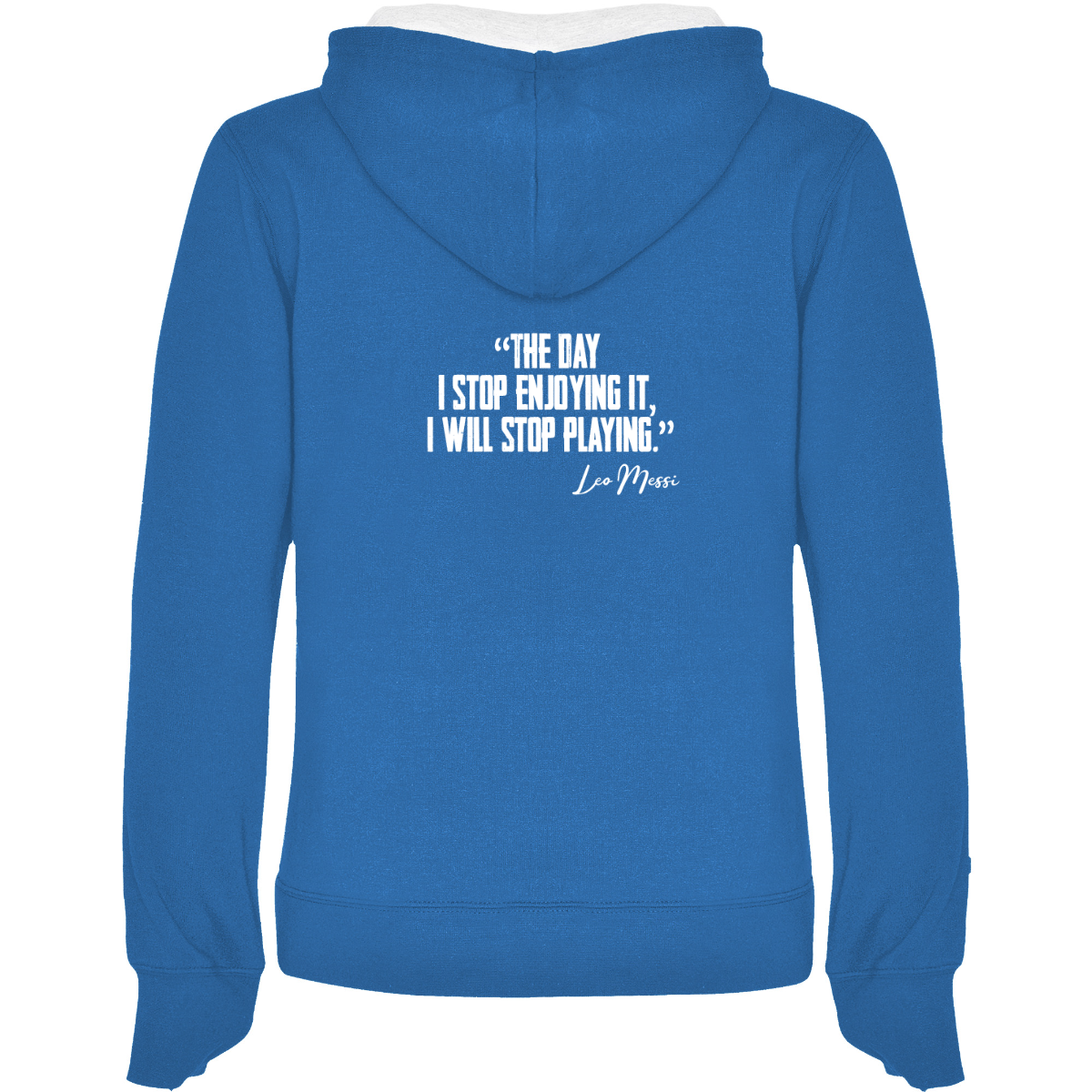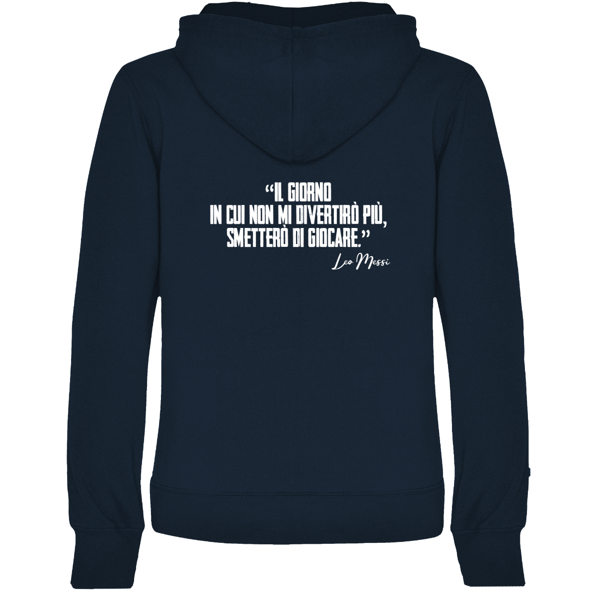 Felpa con cappuccio, anche  bicolore, tessuto doppio, con cordone regolabile. Tasca frontale. Costine 1x1 su polsini e girovita. 50% cotone / 50% poliestere, interno felpato, 280 g/m².